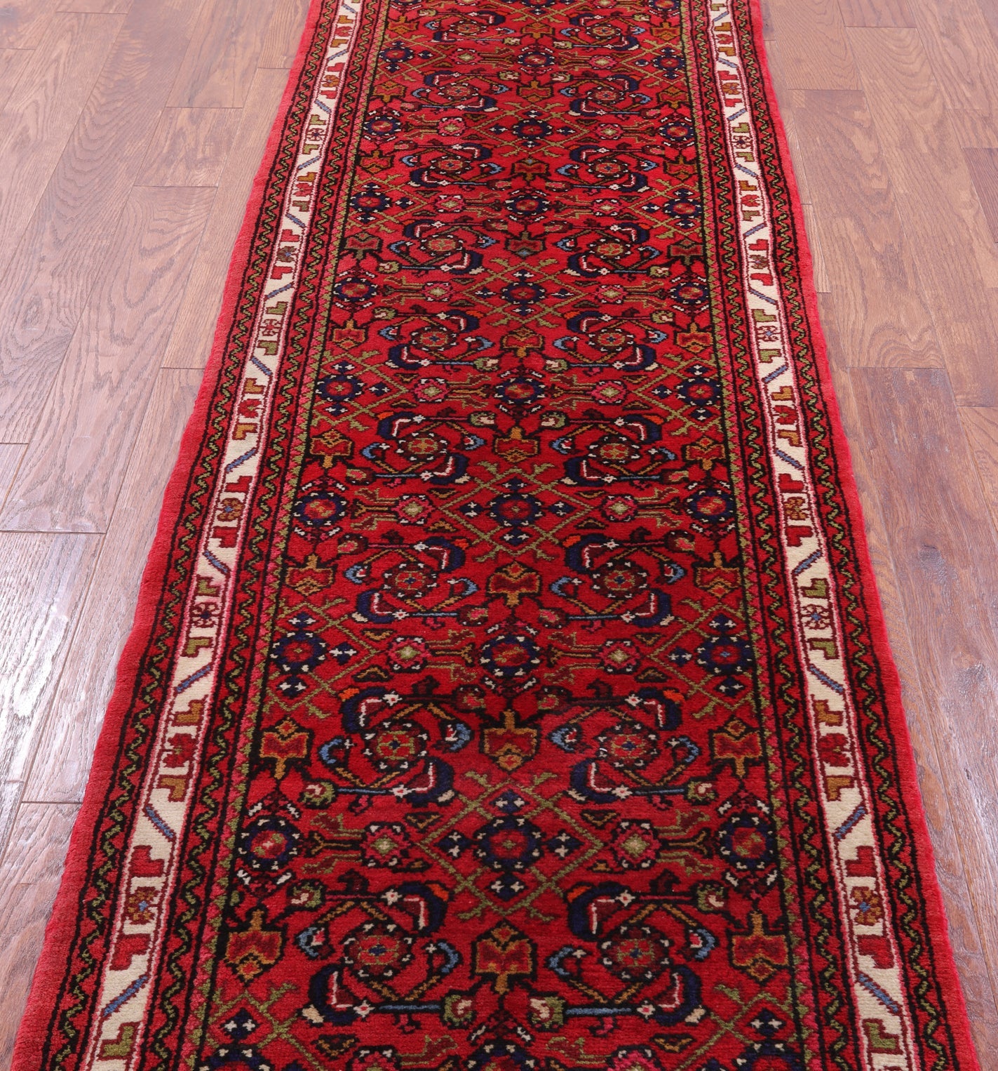 Red 2' 8" X 9' 3" Persian Hamadan Handmade Wool Runner Rug - Q23511 is backordered and will ship as soon as it is back in stock.