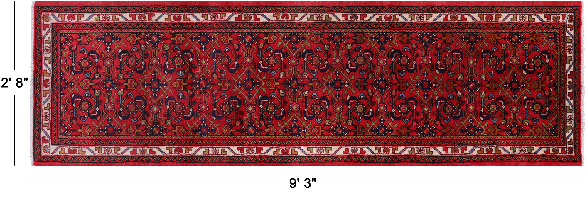 Red 2' 8" X 9' 3" Persian Hamadan Handmade Wool Runner Rug - Q23511
