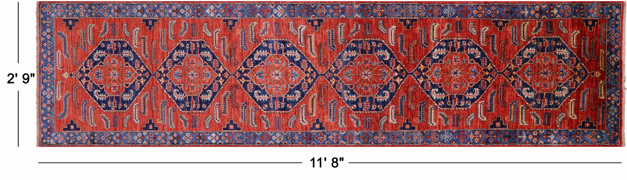 Red Persian Heriz Serapi Handmade Runner Rug 2' 9" X 11' 8" - Q23116