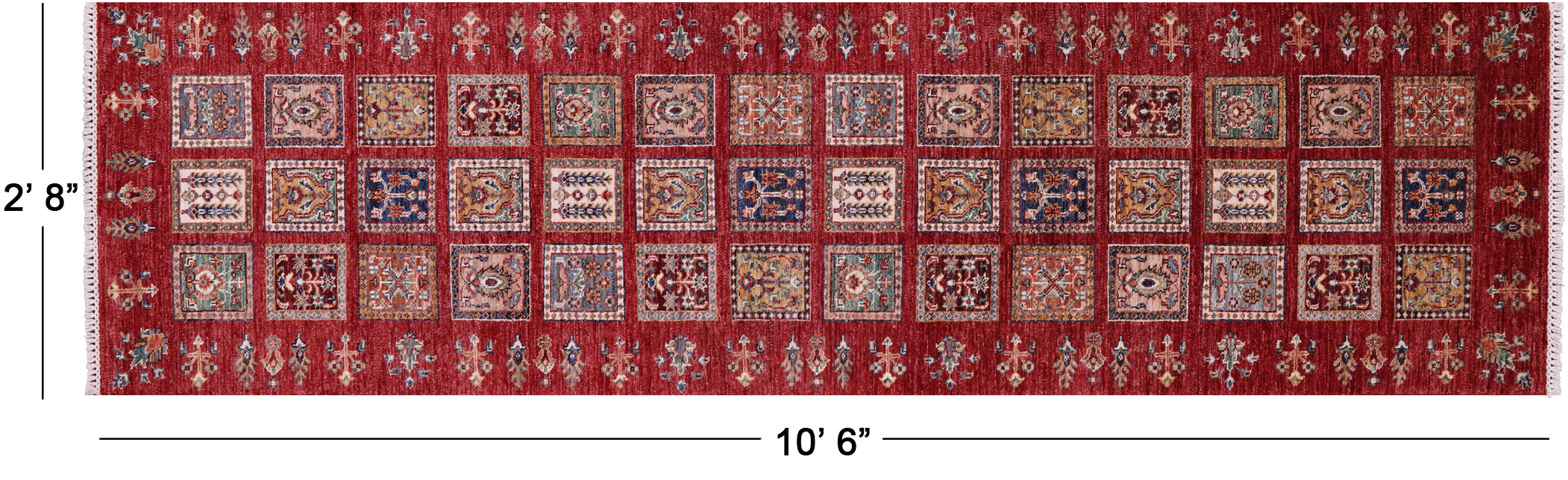 Red Runner Persian Garden Design Handmade Wool Rug 2' 8" X 10' 6" - Q18584