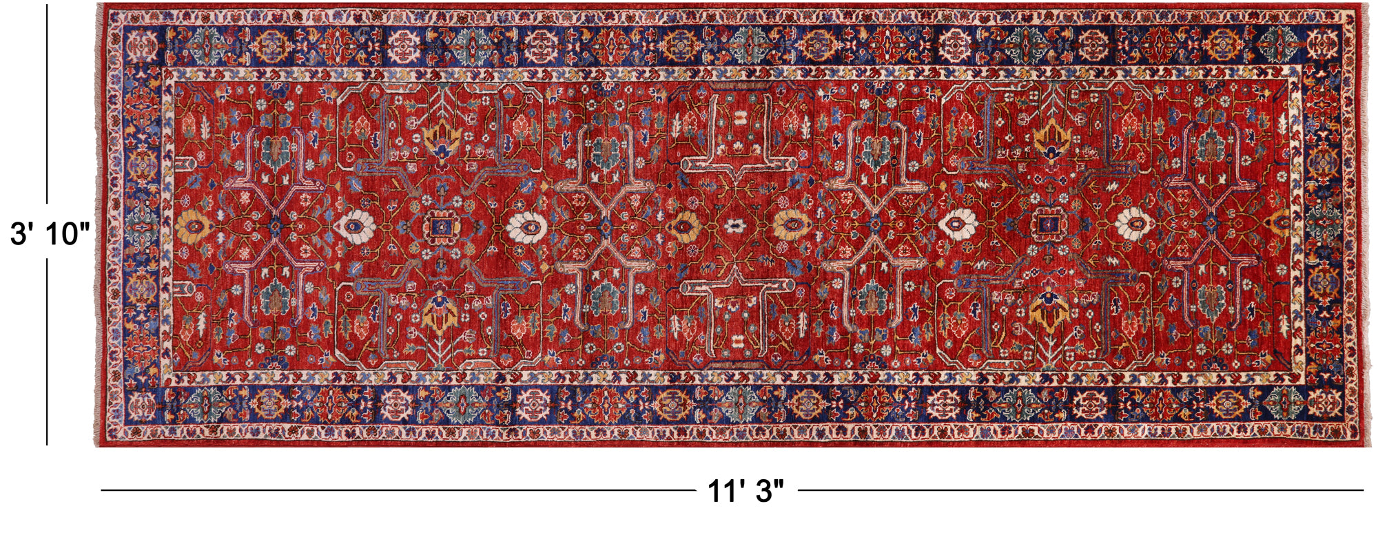 Red Runner Persian Heriz Serapi Handmade Rug 3' 10" X 11' 3" - Q22824