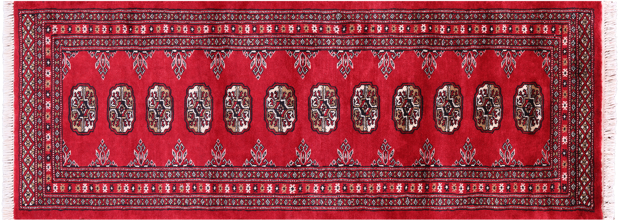 Bokharas are a type of handmade Pakistani rug; also known as Bukharas or Bokaras. Most are based on Turkmen prototypes called Tekkes. Pakistani Bokhara rugs are among the most popular handmade rugs in the world. They are popular for their soft, luxurious feel, heavy pile, attractive colors and appearance that consist of repeating octagonal figures called guls, usually on fields of burgundy red, gray blue, or sometimes green.
