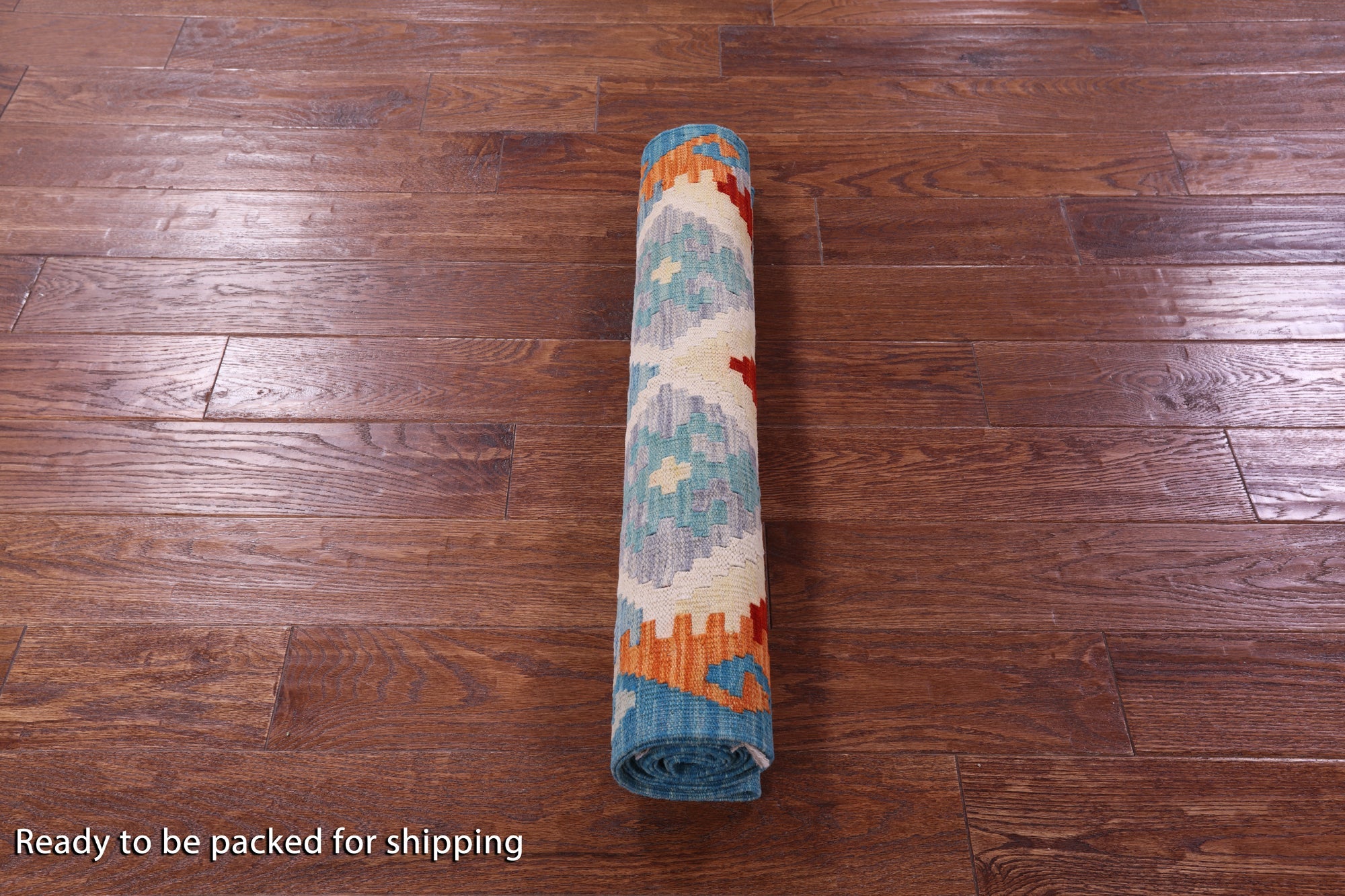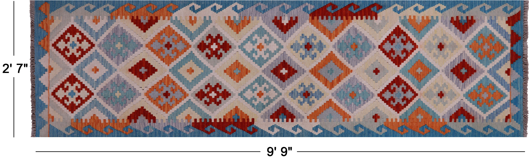 2' 7" X 9' 9" Reversible Kilim Flat Weave Wool On Wool Runner Rug - Q17652