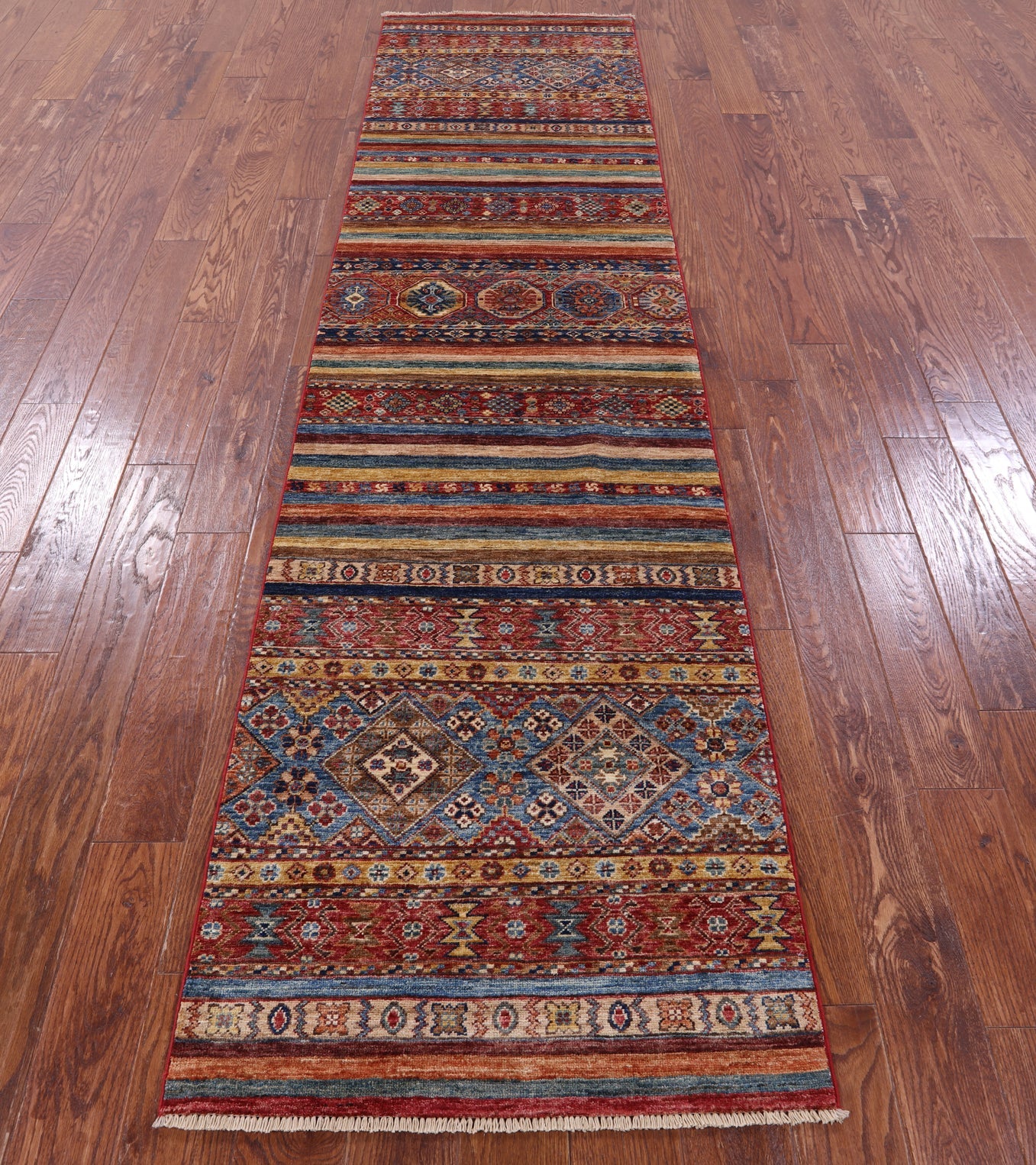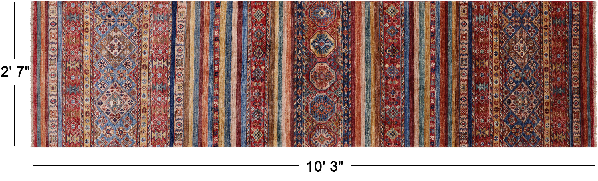 Runner Khorjin Super Kazak Hand-Knotted Wool Rug 2' 7" X 10' 3" - Q11000
