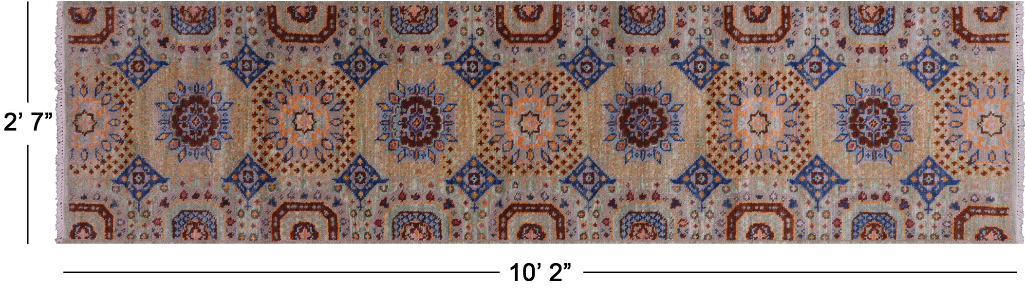 Runner Mamluk Hand-Knotted Wool Rug 2' 7" X 10' 2" - Q19350