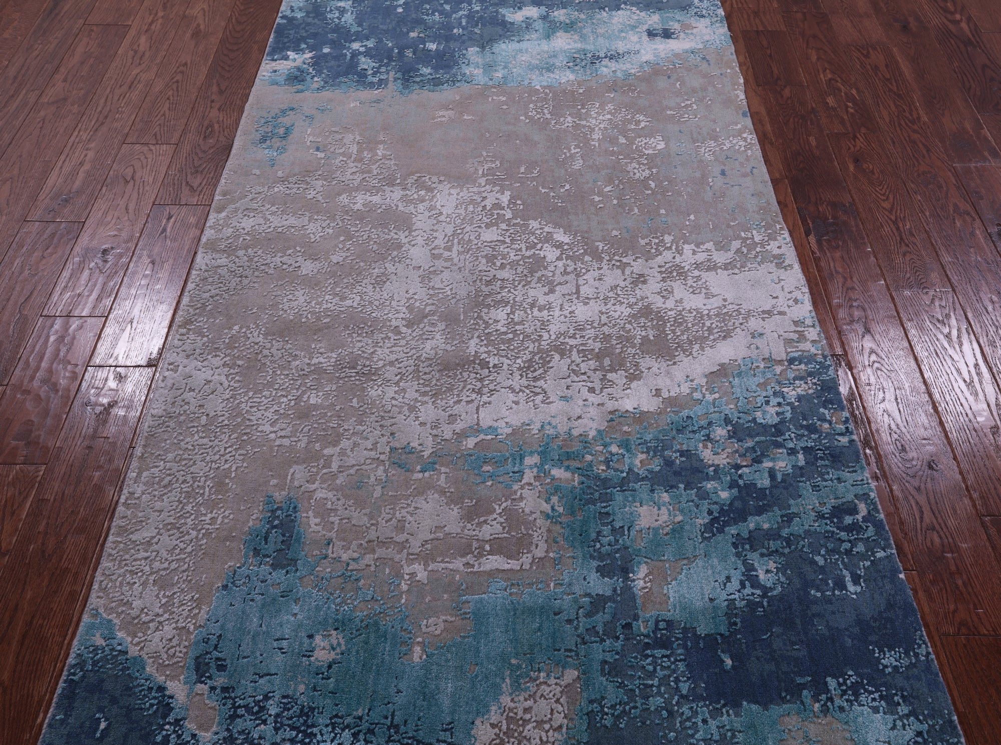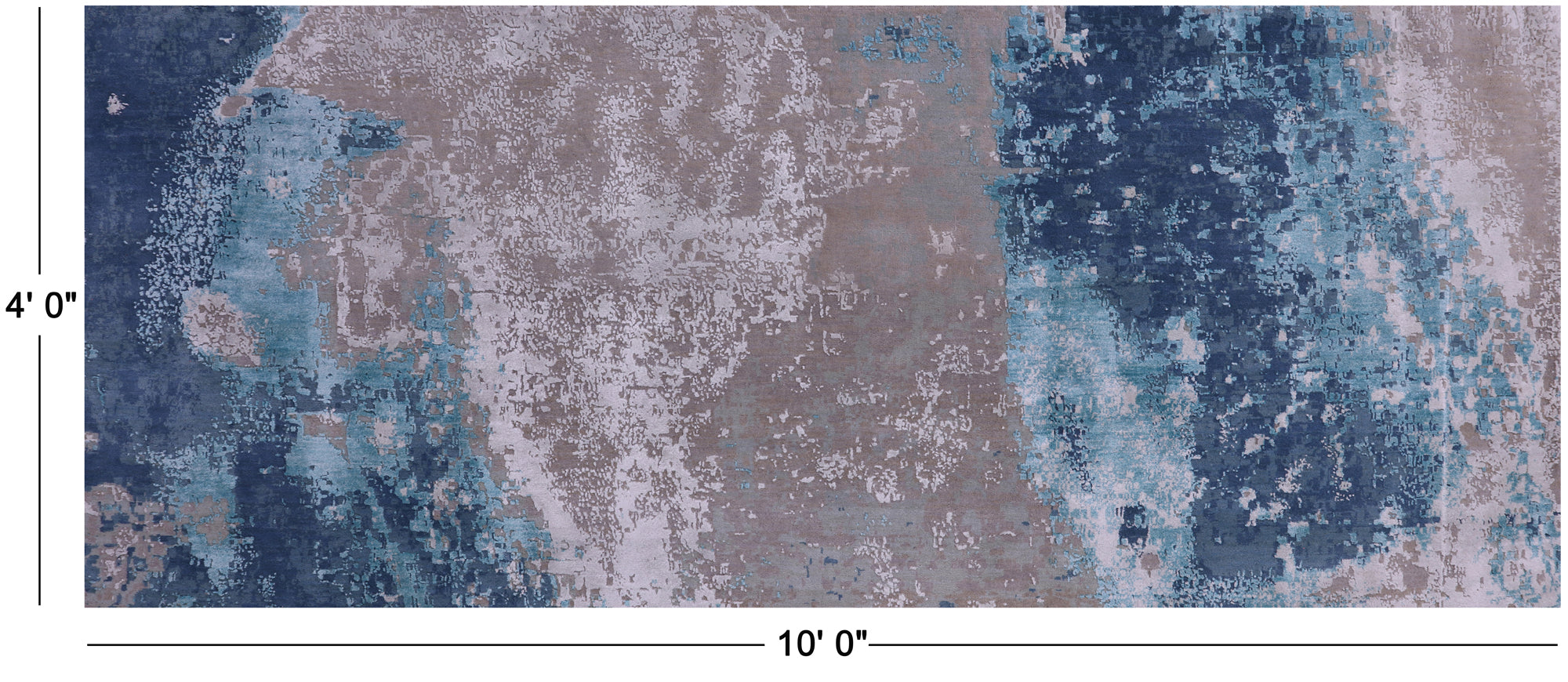 4' 0" X 10' 0" Runner Modern Abstract Handmade Wool & Silk Rug - Q23503