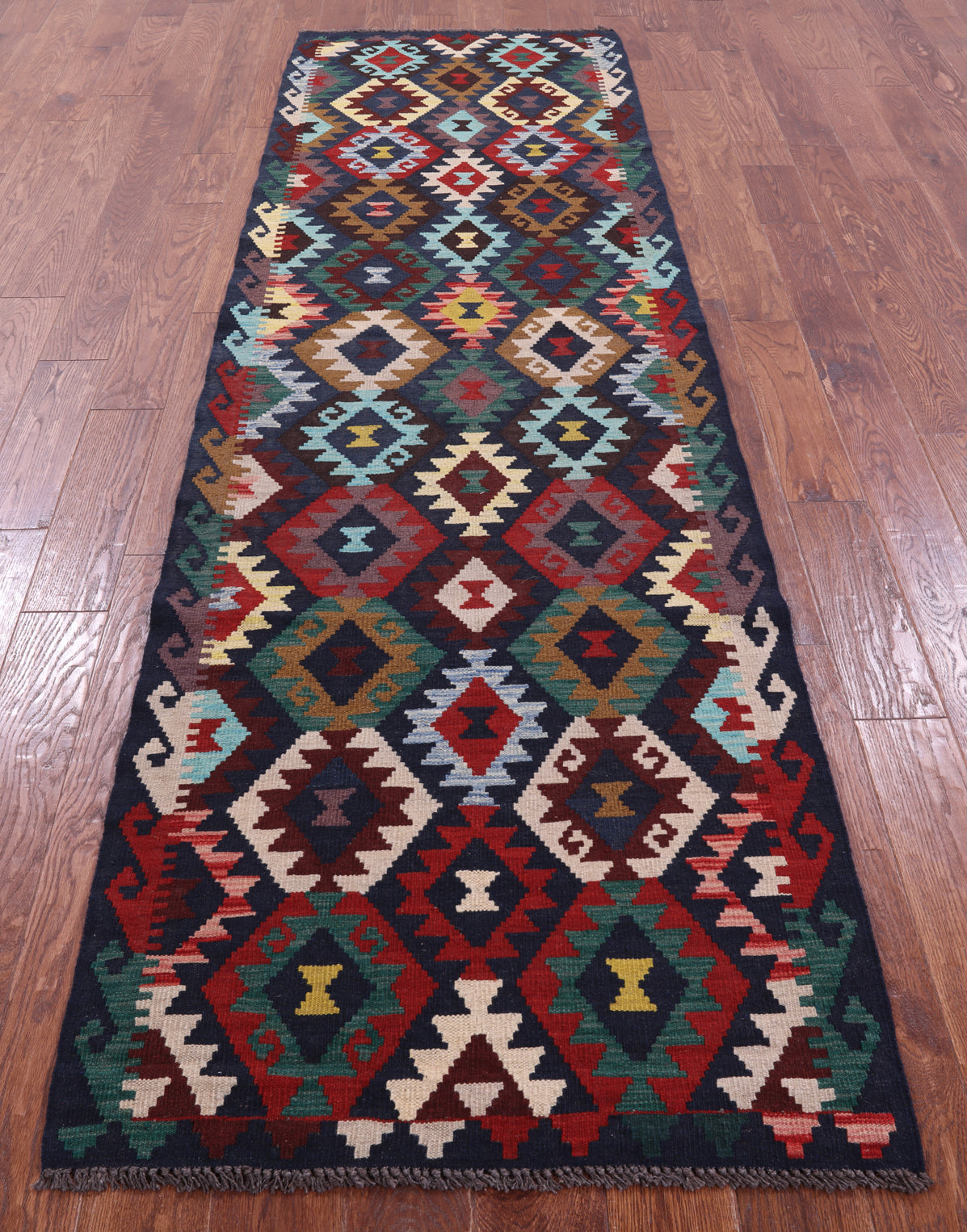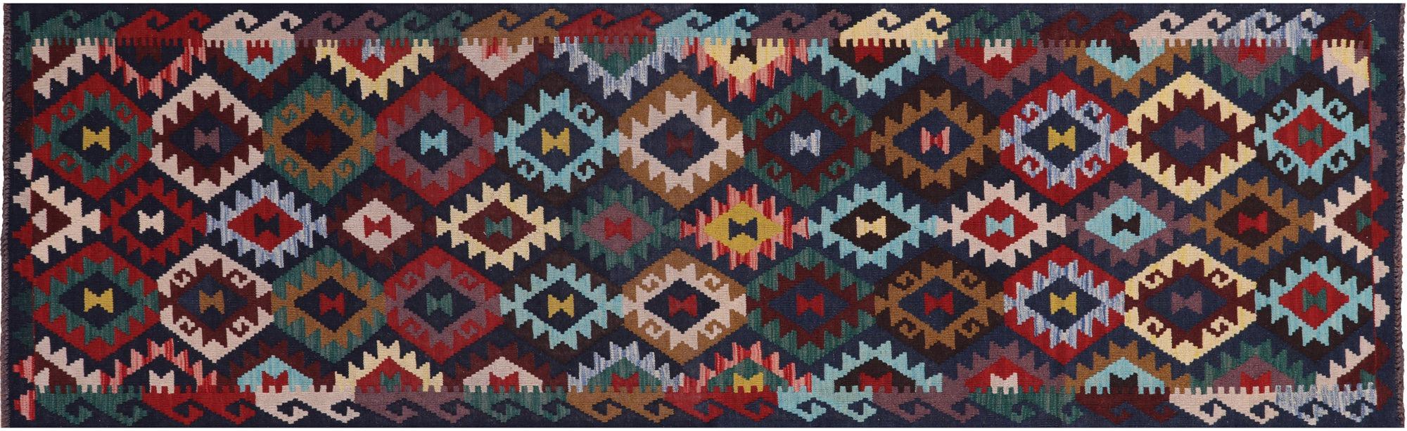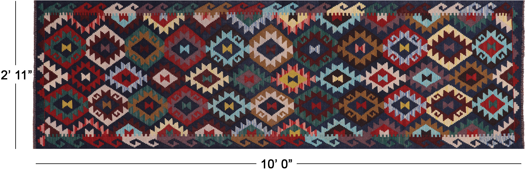 2' 11" X 10' 0" Runner Reversible Kilim Flat Weave Wool On Wool Rug - Q18066