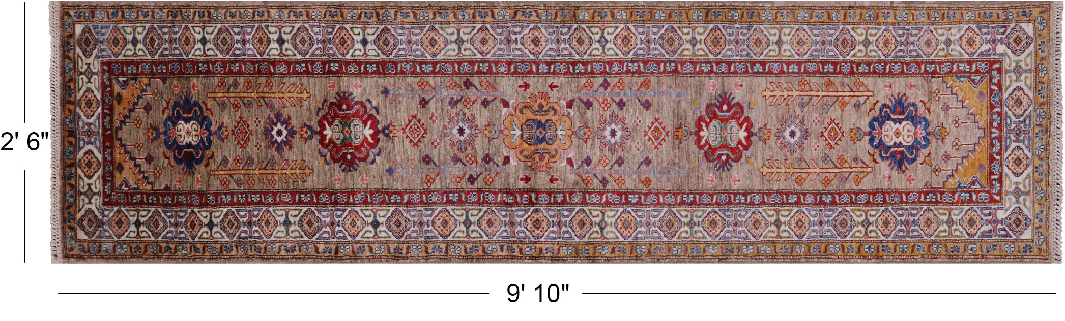 Runner Super Kazak Hand Knotted Wool Rug 2' 6" X 9' 10" - Q7704