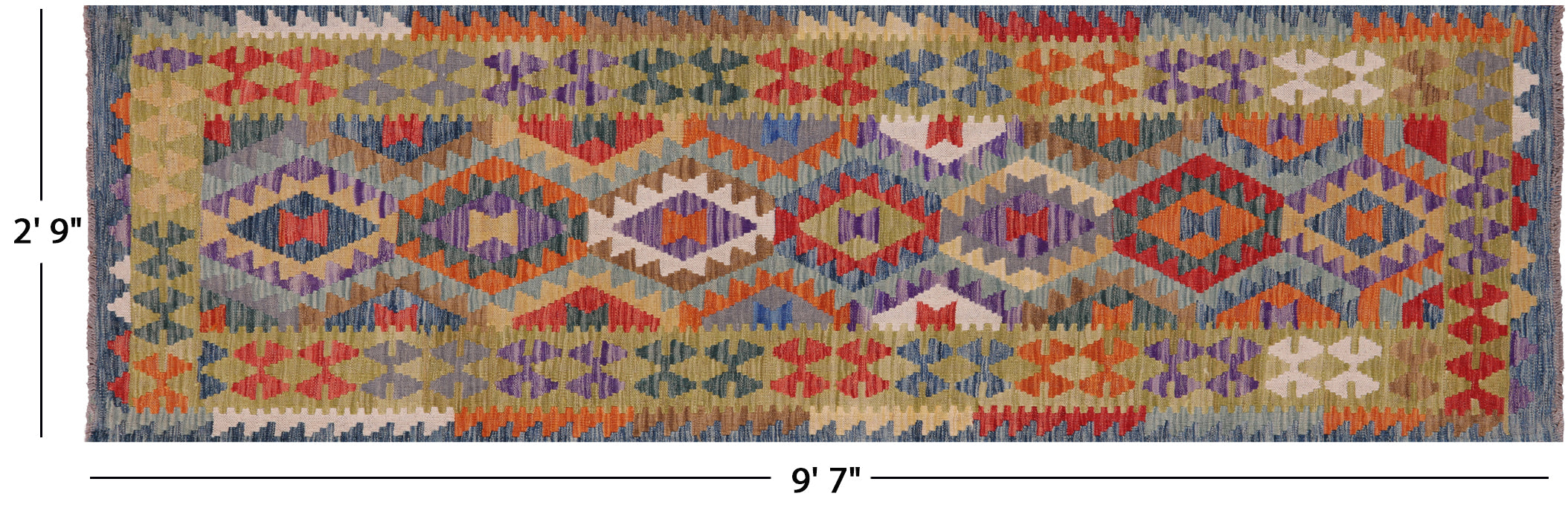 2' 9" X 9' 7" Runner Wool On Wool Kilim Flat Weave Reversible Rug - Q18119