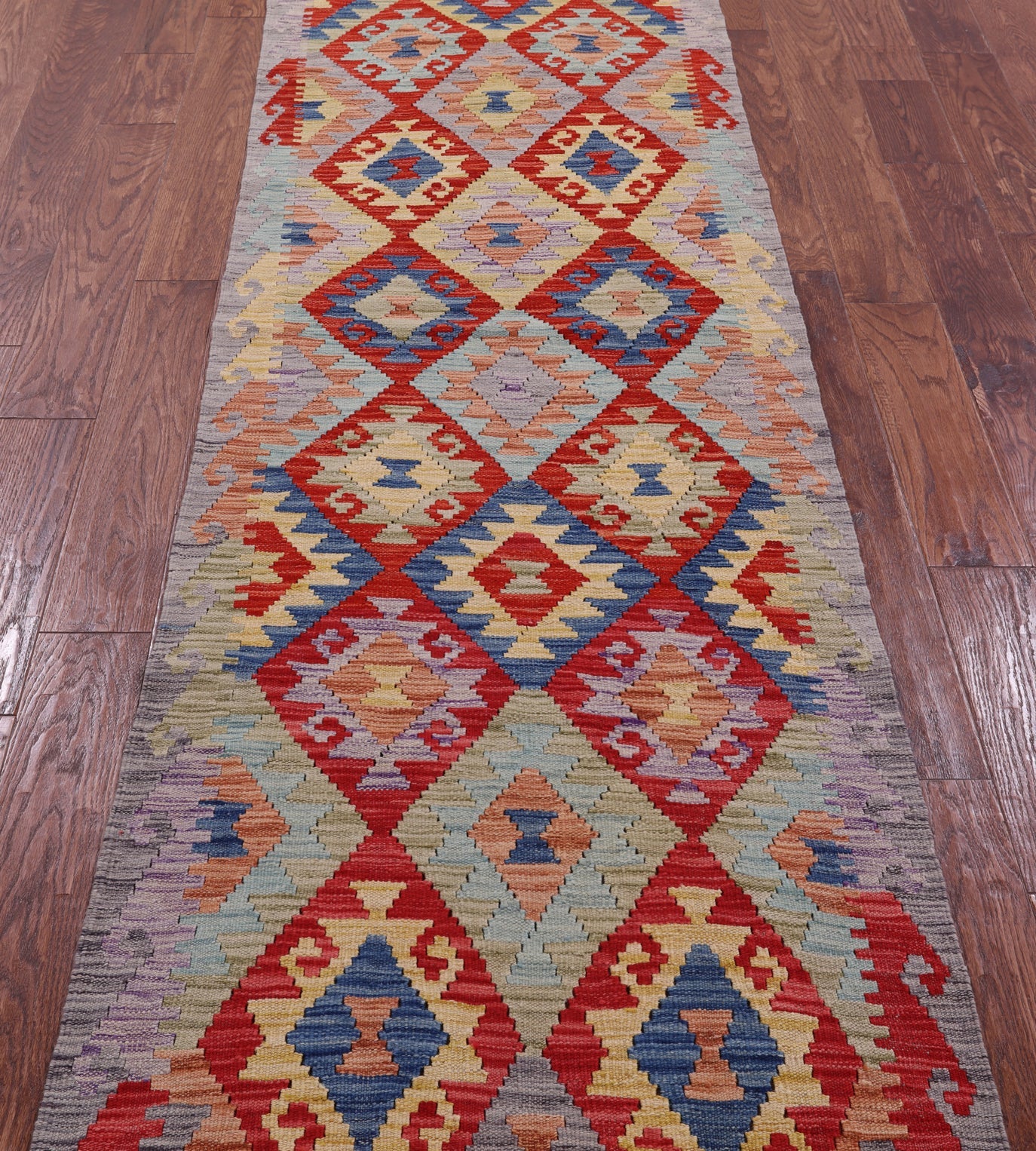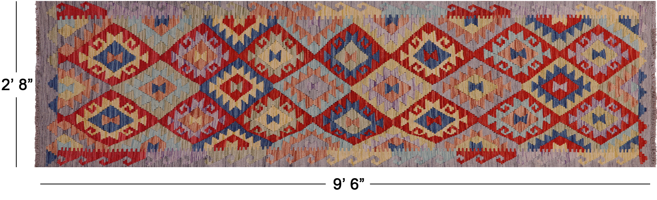 Runner Wool On Wool Reversible Kilim Flat Weave Rug 2' 8" X 9' 6" - Q18068