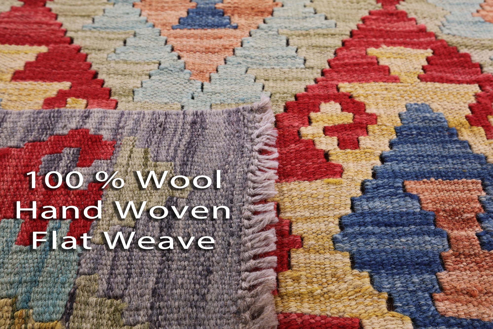 A kilim rug is a flat-woven rug. Kilim rugs are known for their intricate geometric patterns, vibrant colors, and durable construction. Unlike traditional pile rugs, kilims have a smooth surface with no pile, making them lightweight and versatile. They are often used as decorative pieces, floor coverings, or wall hangings, reflecting the cultural heritage and artistic expression of the regions they originate from.