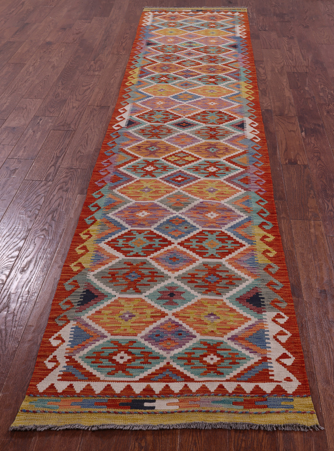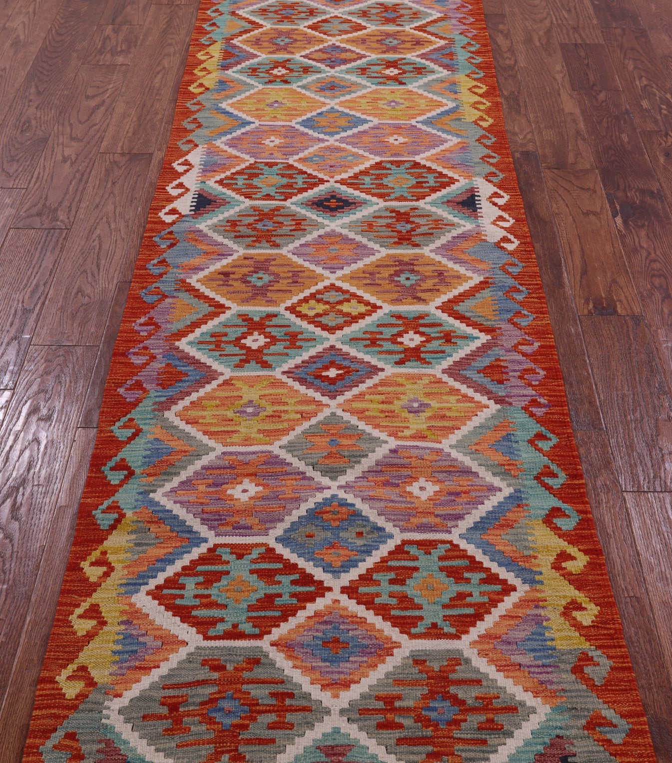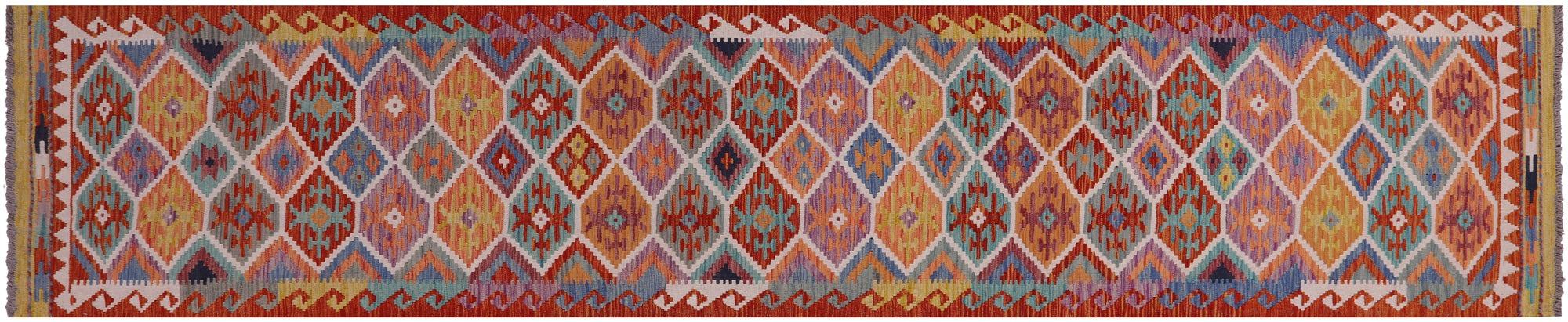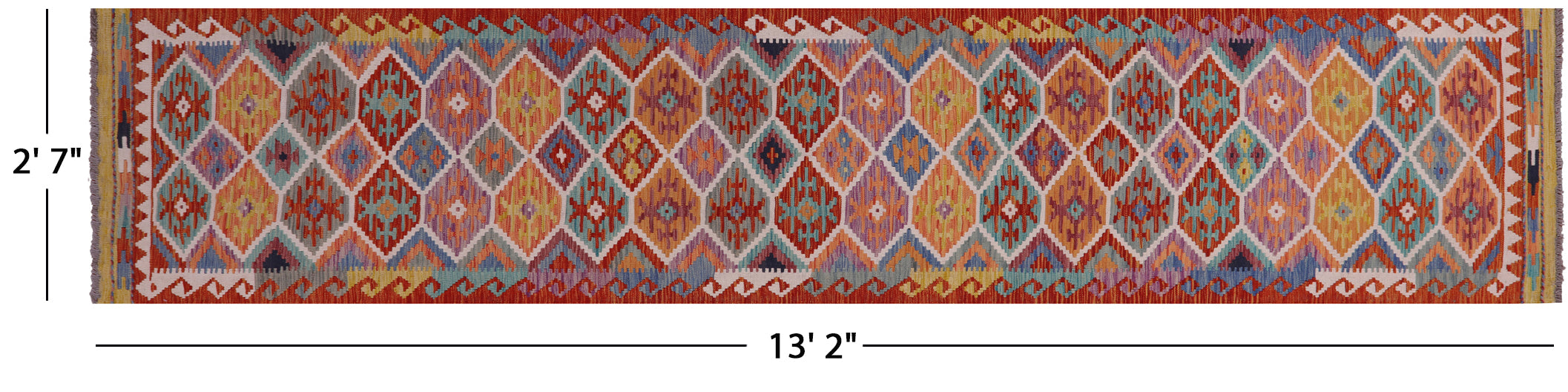 2' 7" X 13' 2" Runner Wool On Wool Reversible Kilim Flat Weave Rug - Q18149