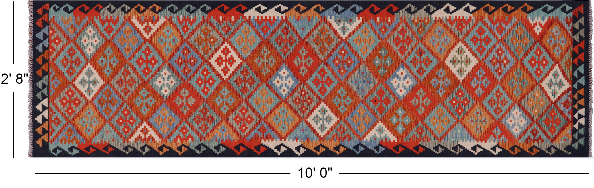 Runner Wool On Wool Reversible Kilim Flat Weave Rug 2' 8" X 10' 0" - Q9470 is backordered and will ship as soon as it is back in stock.