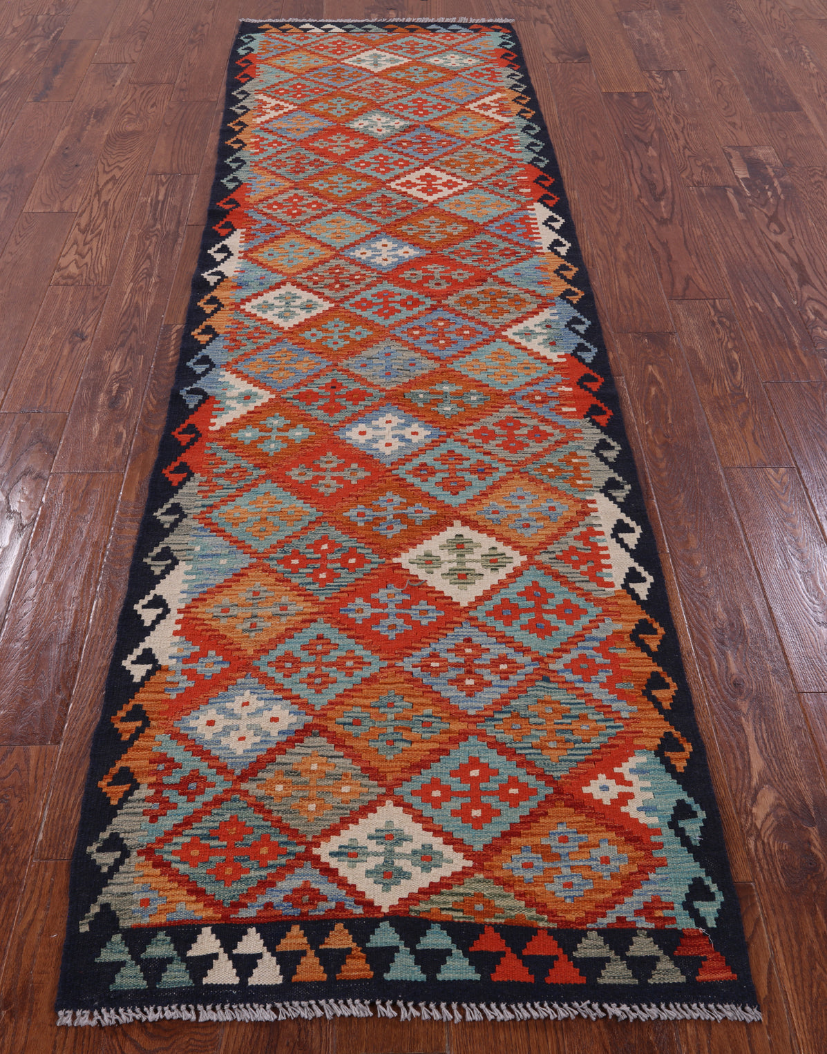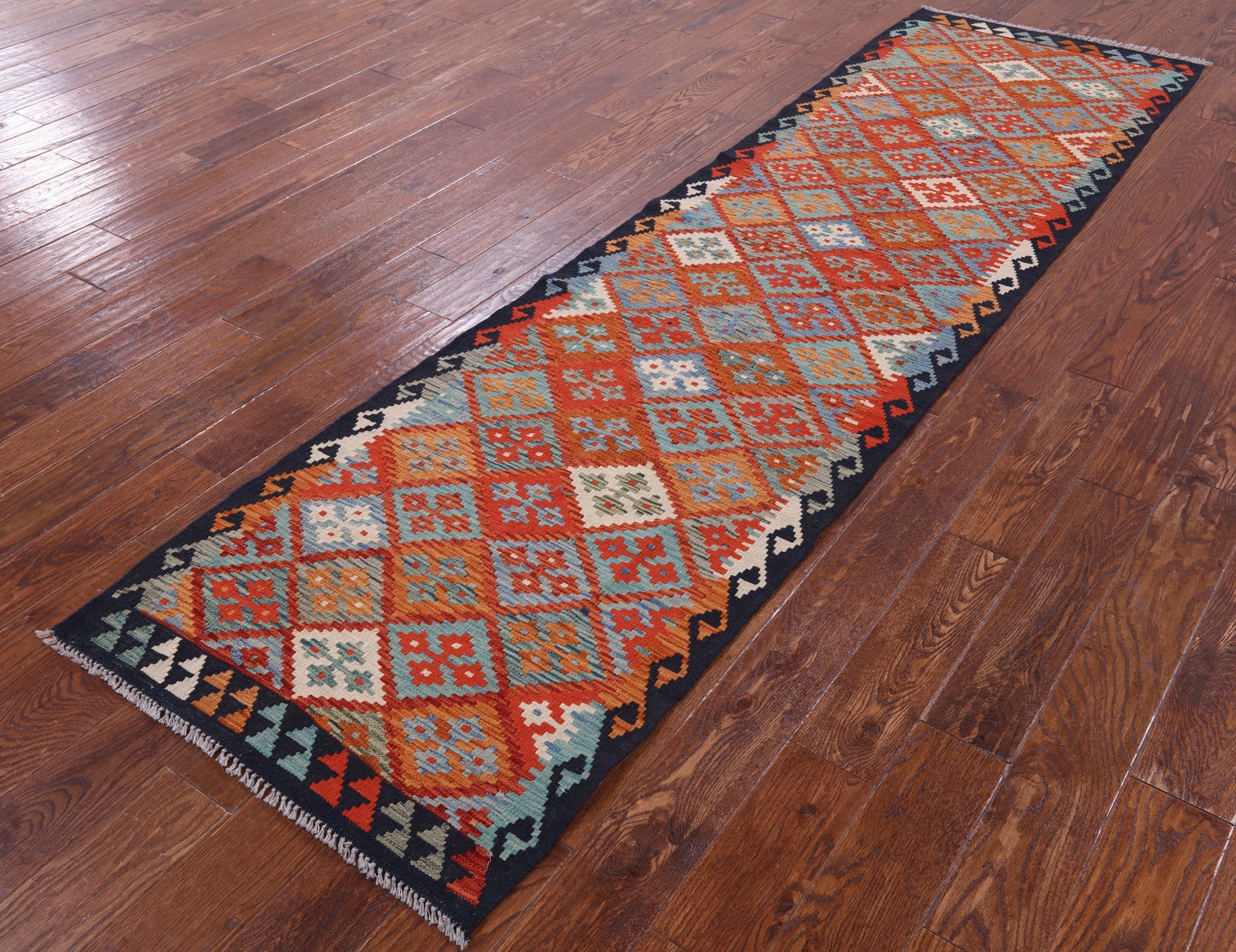 Runner Wool On Wool Reversible Kilim Flat Weave Rug 2' 8" X 10' 0" - Q9470