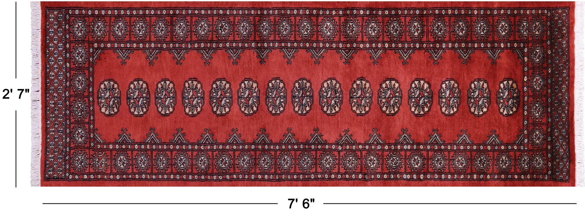 Rust 2' 7" X 7' 6" Runner Silky Bokhara Hand-Knotted Wool Rug - Q23770 is backordered and will ship as soon as it is back in stock.