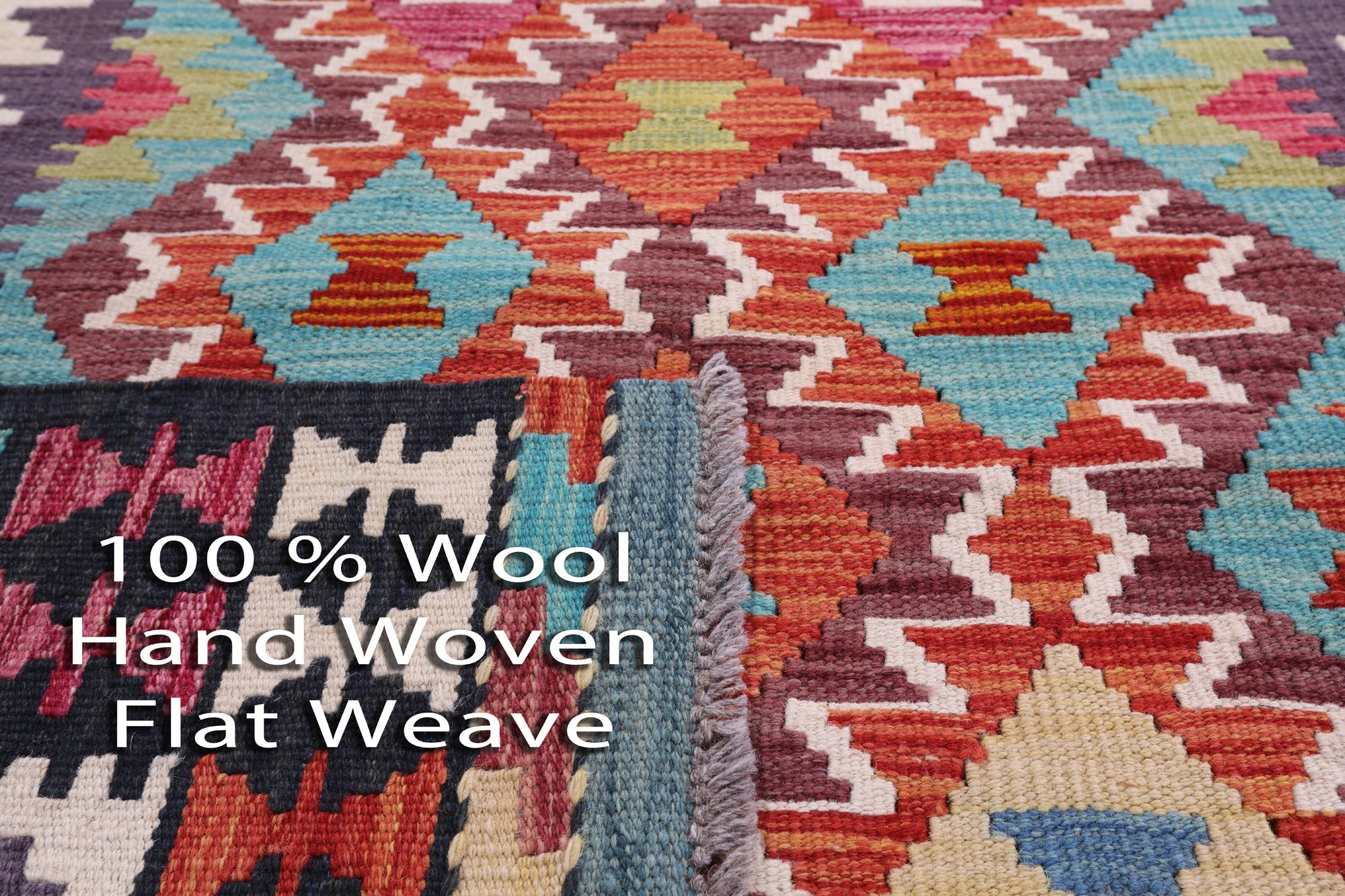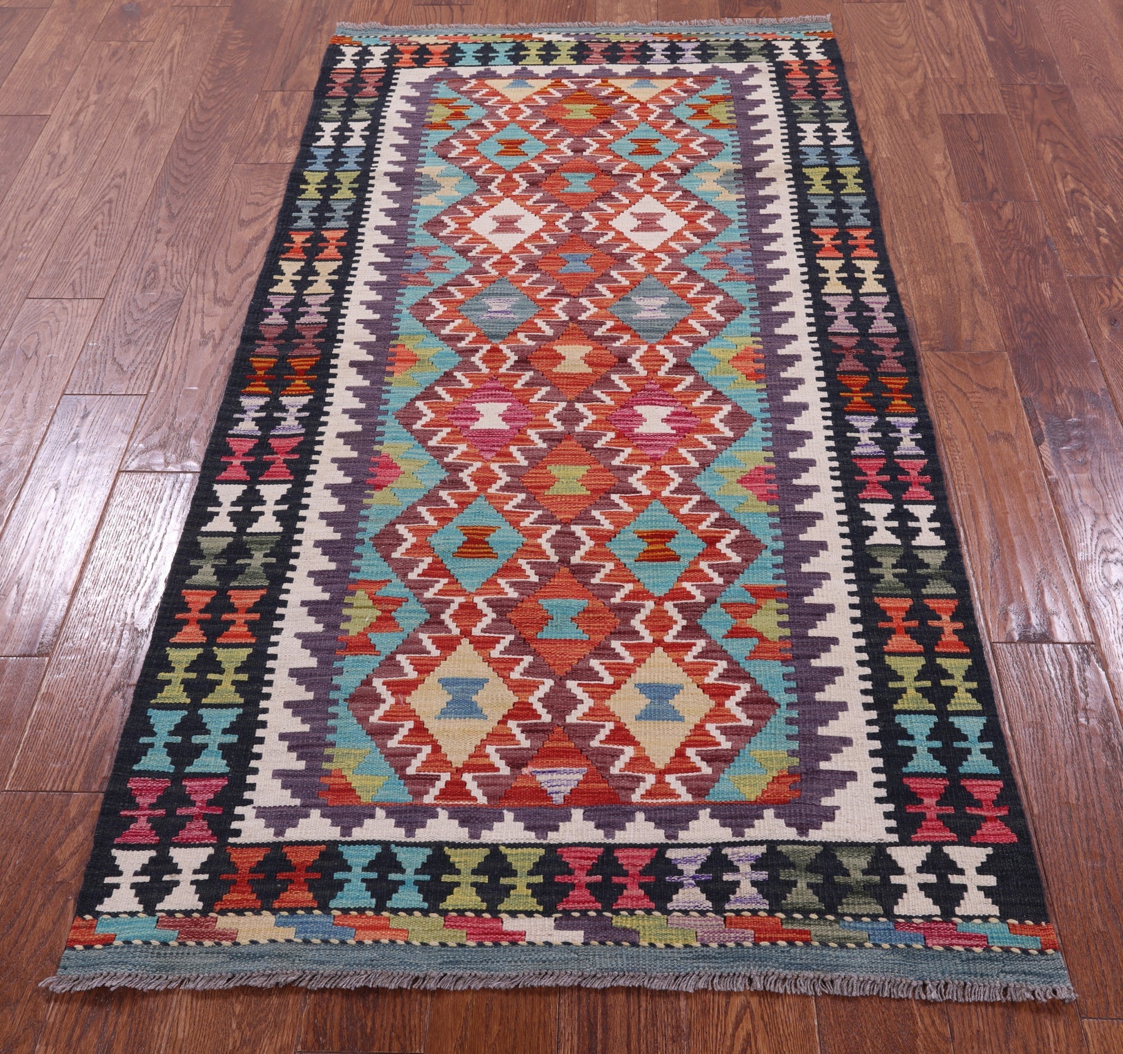 3' 4" X 6' 4" Wool On Wool Flat Weave Kilim Runner Reversible Rug - Q17866
