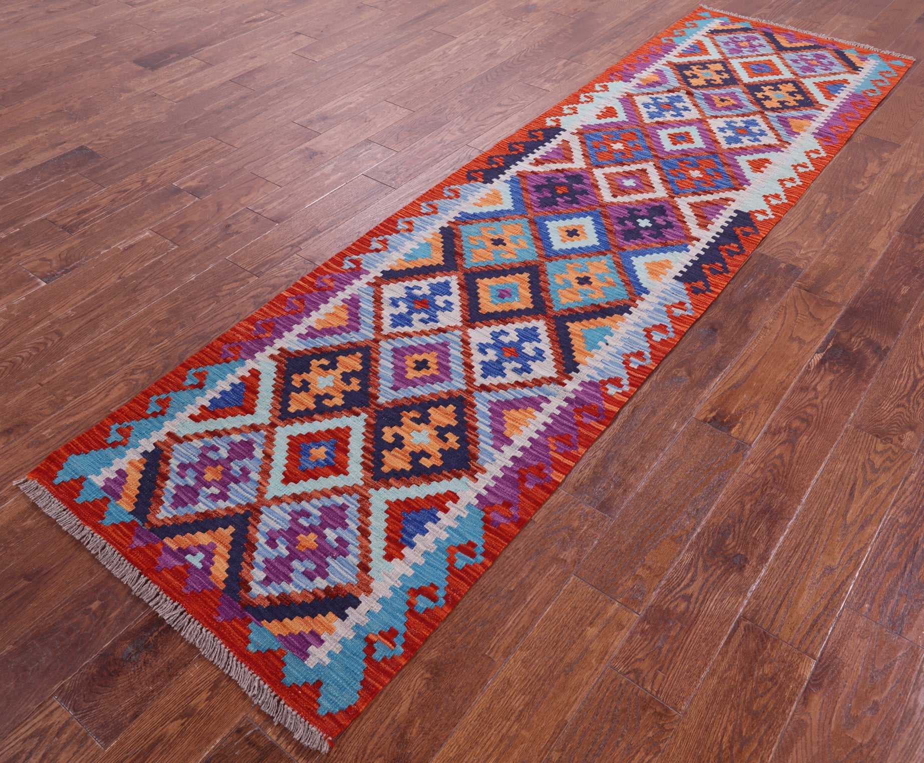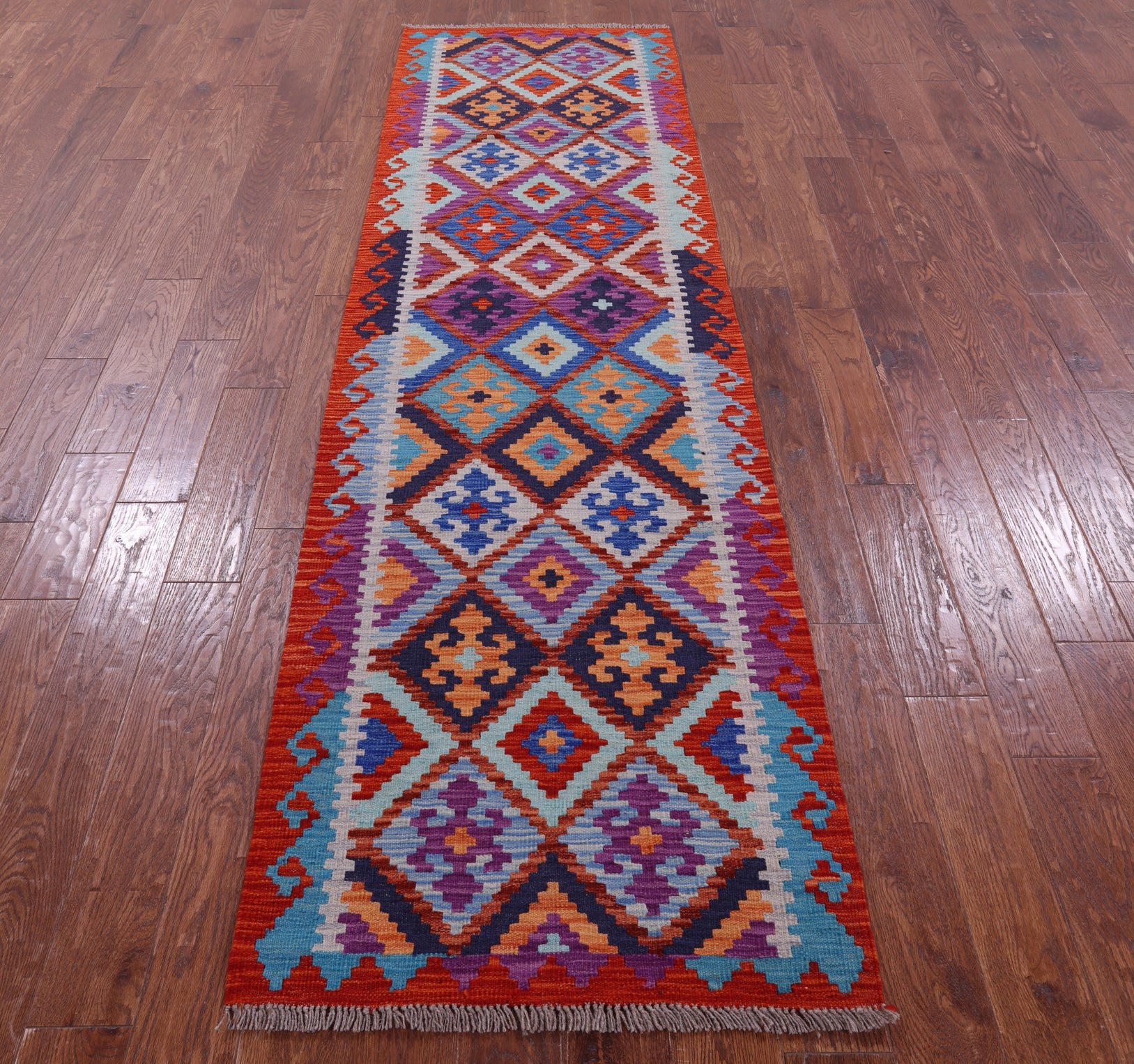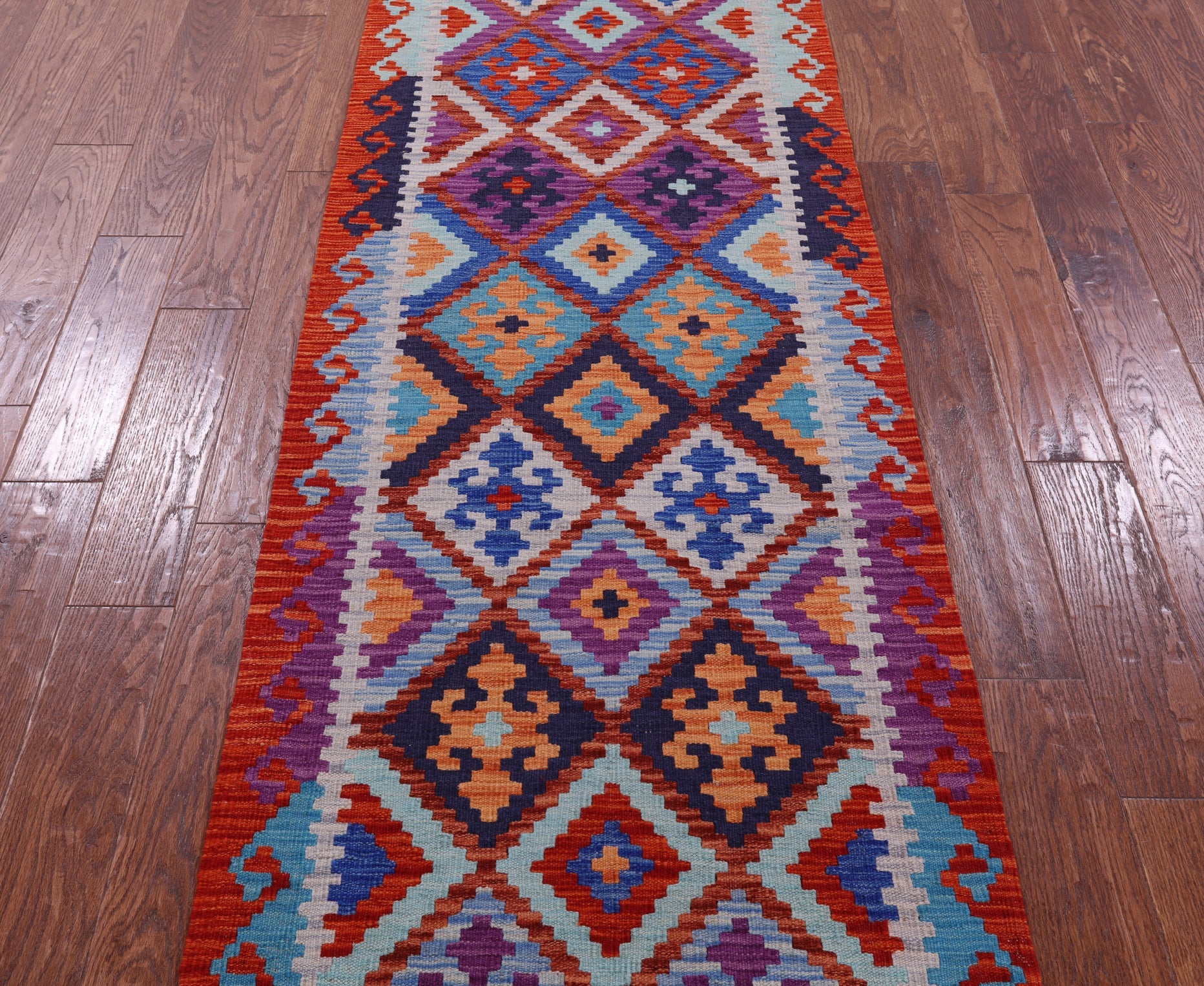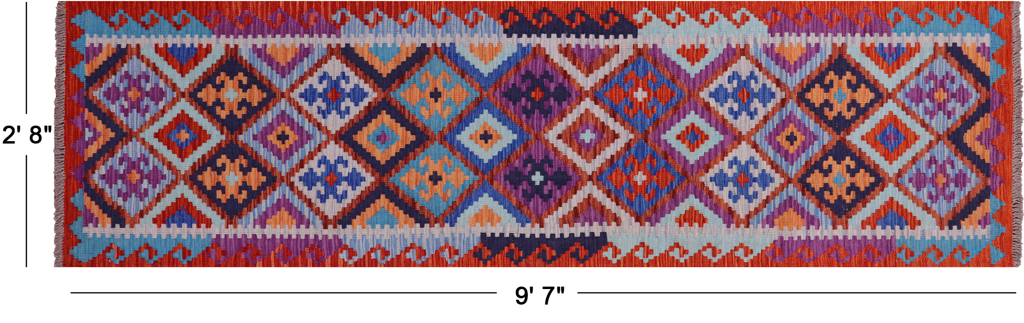 Wool On Wool Kilim Flat Weave Reversible Runner Rug 2' 8" X 9' 7" - Q17502