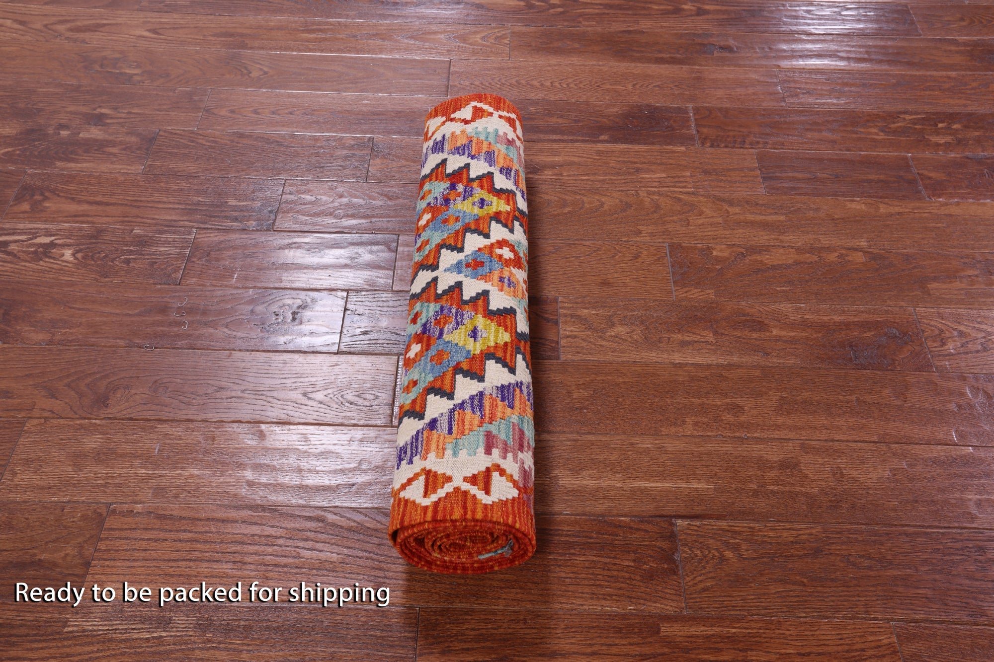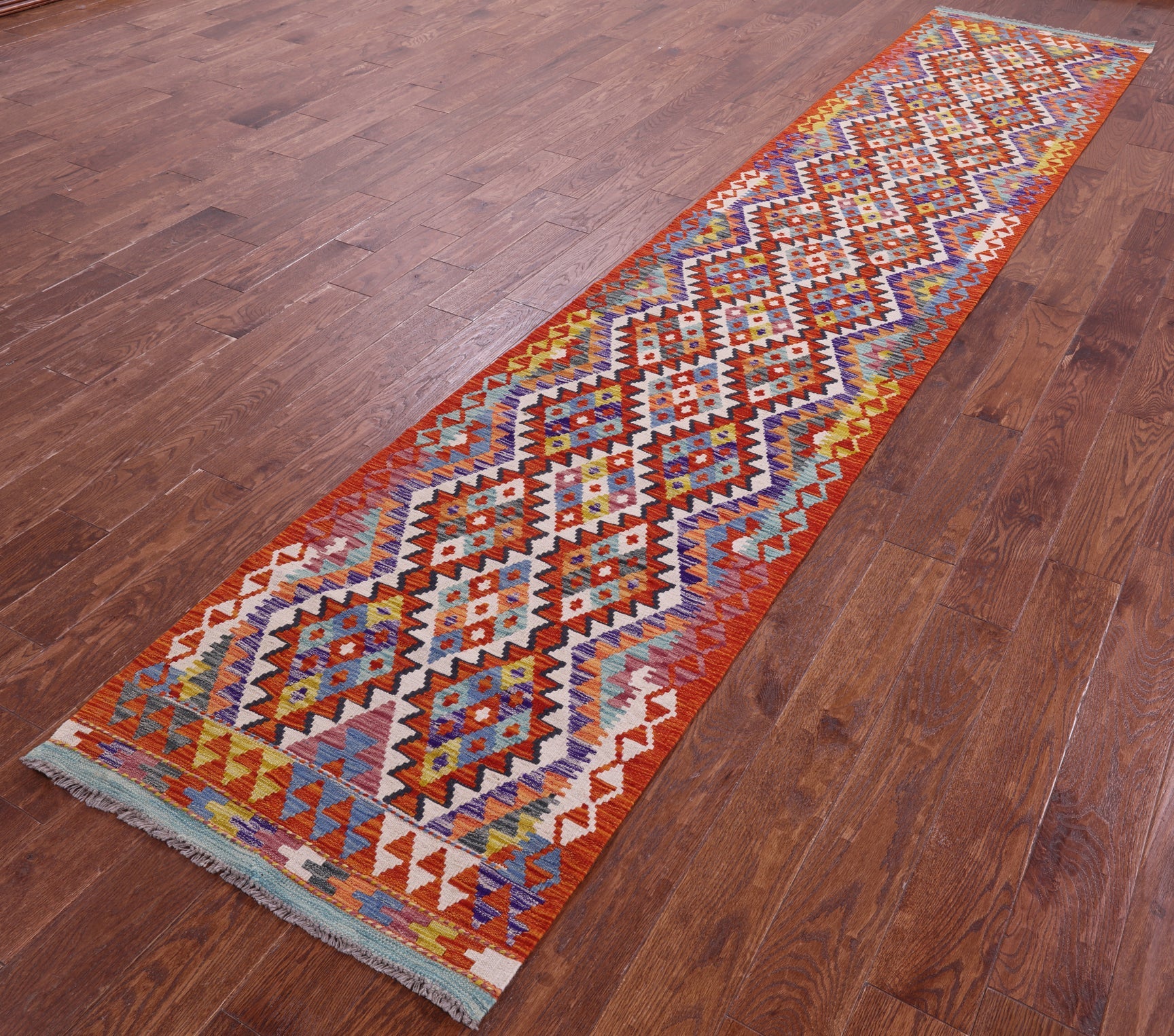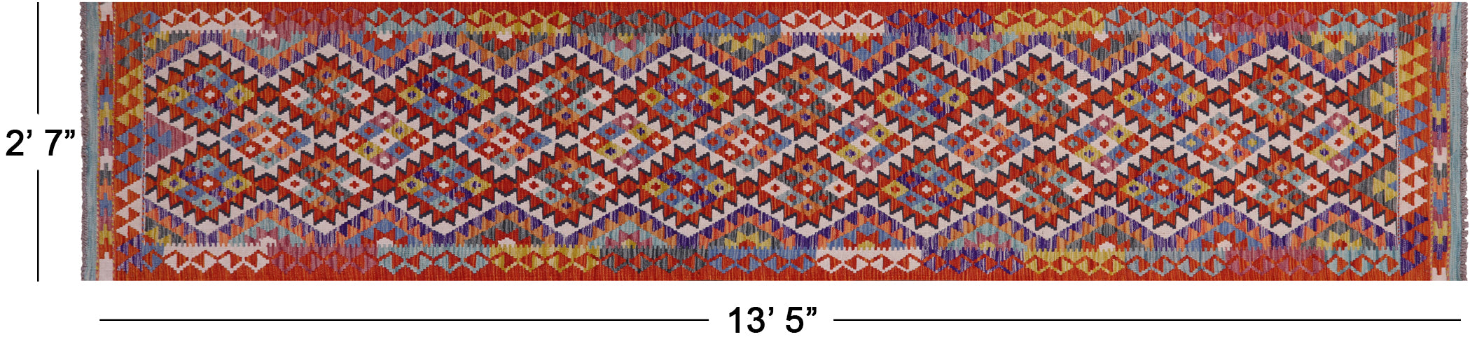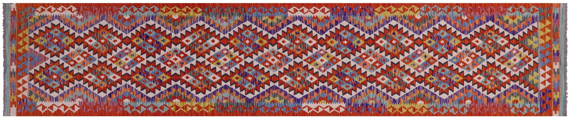 Wool On Wool Reversible Kilim Flat Weave Runner Rug 2' 7" X 13' 5" - Q18158