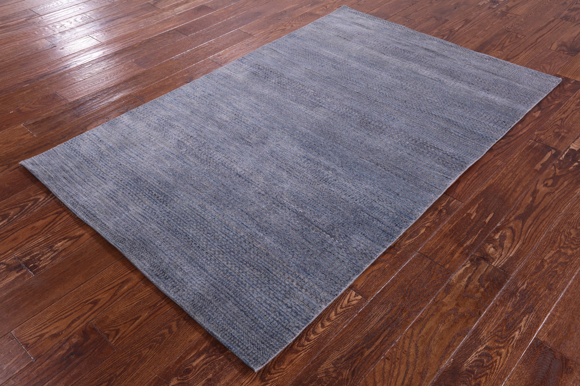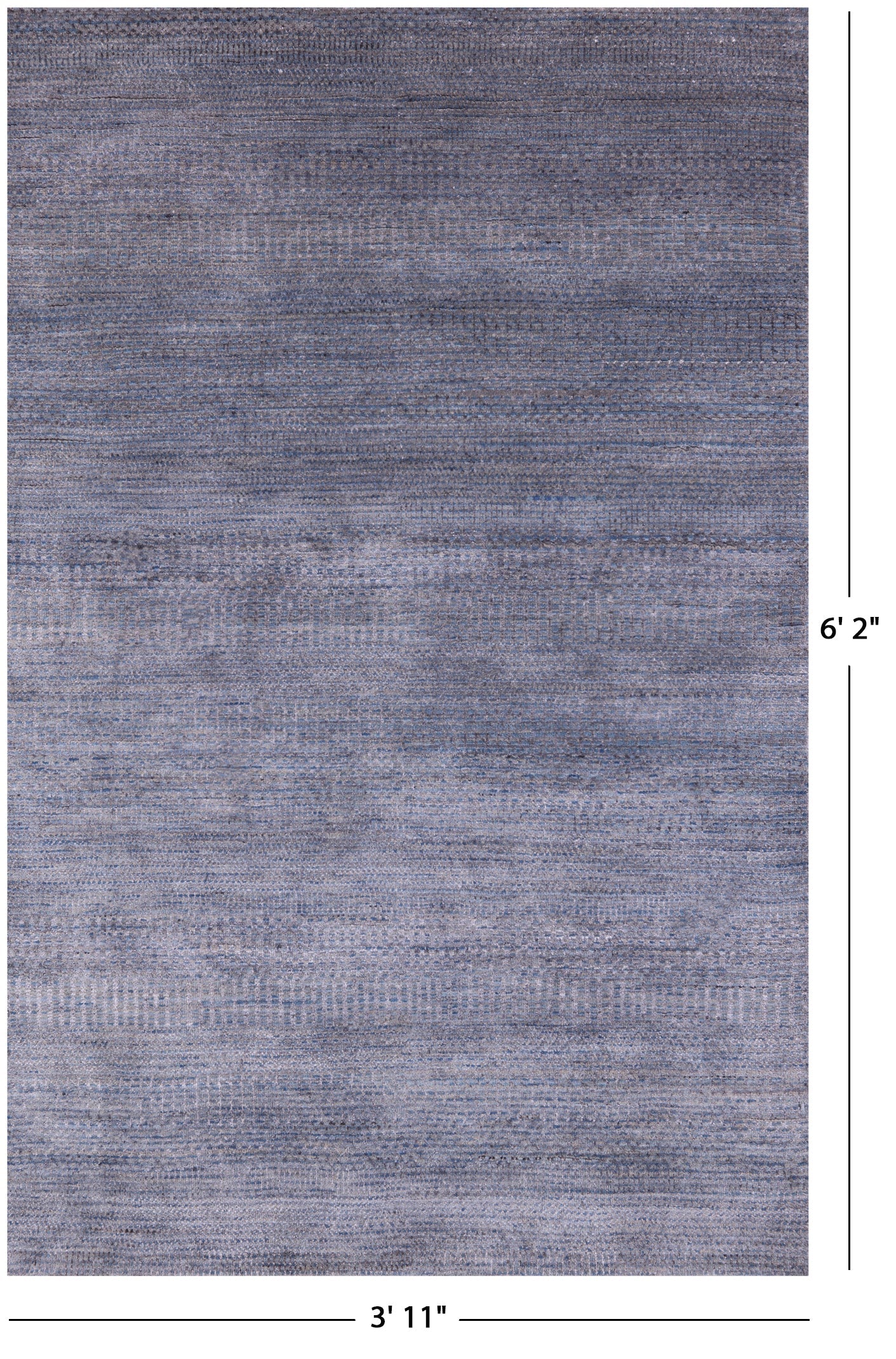 Grey 3' 11" X 6' 2" Savannah Grass Hand Knotted Wool & Silk Rug - Q11481