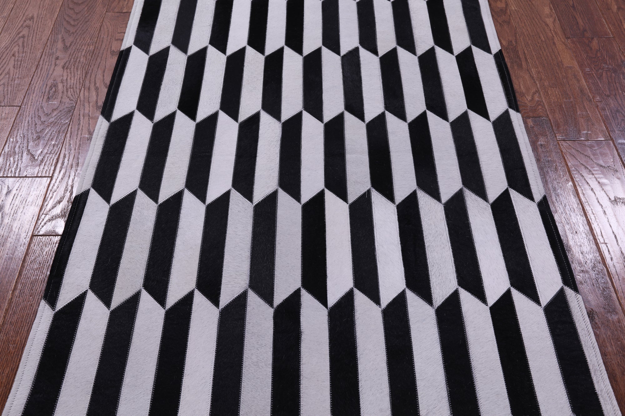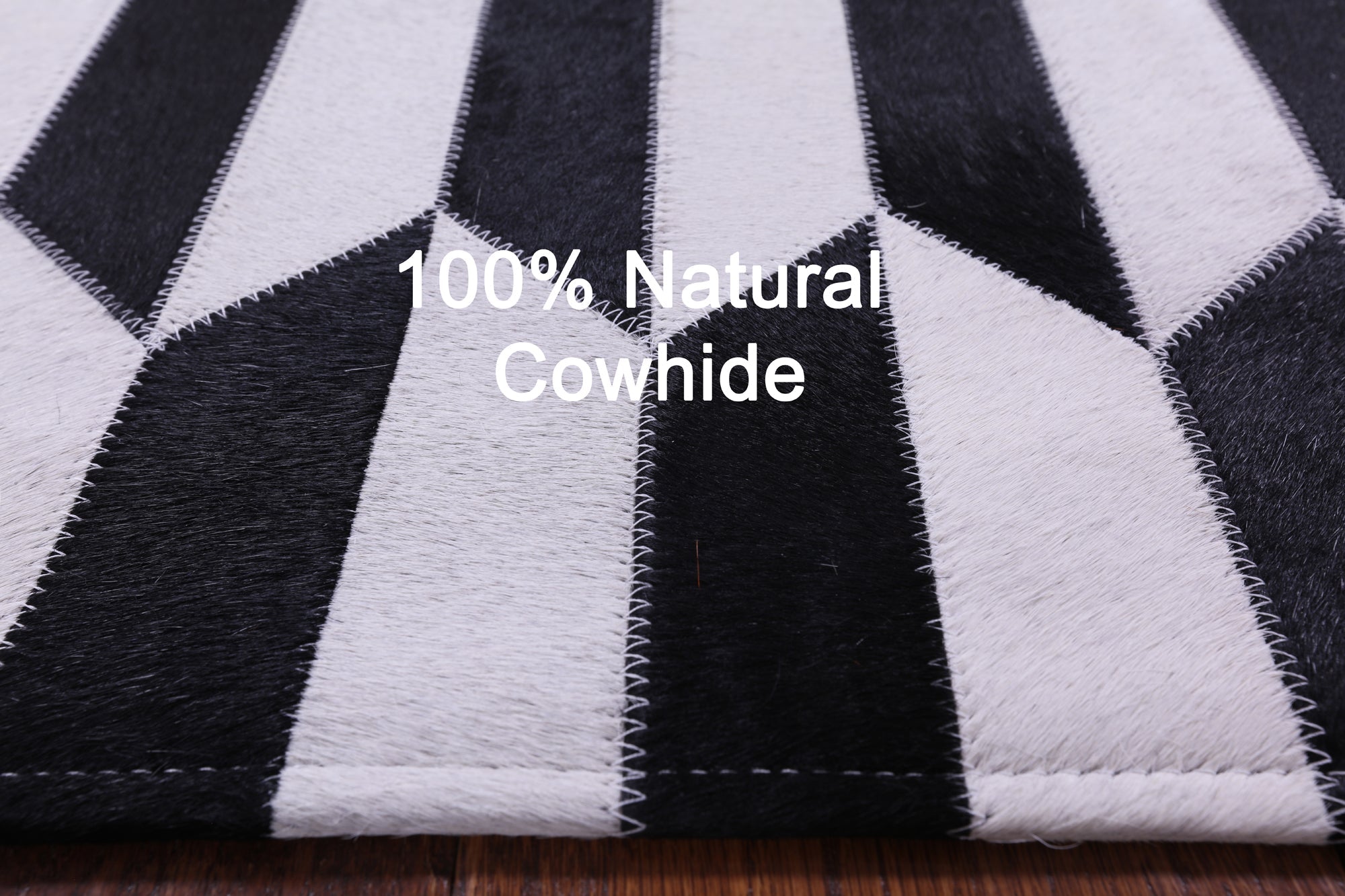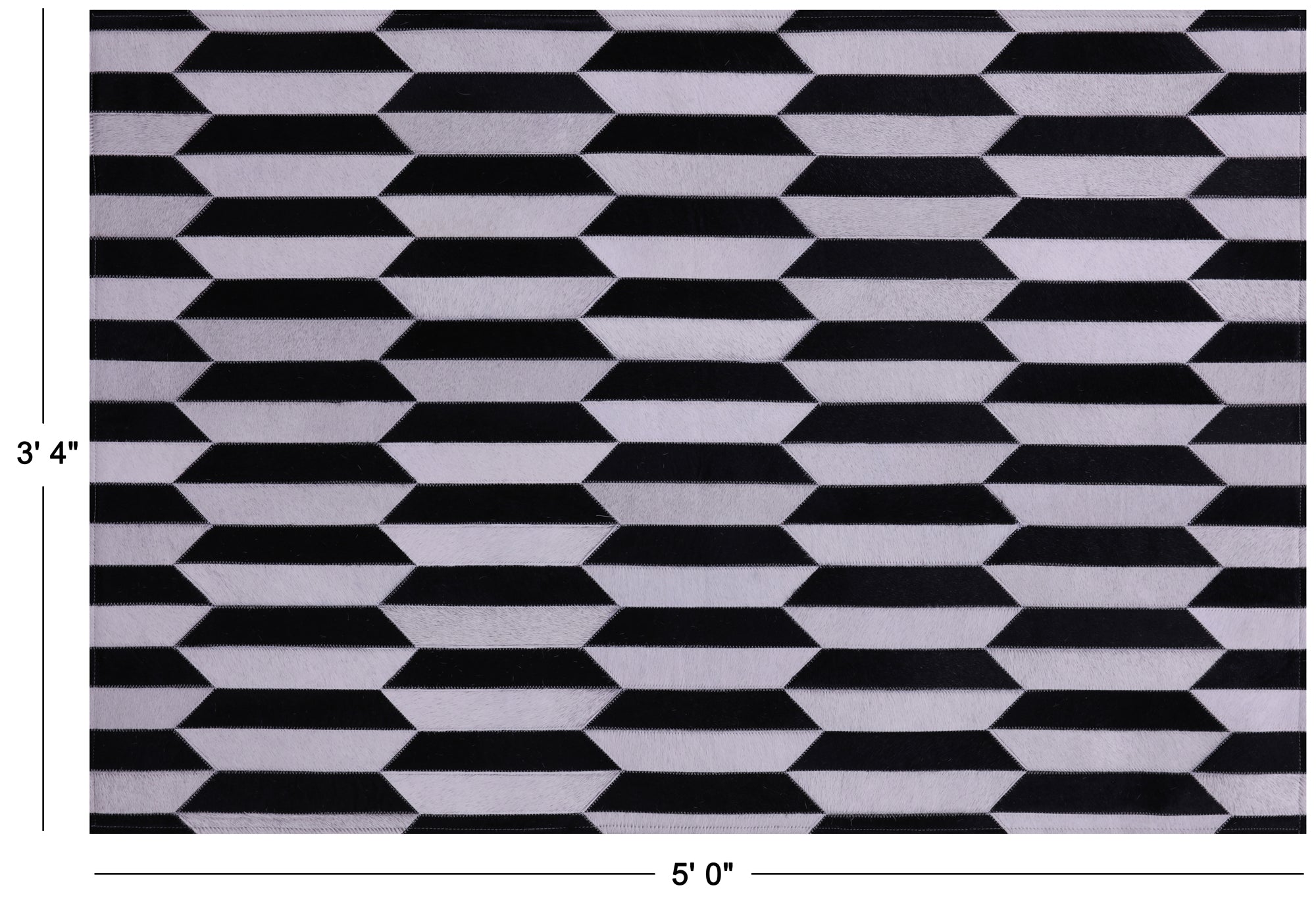 3' 4" X 5' 0" Black & White Natural Cowhide Hand Stitched Rug - C3407