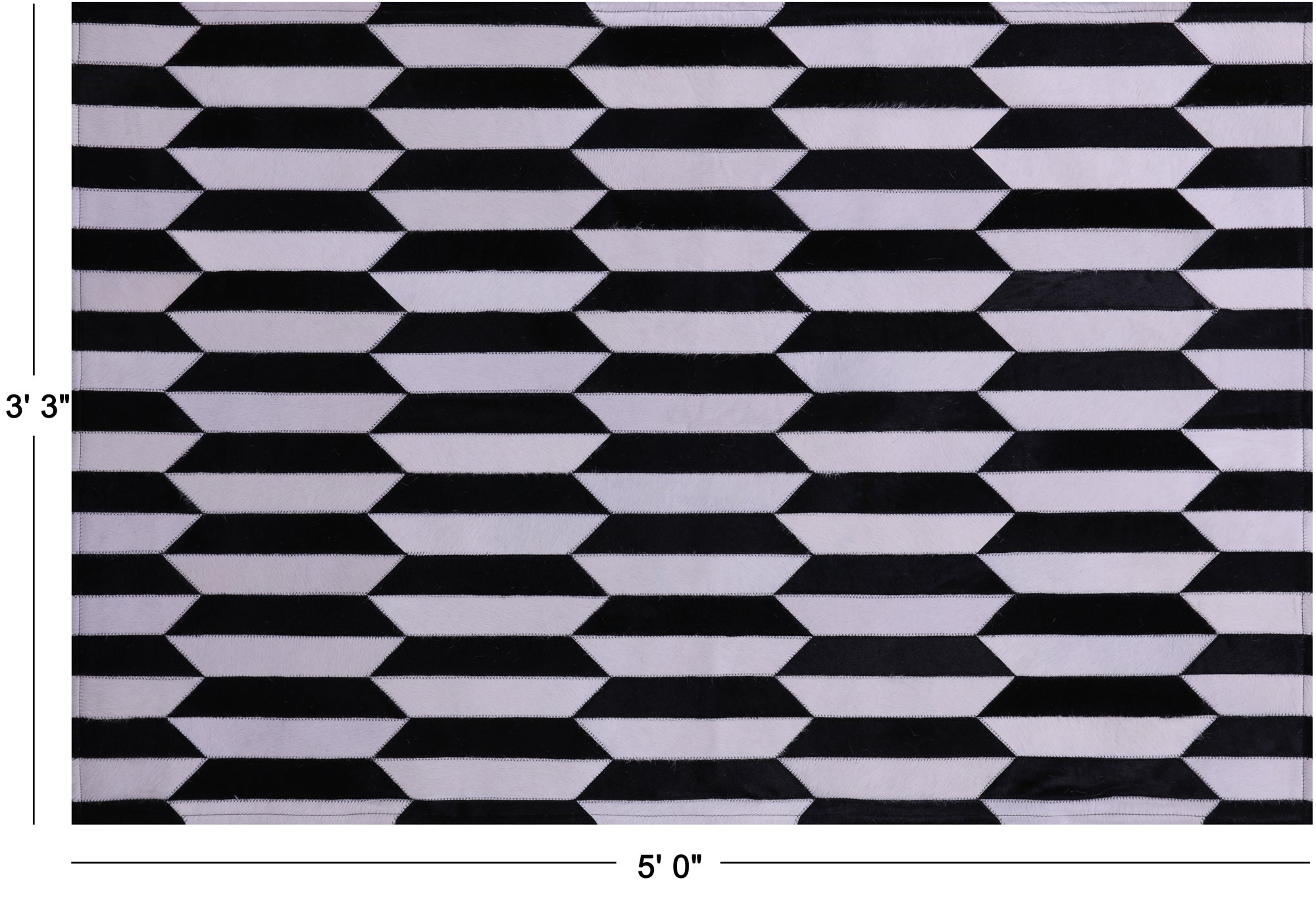 Black & White Natural Cowhide Hand Stitched Rug 3' 3" X 5' 0" - C3412