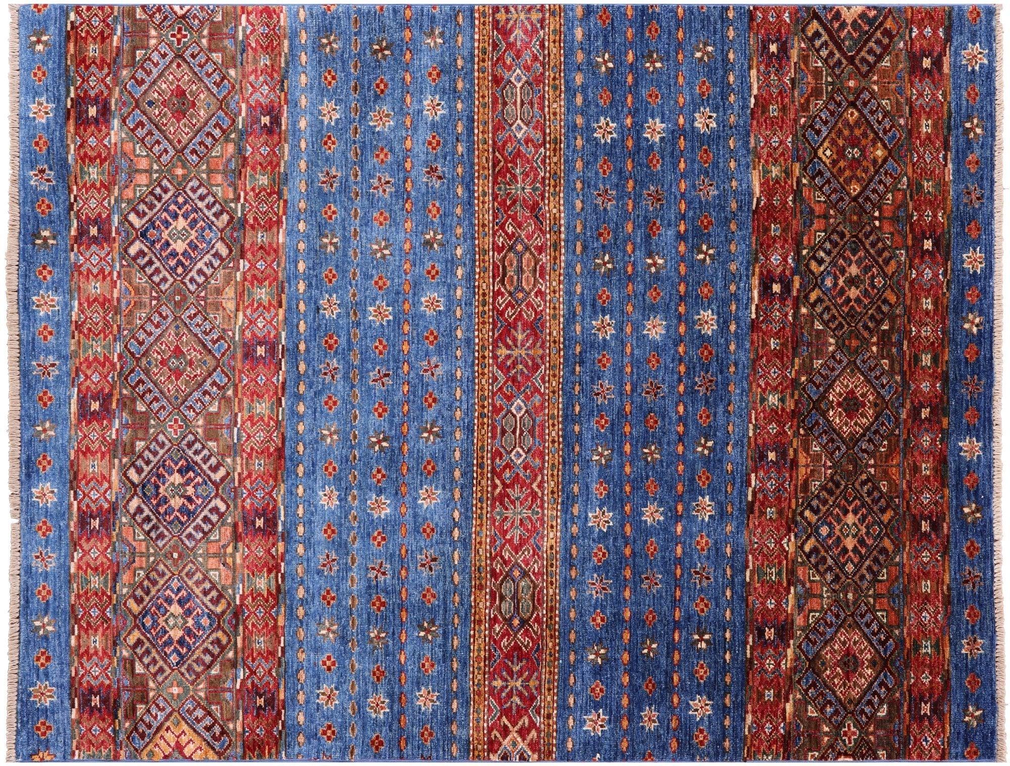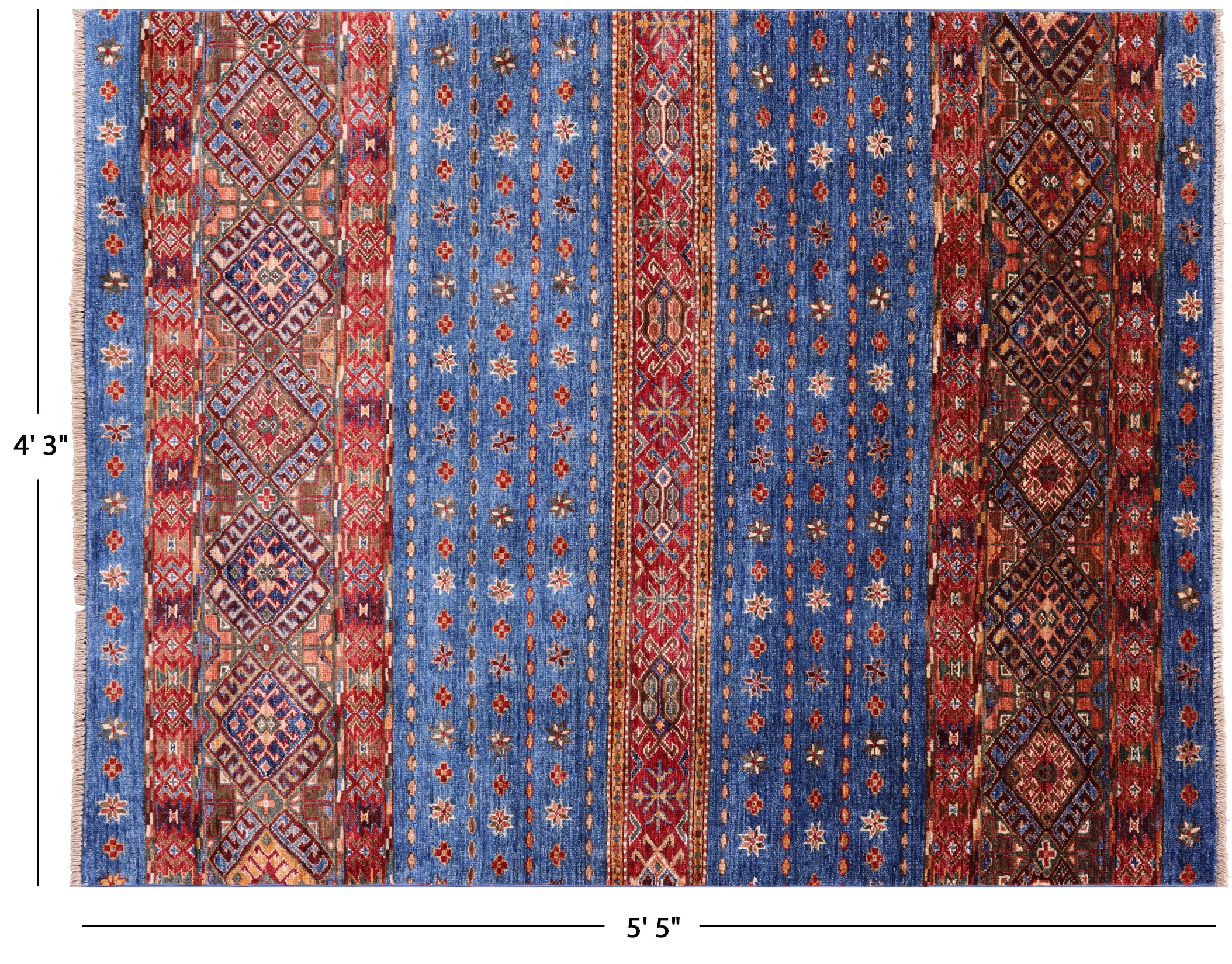 Blue 4' 3" X 5' 5" Super Kazak Khorjin Hand Knotted Rug - Q11065
