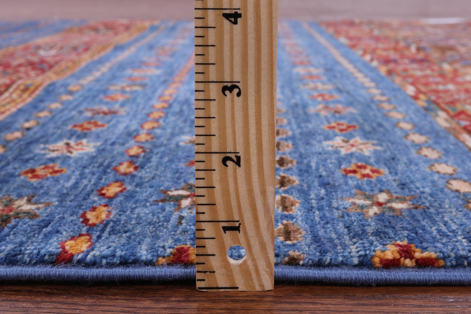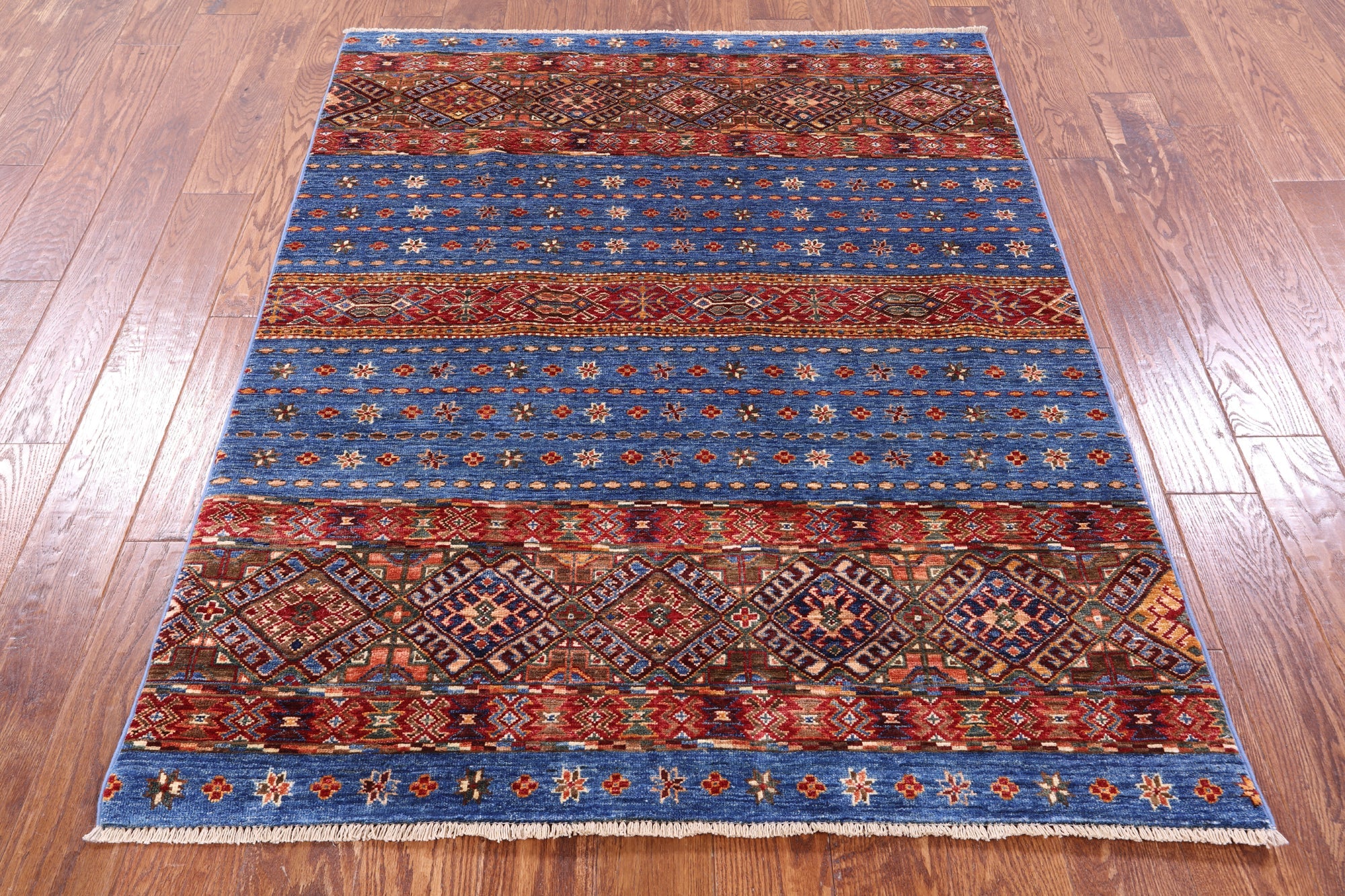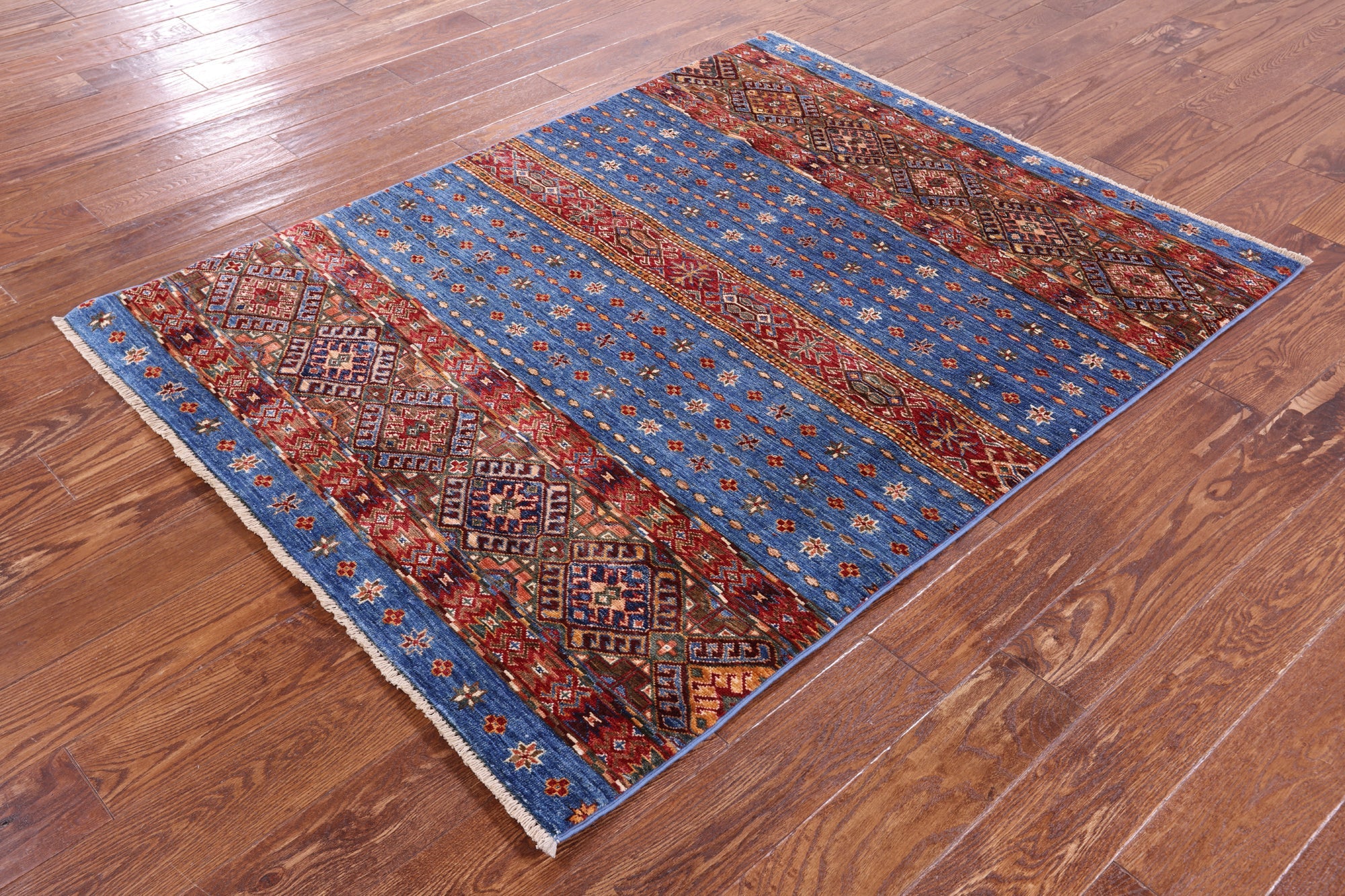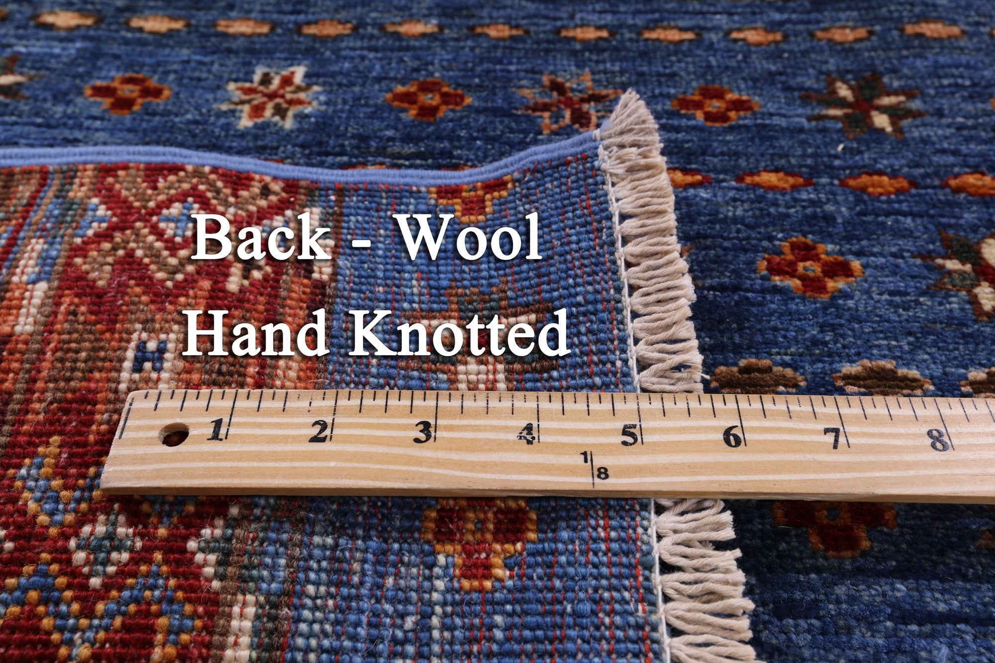 Blue 4' 3" X 5' 5" Super Kazak Khorjin Hand Knotted Rug - Q11065 is backordered and will ship as soon as it is back in stock.