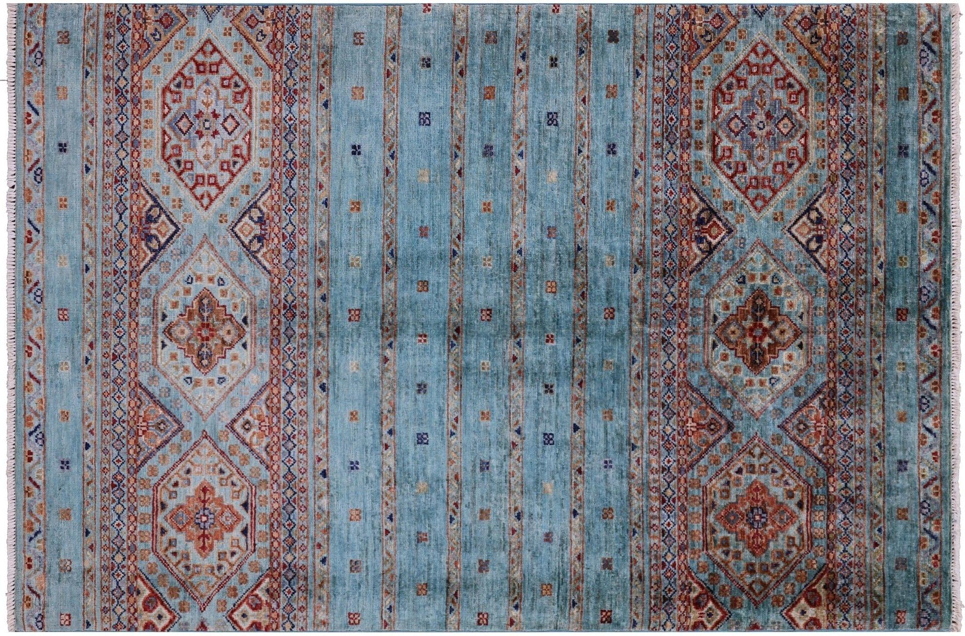 Blue 3' 5" X 5' 1" Super Kazak Khorjin Hand Knotted Rug - Q21047