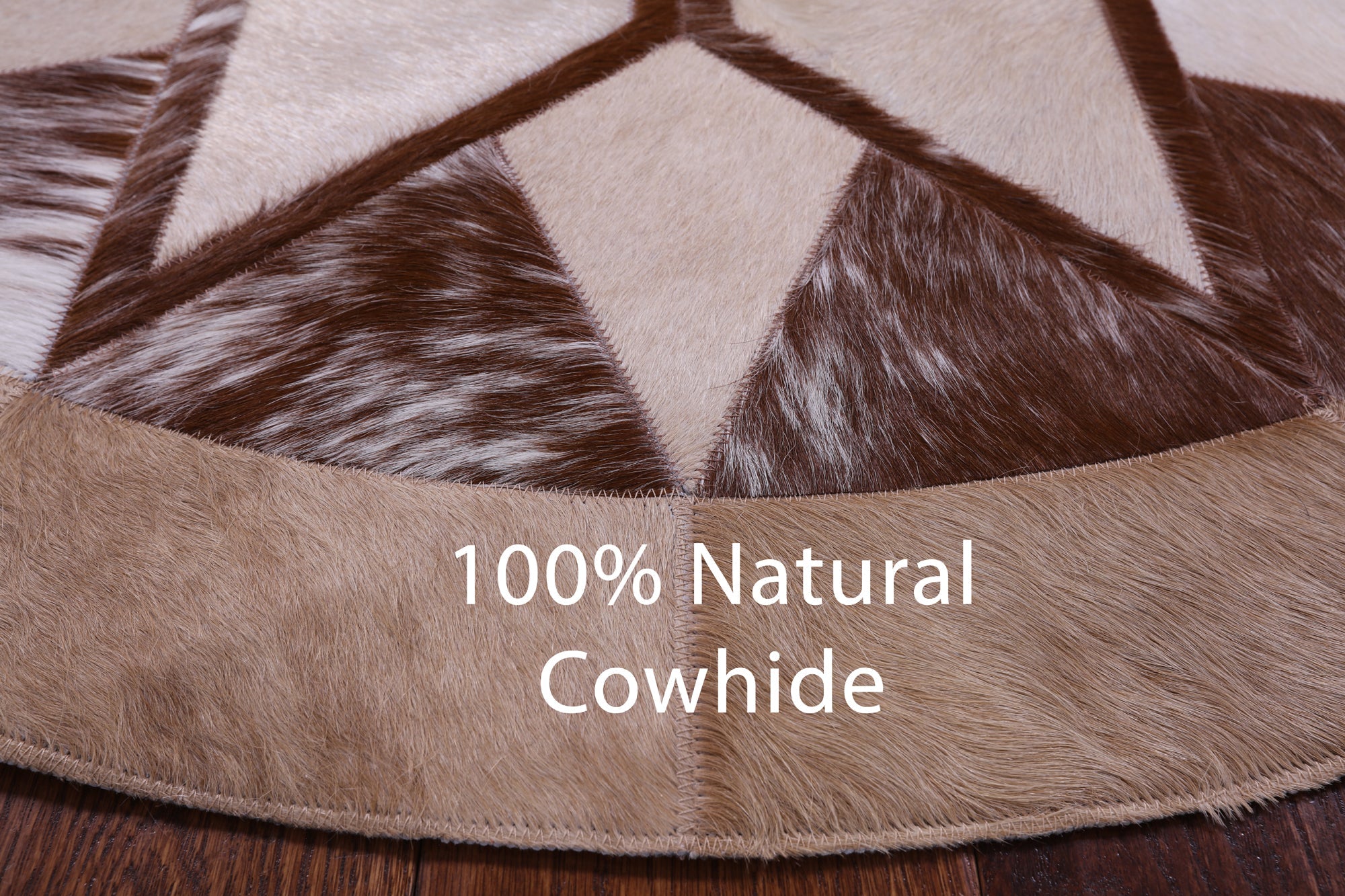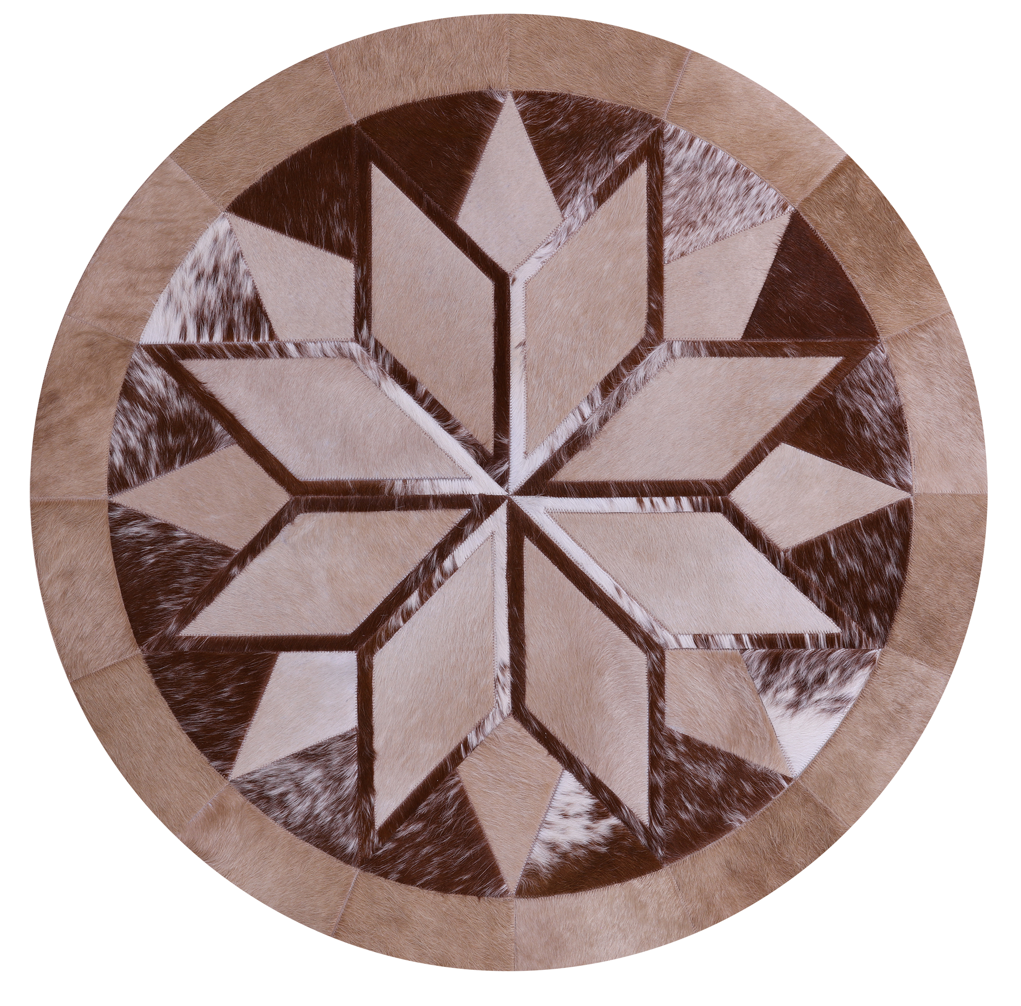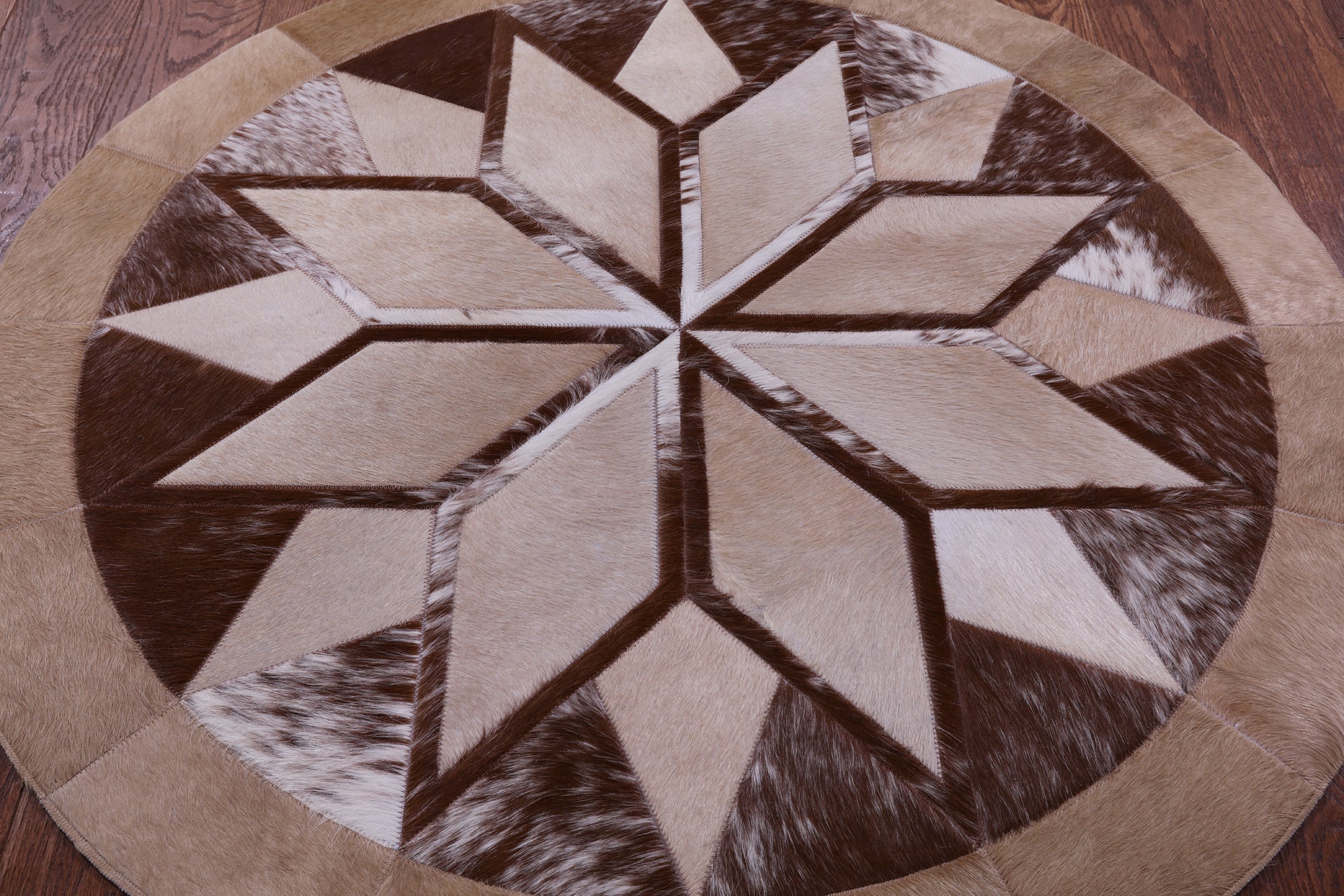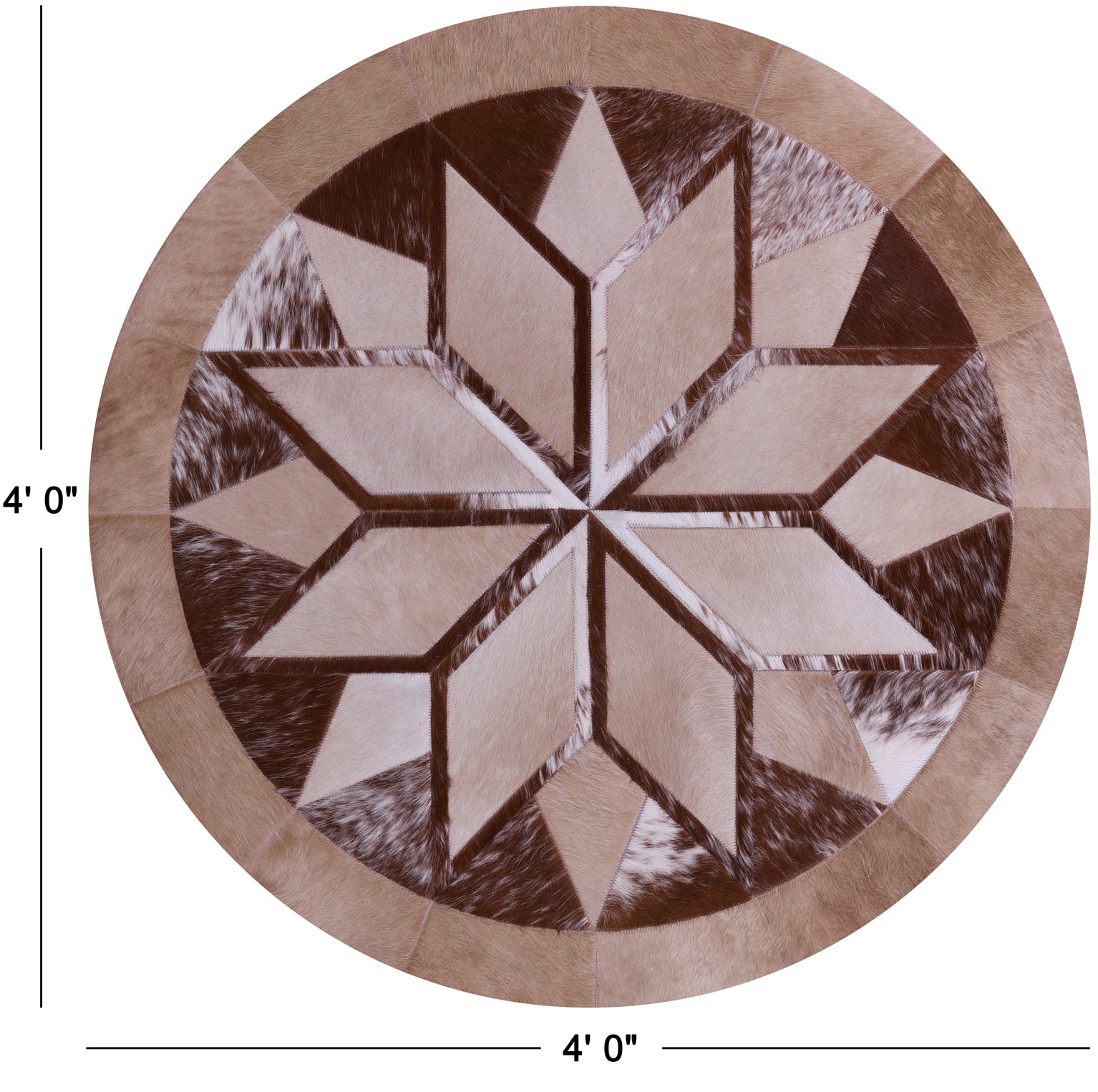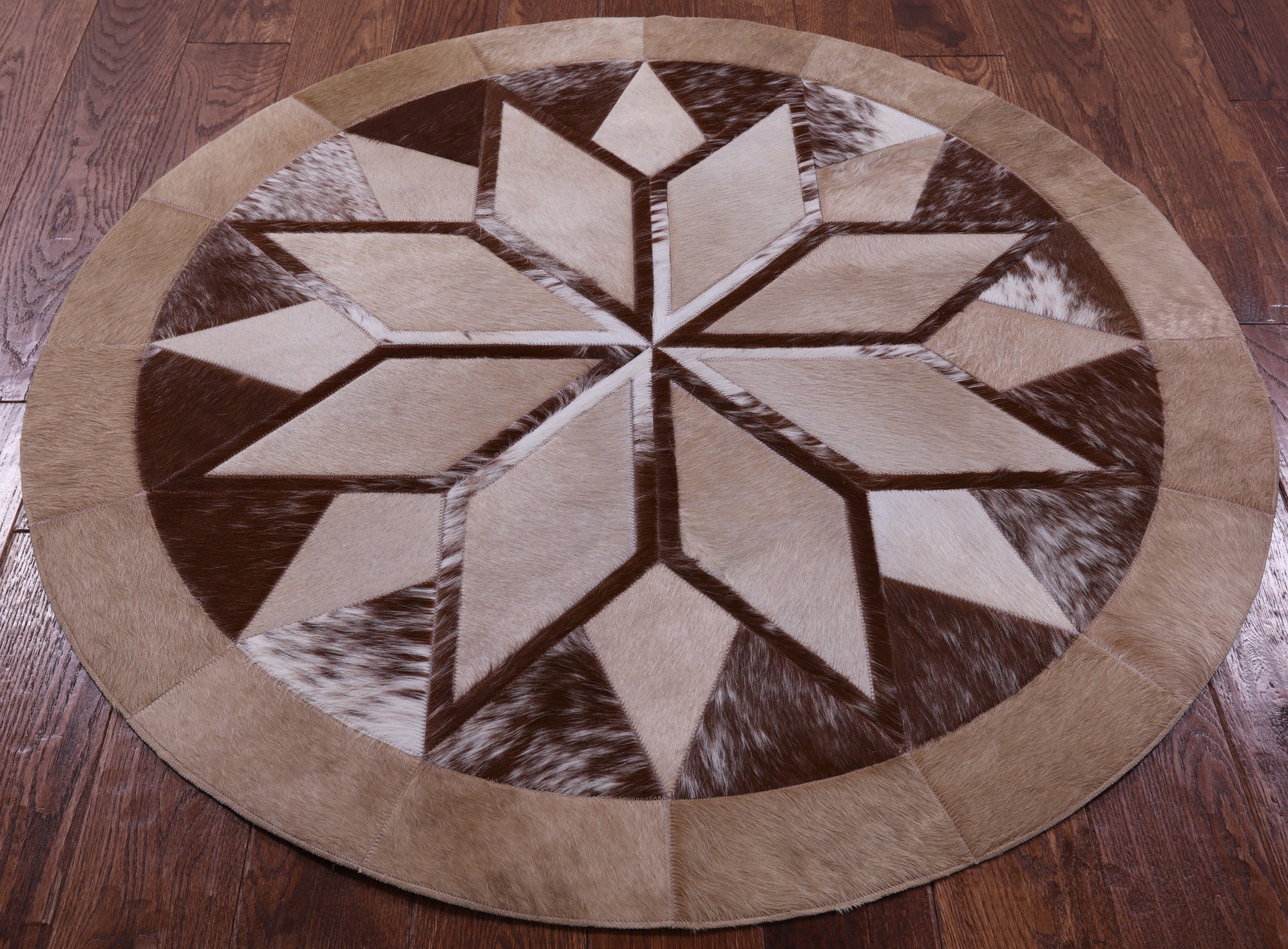 4' 0" X 4' 0" Brown Round Star Natural Cowhide Hand Stitched Rug - C3497 is backordered and will ship as soon as it is back in stock.
