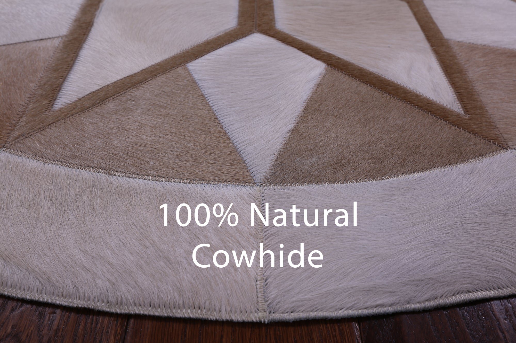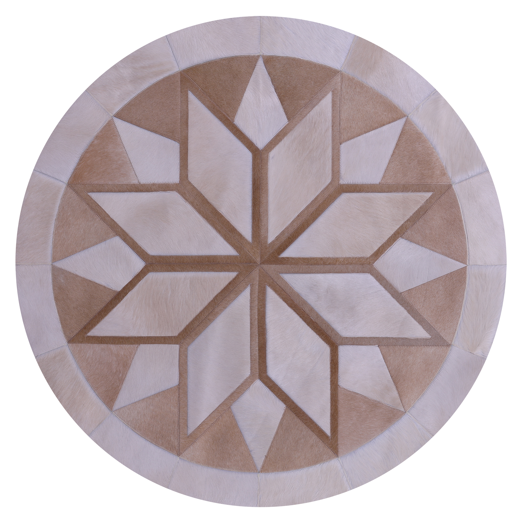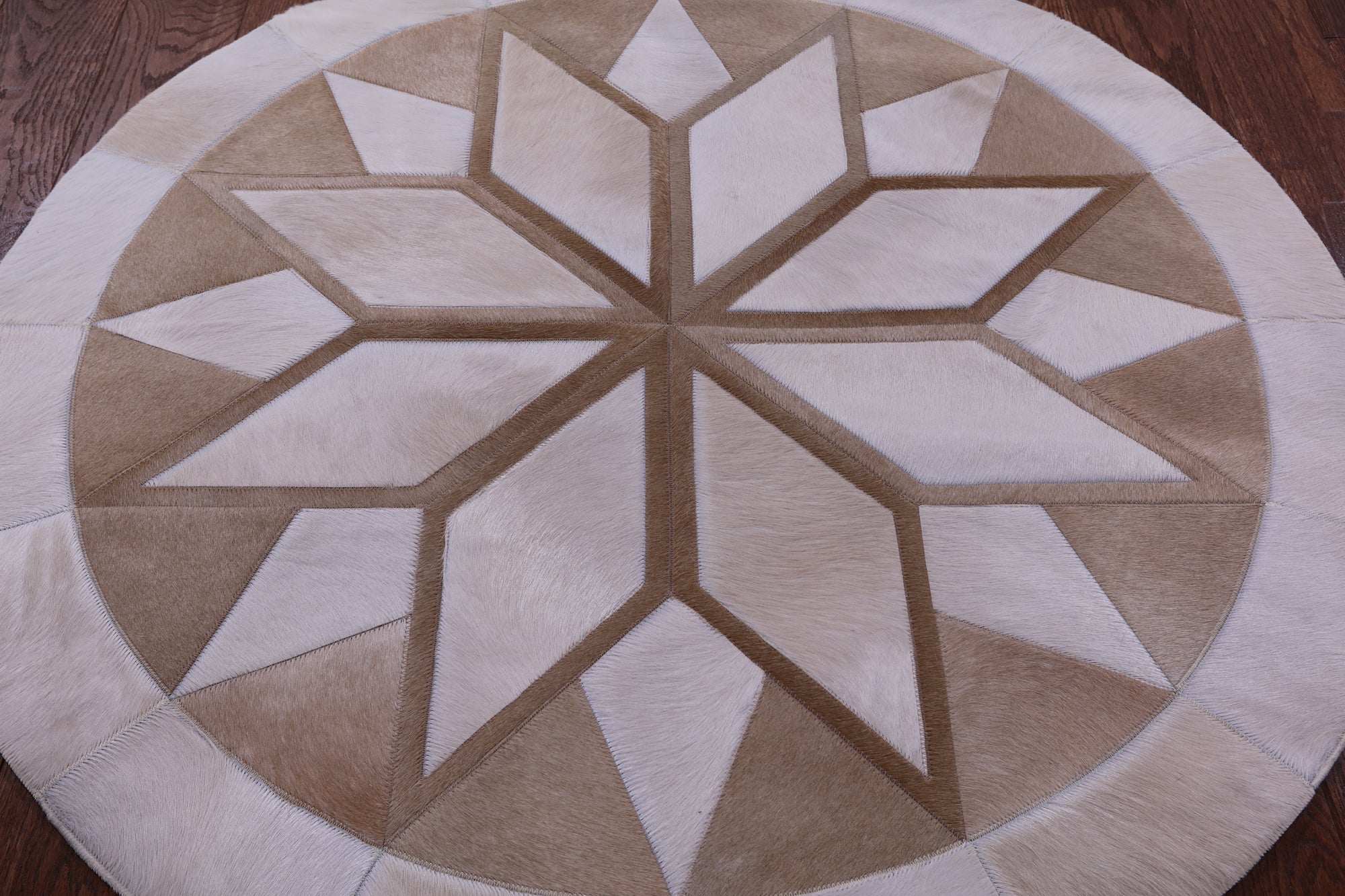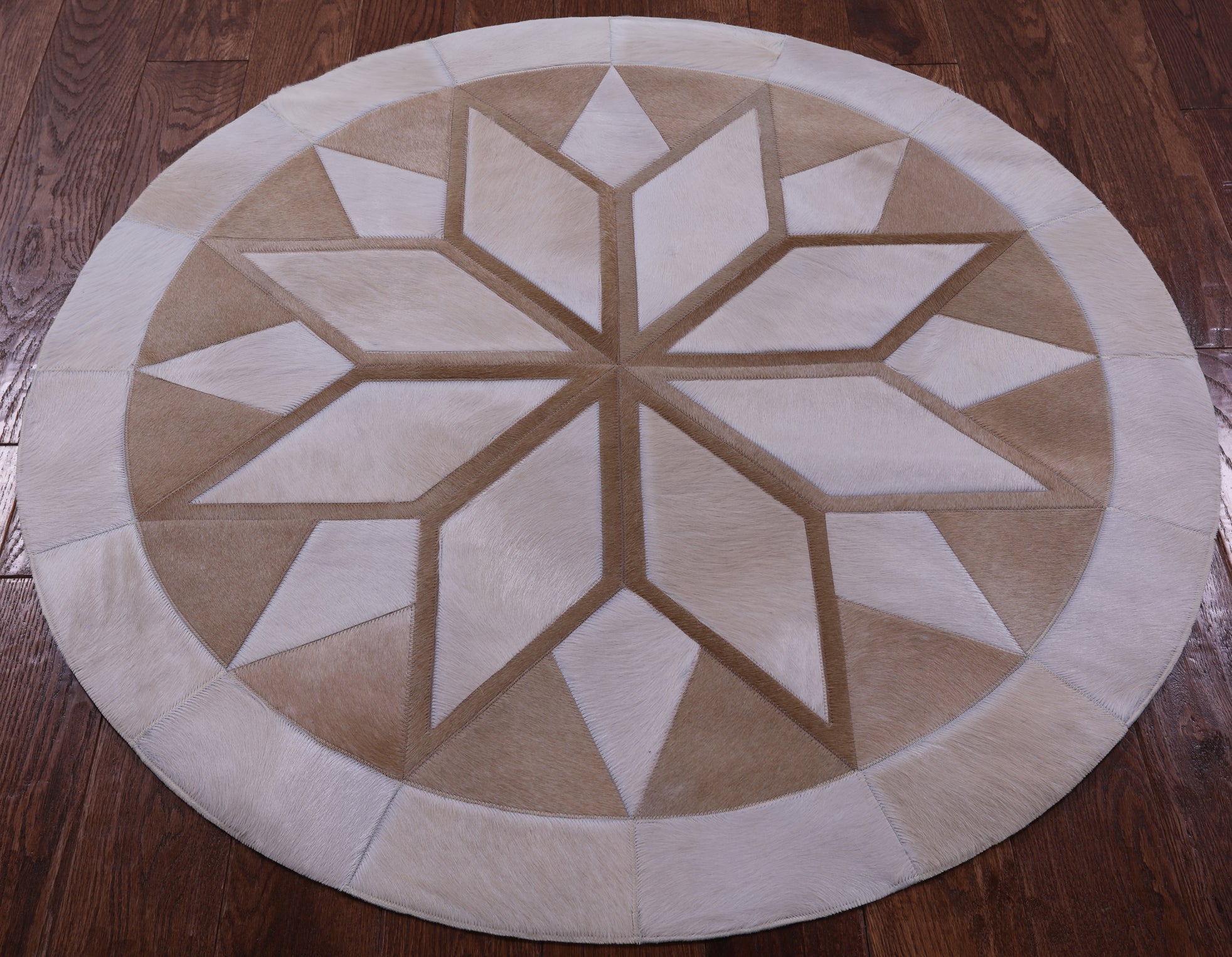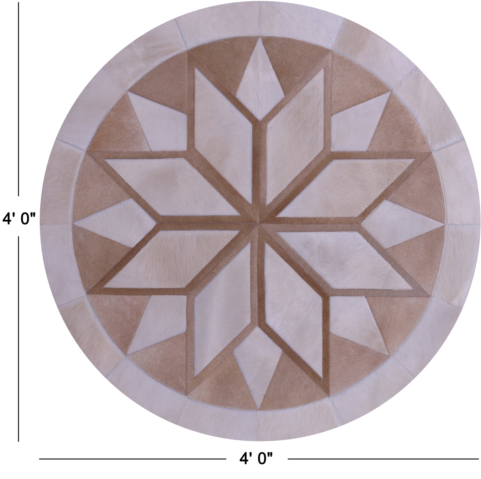 4' 0" X 4' 0" Brown Round Star Natural Cowhide Hand Stitched Rug - C3504