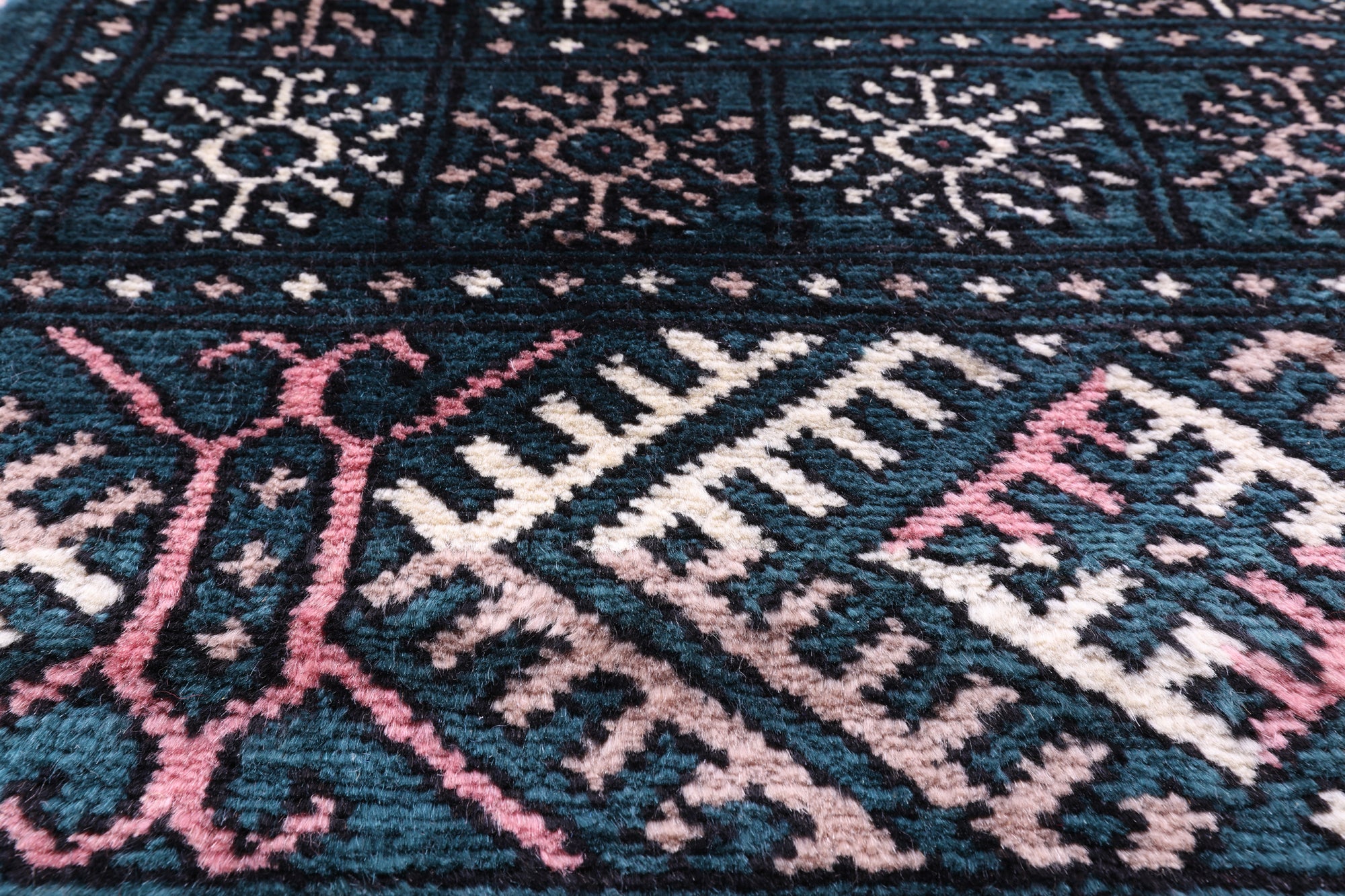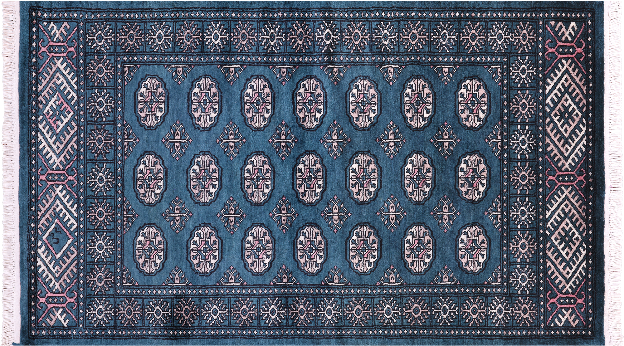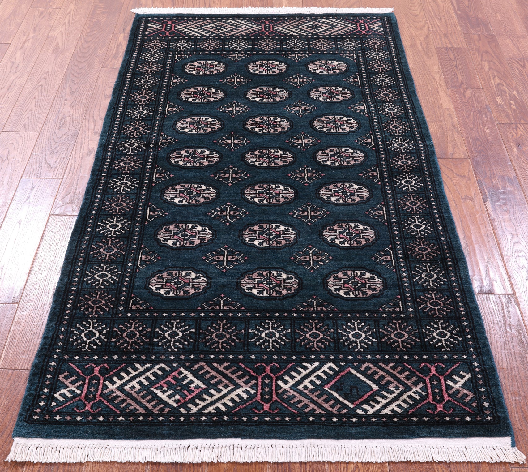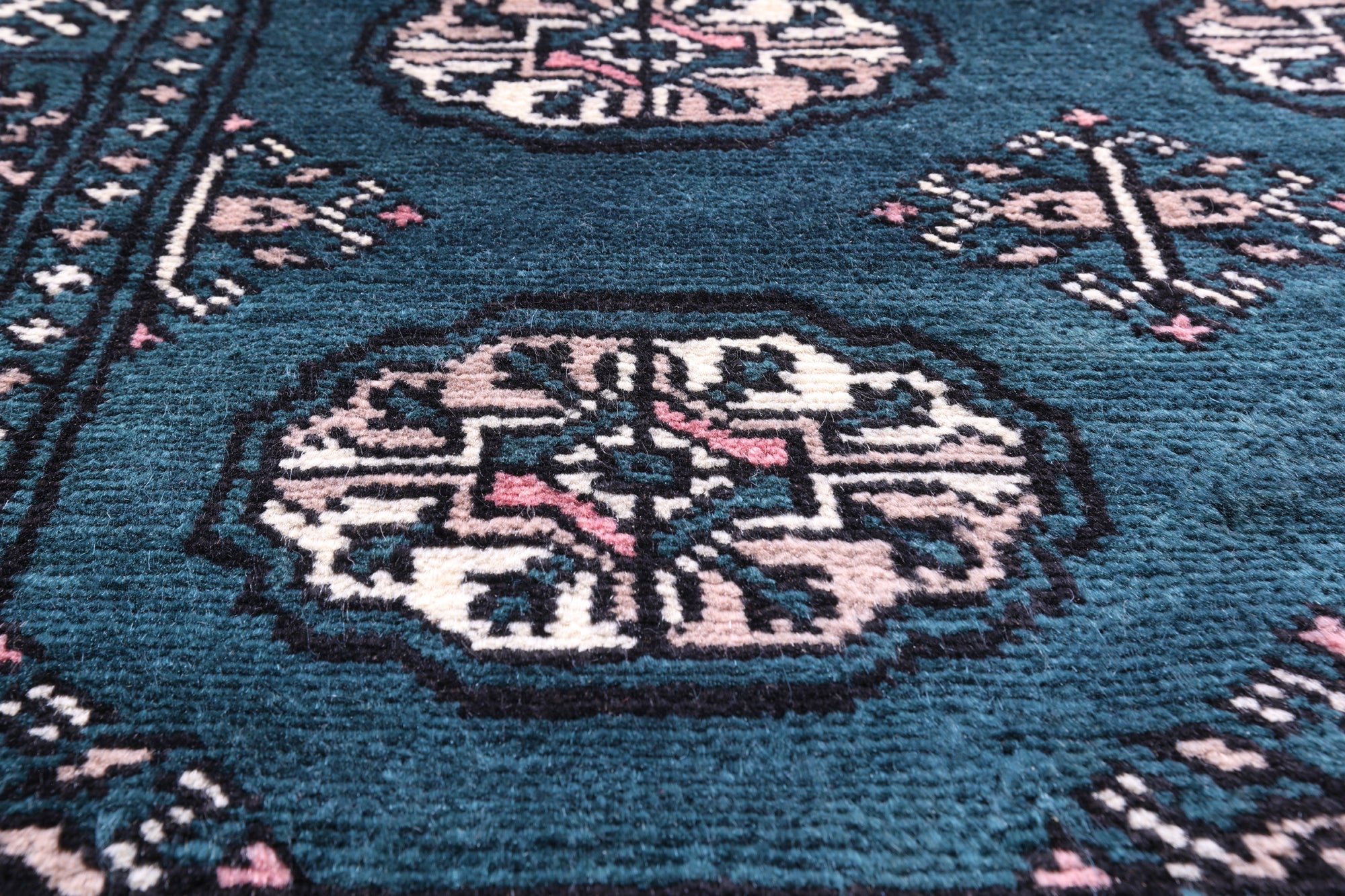 Bokharas are a type of handmade Pakistani rug; also known as Bukharas or Bokaras. Most are based on Turkmen prototypes called Tekkes. Pakistani Bokhara rugs are among the most popular handmade rugs in the world. They are popular for their soft, luxurious feel, heavy pile, attractive colors and appearance that consist of repeating octagonal figures called guls, usually on fields of burgundy red, gray blue, or sometimes green.