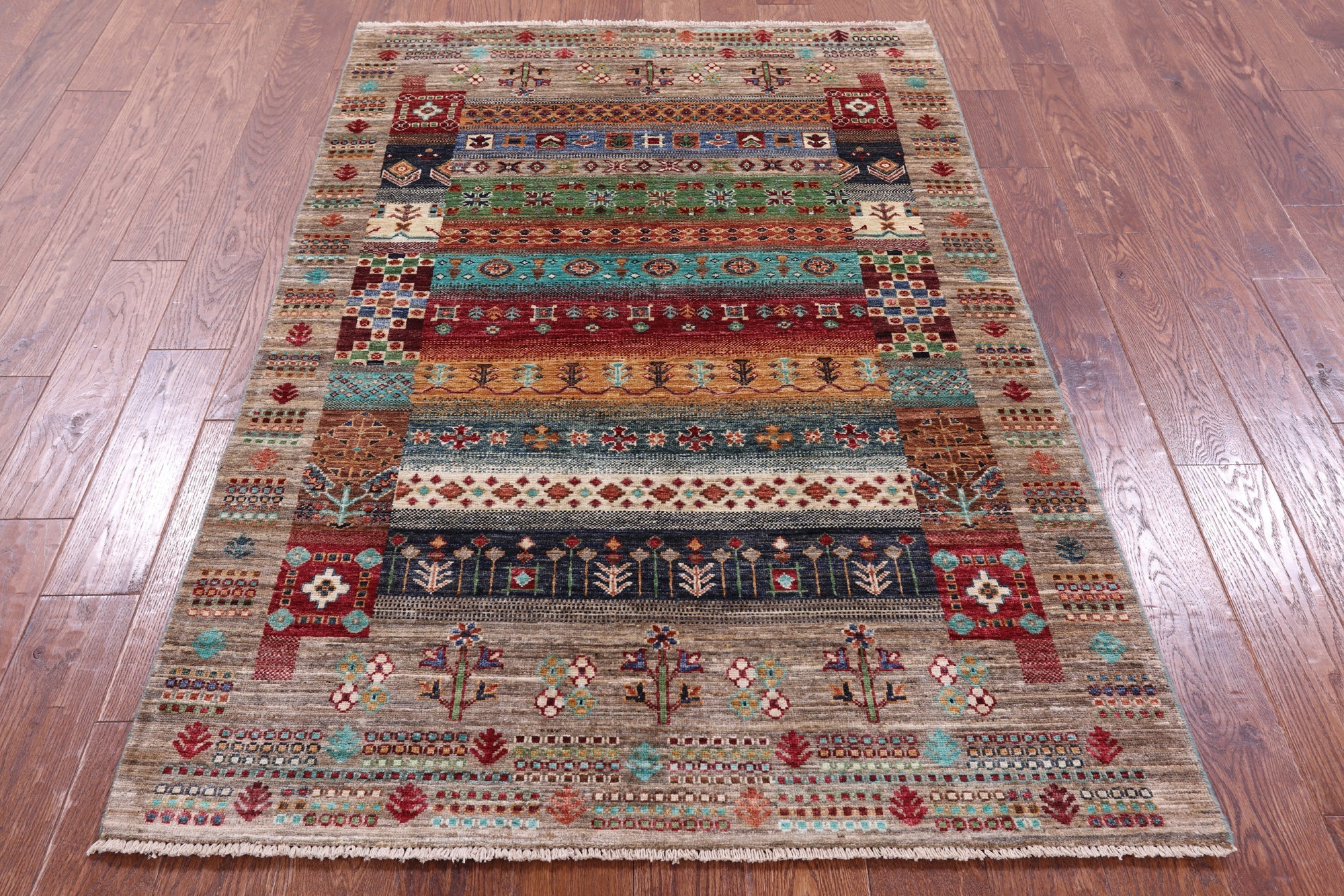 4' 0" X 6' 1" Hand Knotted Persian Gabbeh Tribal Rug - Q20444