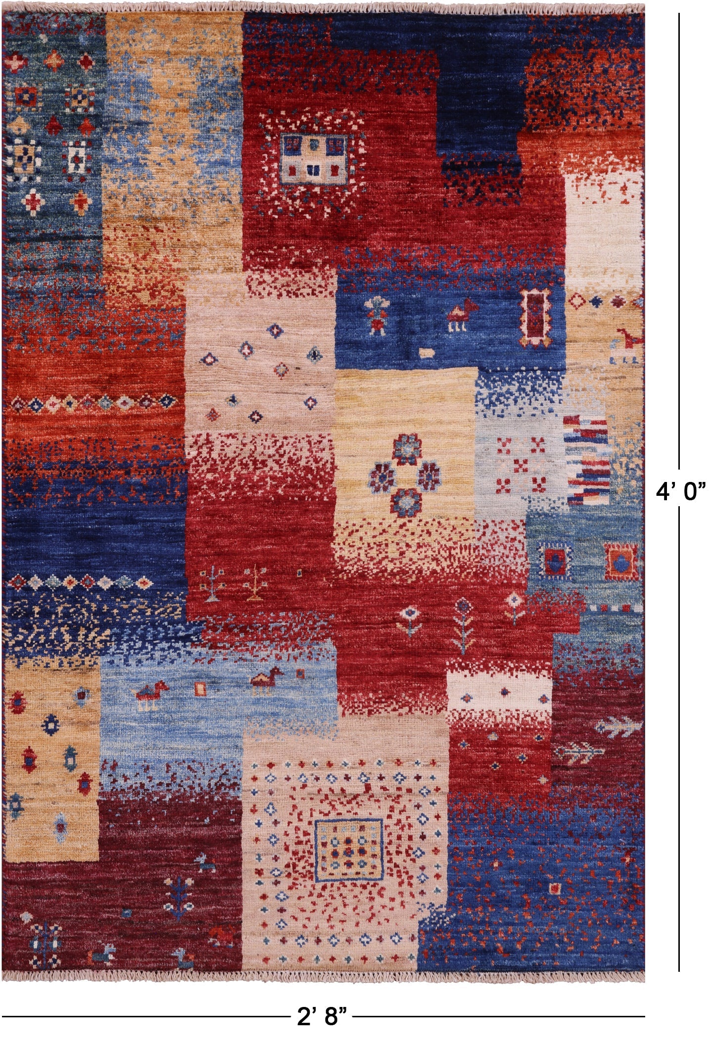 2' 8" X 4' 0" Hand Knotted Persian Gabbeh Tribal Wool Rug - Q20528