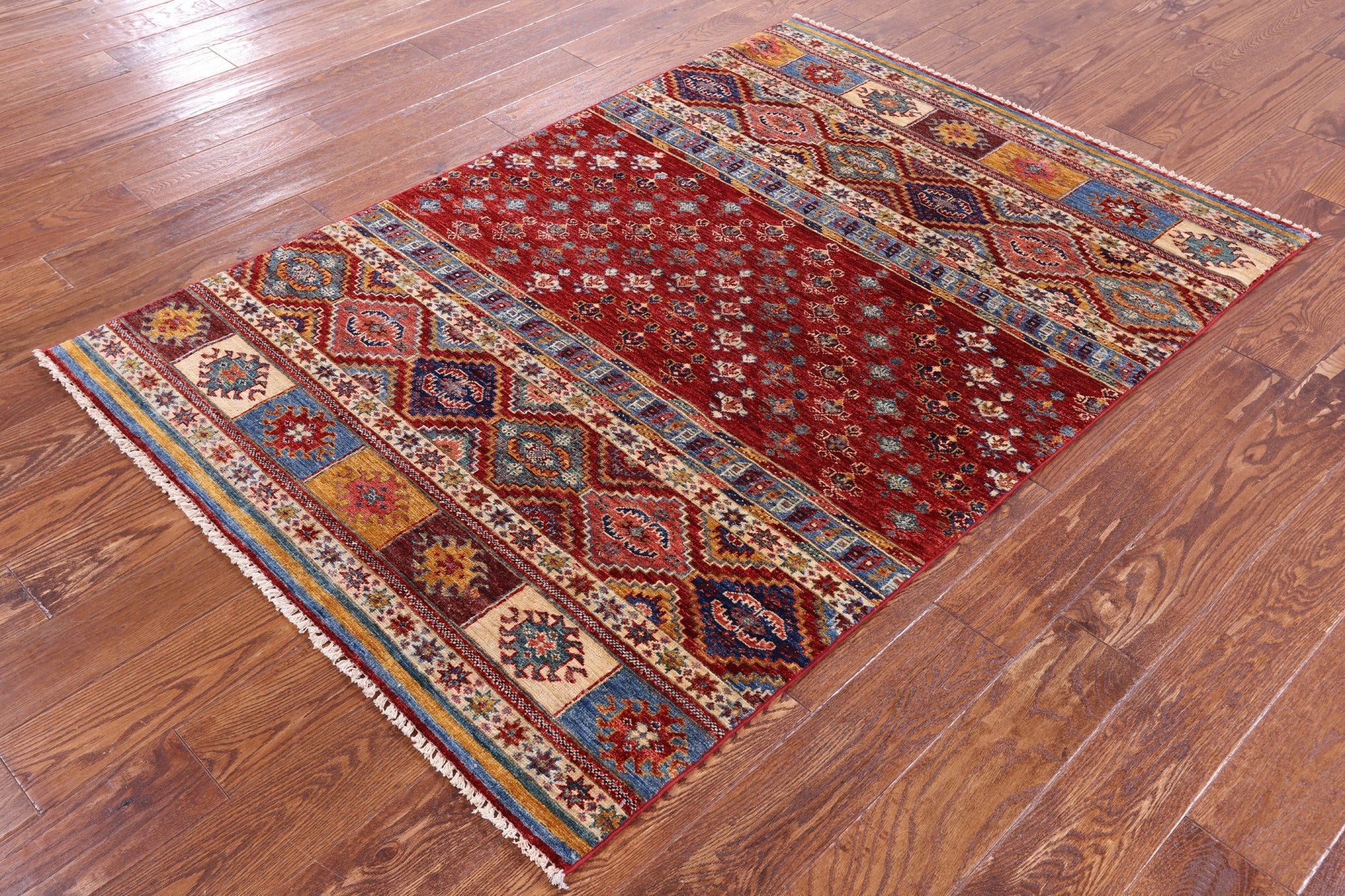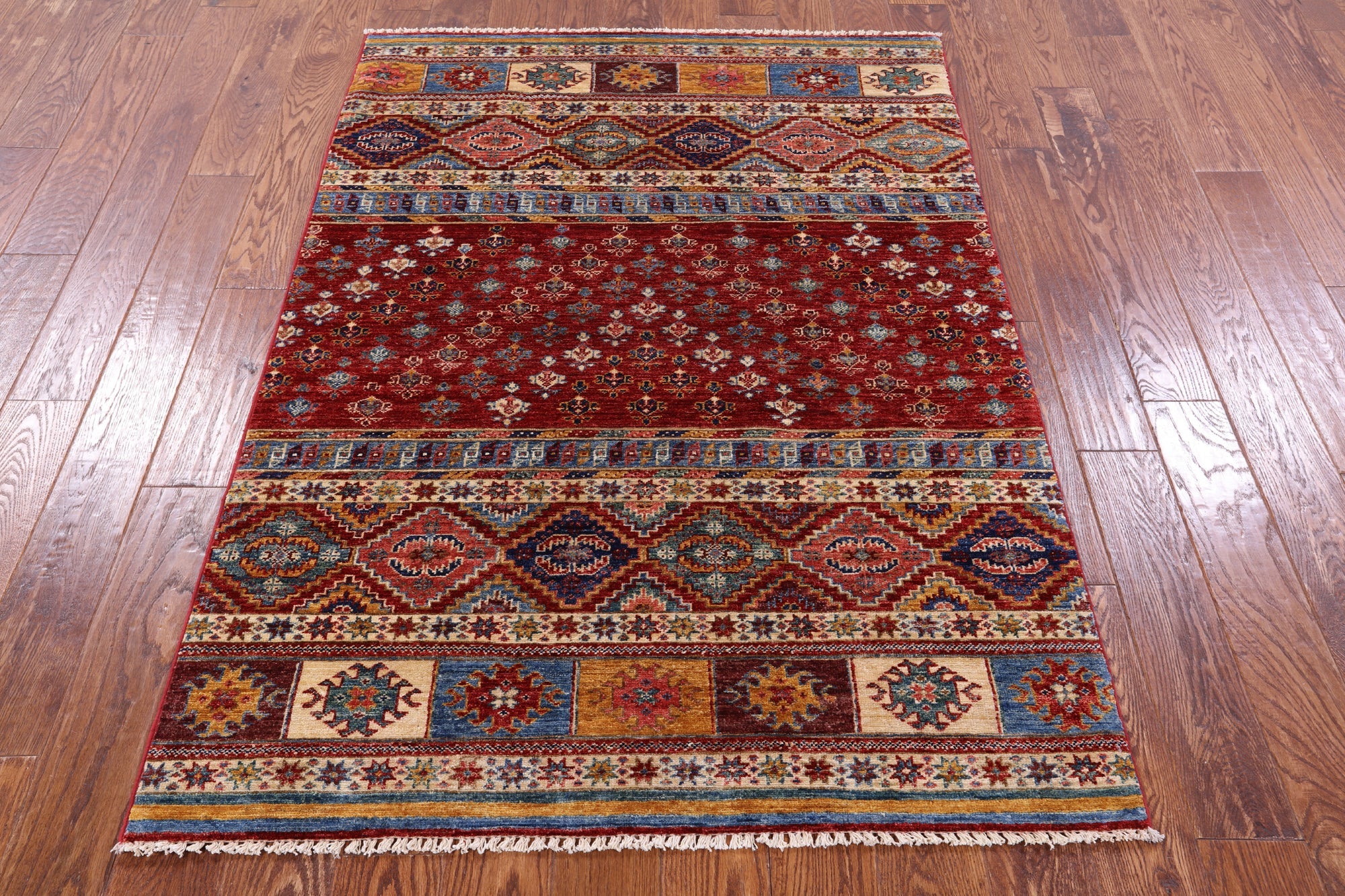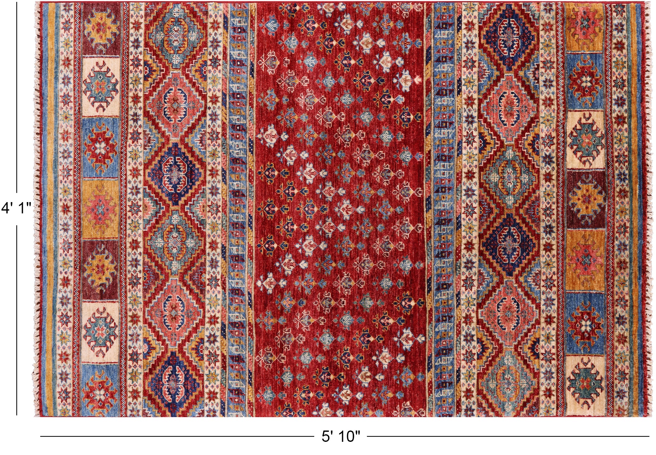 4' 1" X 5' 10" Hand-Knotted Super Kazak Khorjin Wool Rug - Q10778