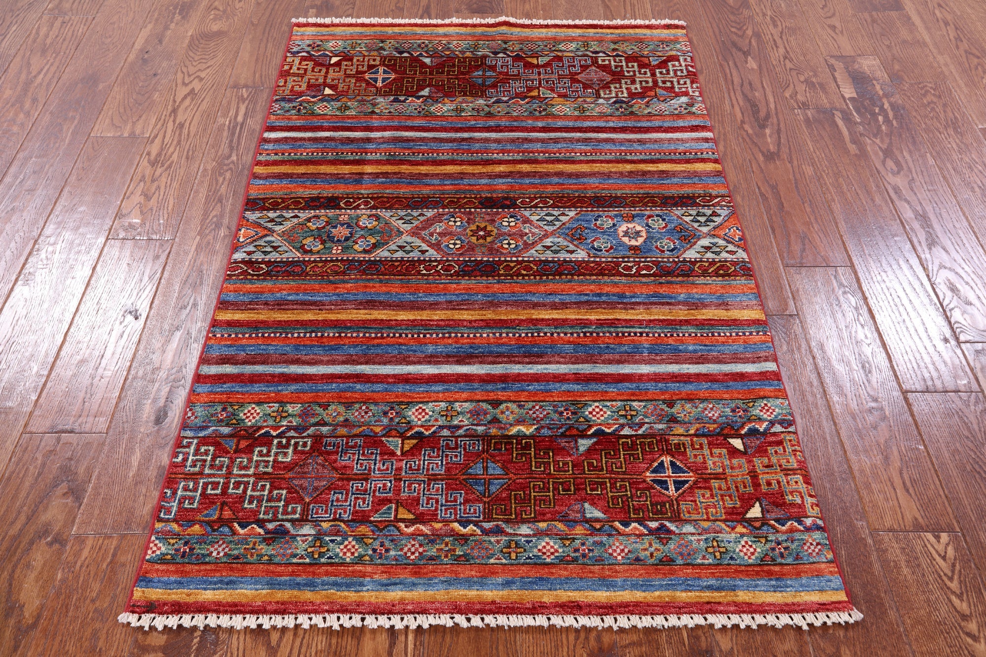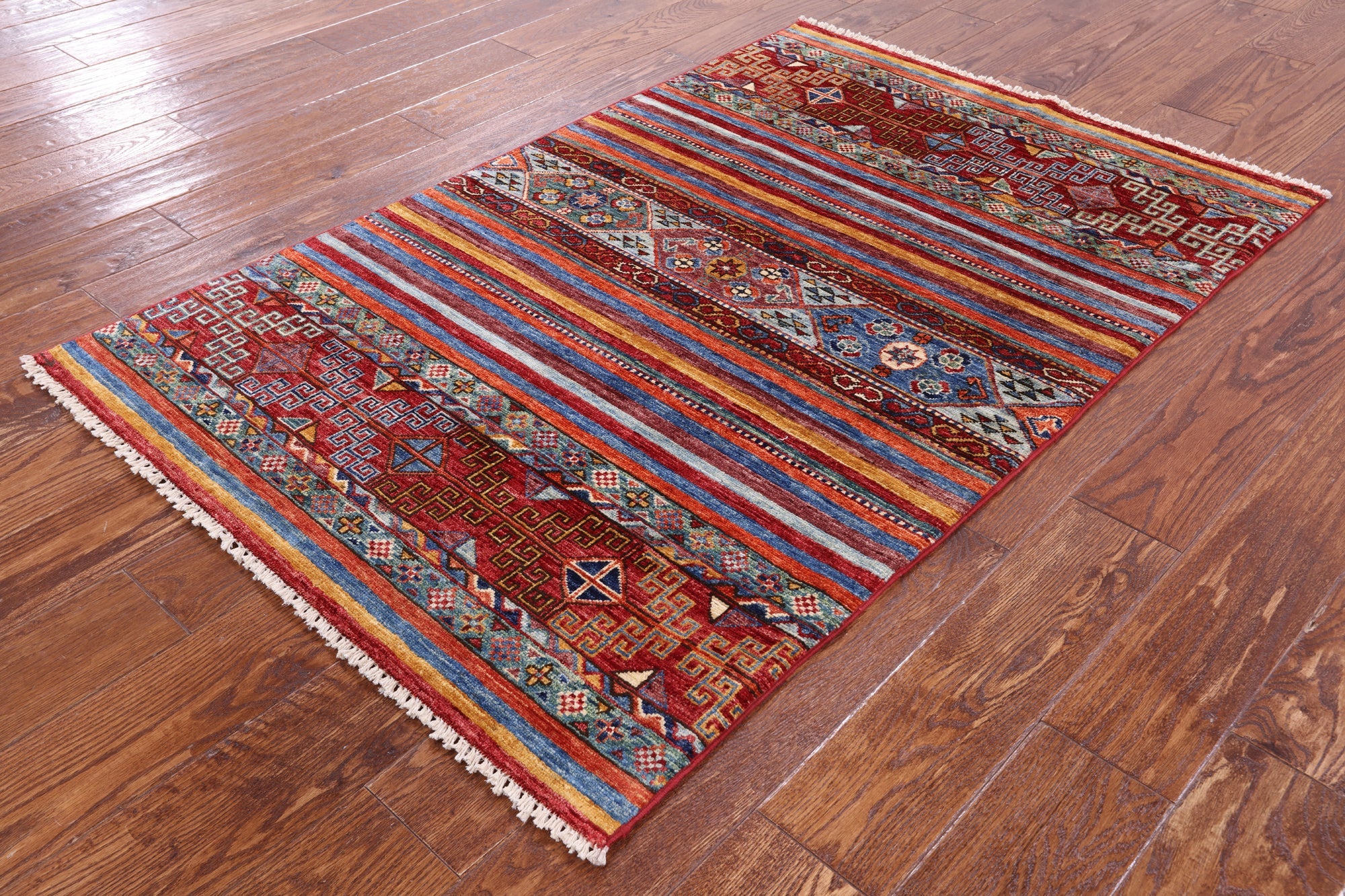3' 2" X 4' 11" Hand Knotted Super Kazak Khorjin Wool Rug - Q11112