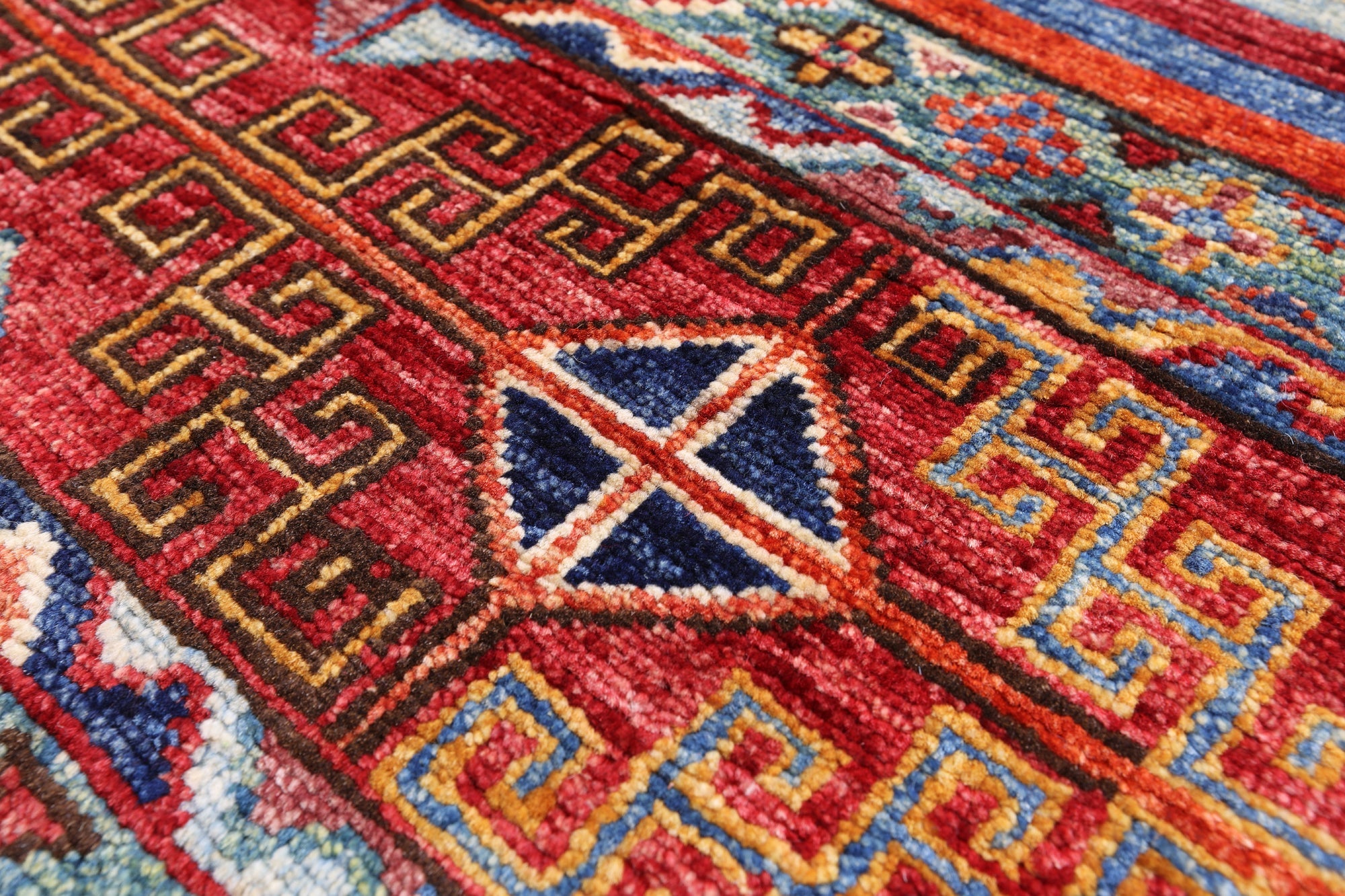 Super Kazak rugs were woven in the south of Caucasus and are very regional in their designs. Super Kazak rugs are very traditional in look and the patterns can vary from geometric shapes, tribal designs like people and animals, and symbolic medallions. They are beautifully intricate and heavy in design. These rugs come in varieties of rich, warm, jewel tones that can liven up any space.