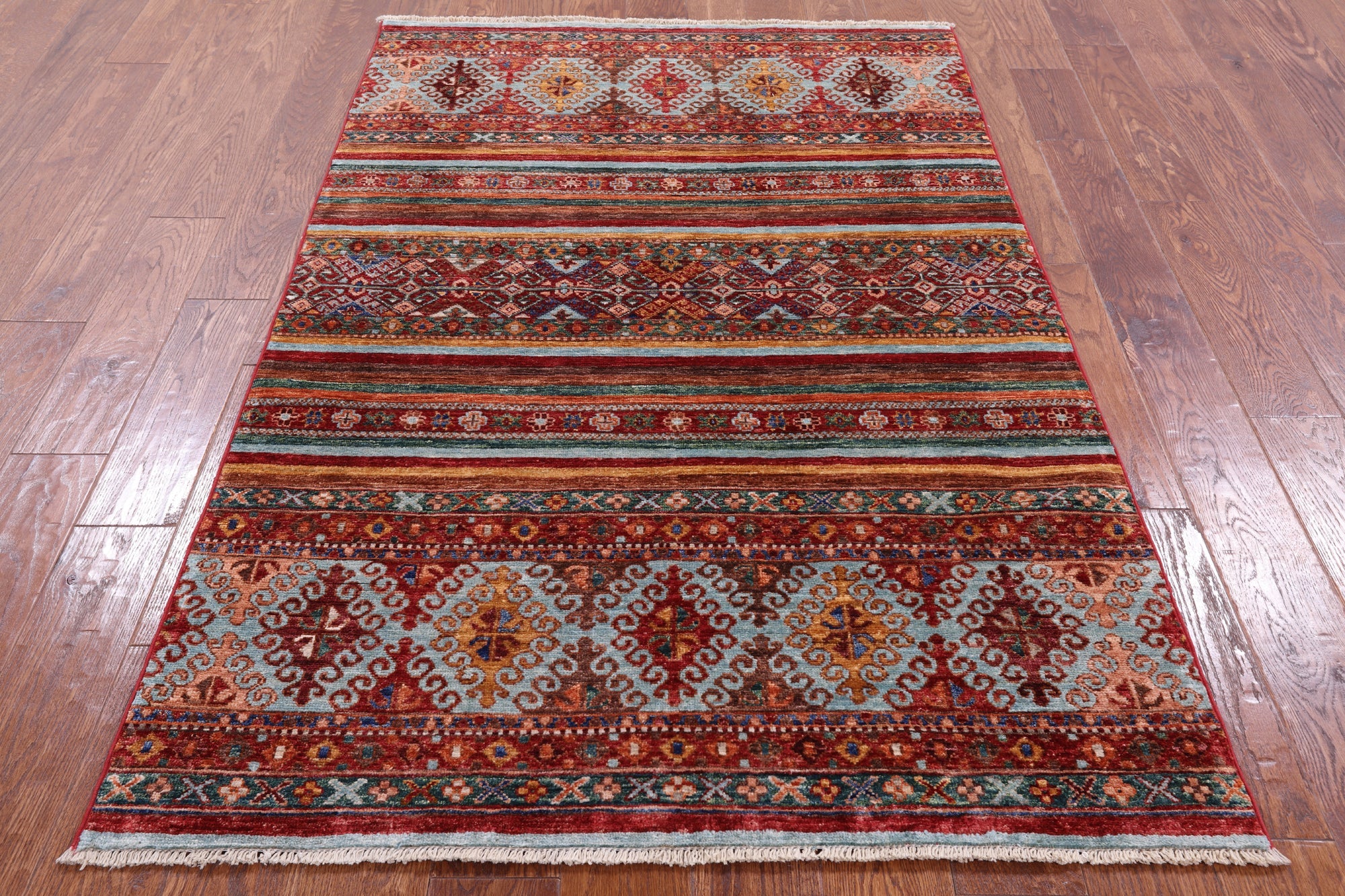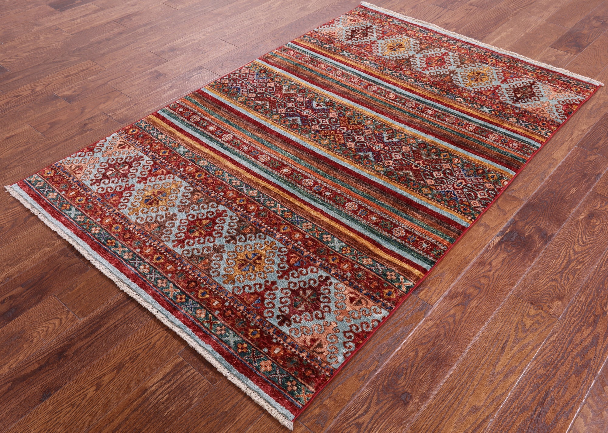 3' 10" X 6' 1" Handmade Khorjin Super Kazak Wool Rug - Q5243 is backordered and will ship as soon as it is back in stock.