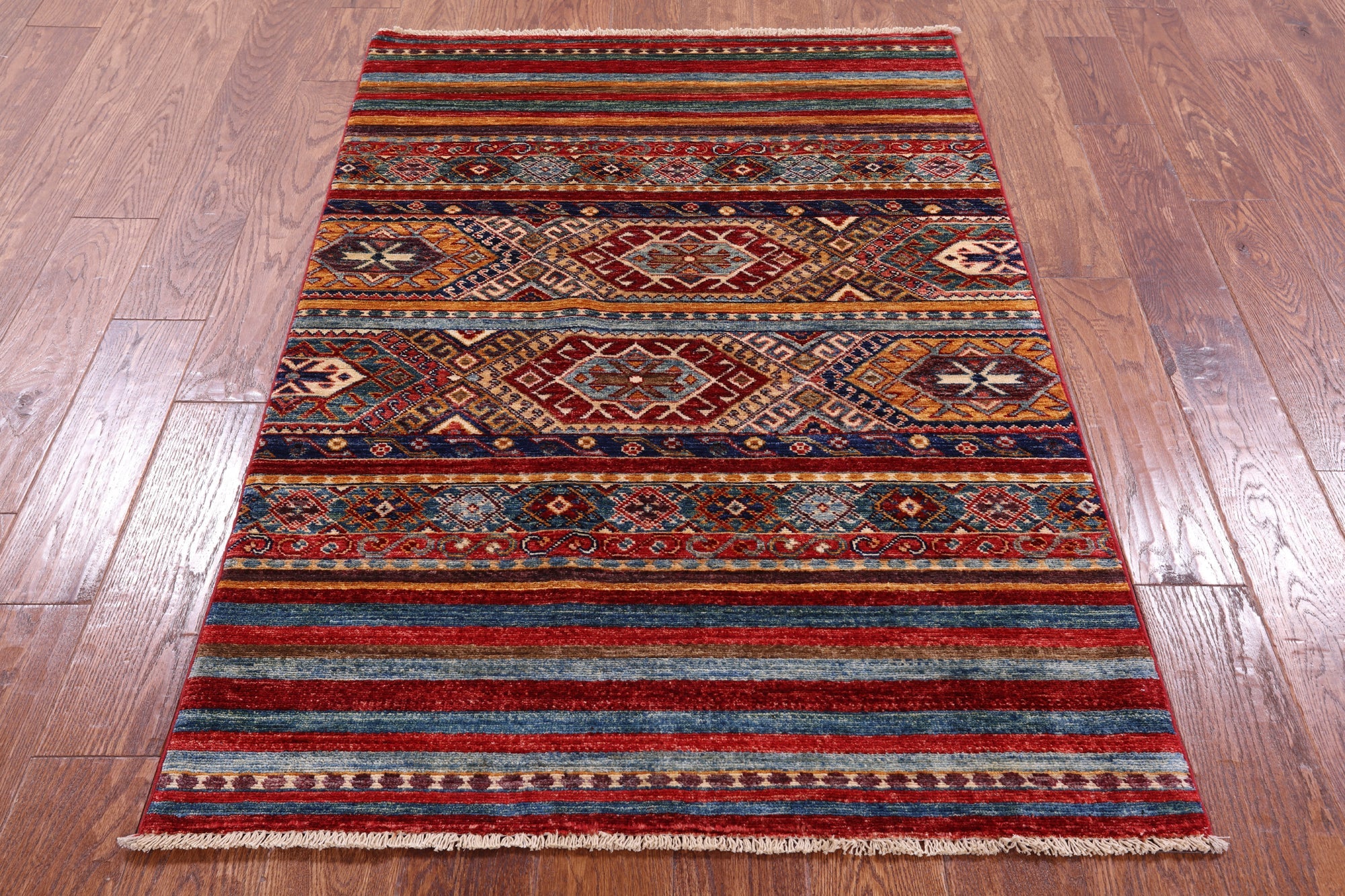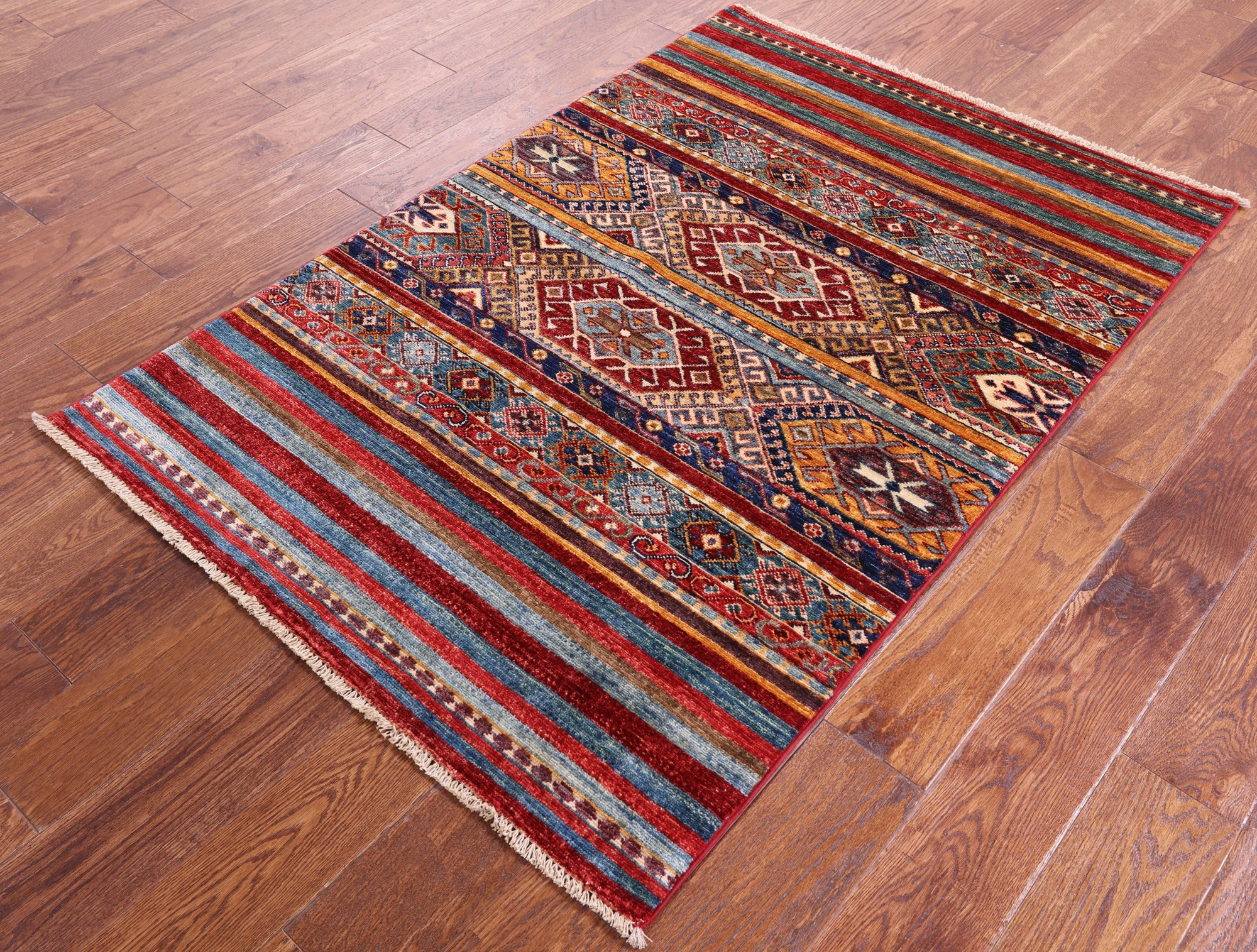Handmade Super Kazak Khorjin Wool Rug 3' 4" X 4' 11" - Q10993