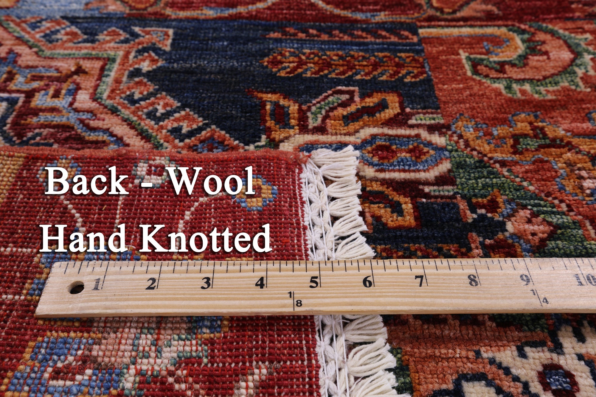 Super Kazak rugs were woven in the south of Caucasus and are very regional in their designs. Super Kazak rugs are very traditional in look and the patterns can vary from geometric shapes, tribal designs like people and animals, and symbolic medallions. They are beautifully intricate and heavy in design. These rugs come in varieties of rich, warm, jewel tones that can liven up any space.