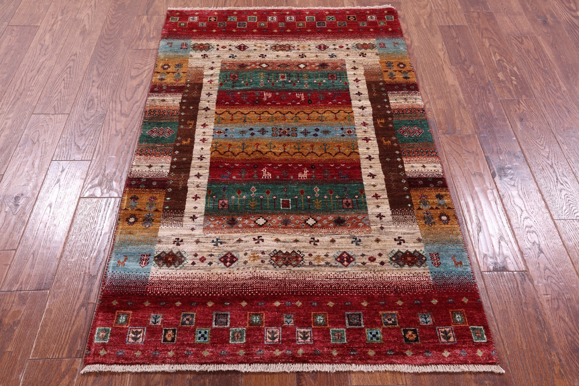 Gabbeh rugs are nothing short of simplistic and tribal, with designs consisting of primarily geometric shapes, animals, and plants. All done in a simplified way and based on the nomadic observation. Commonly brightly colored, these rugs are fun and beautiful and will add a warm touch to any home.