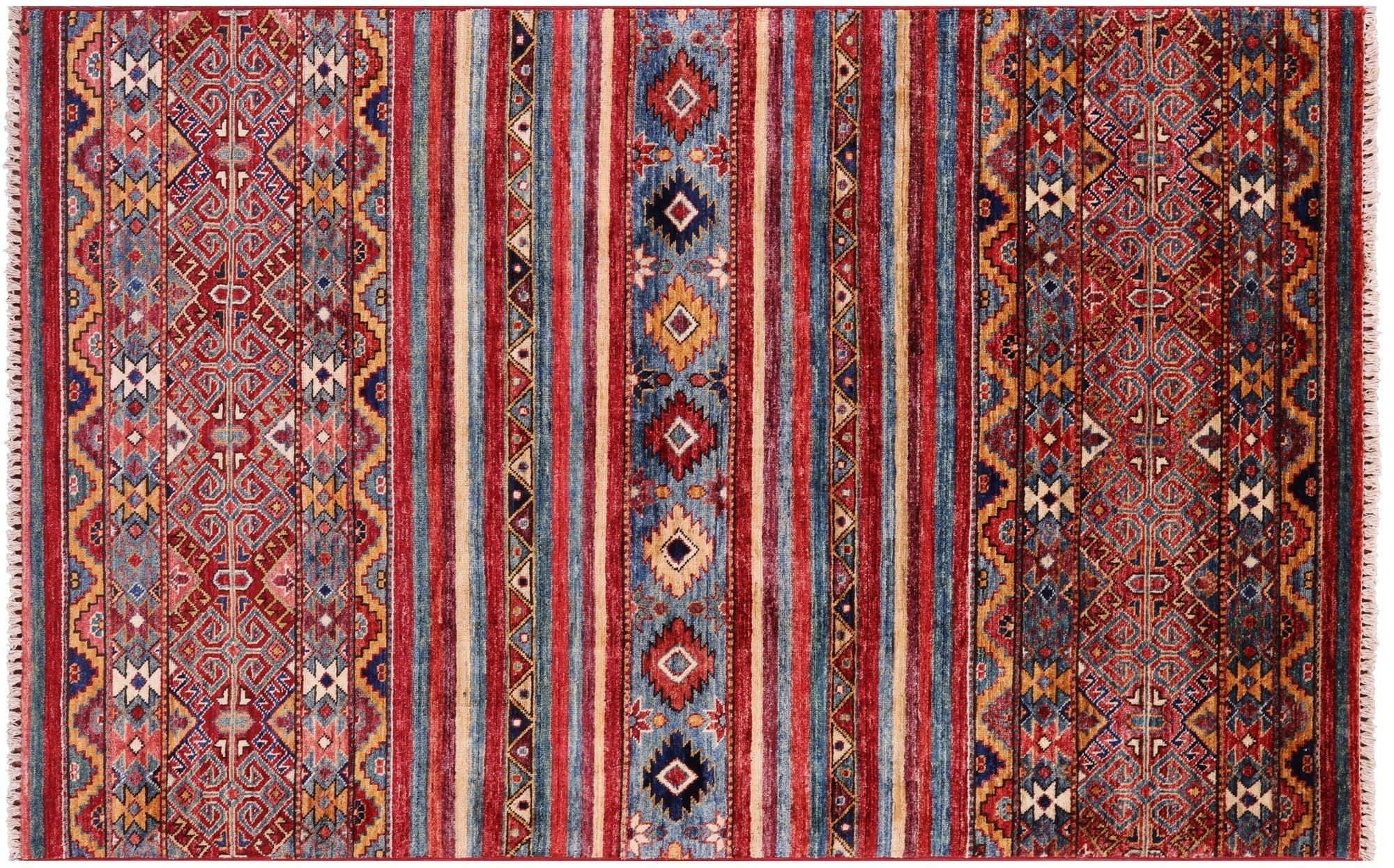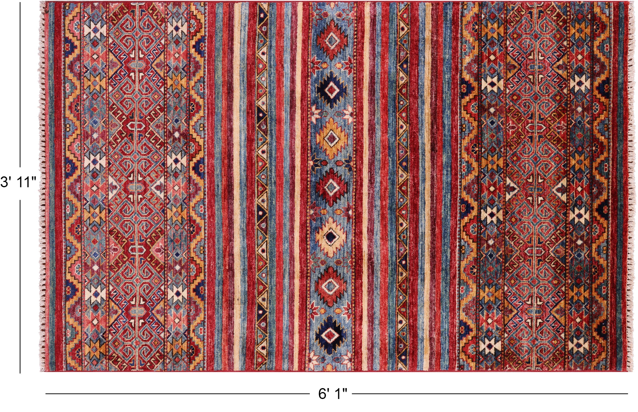 3' 11" X 6' 1" Khorjin Super Kazak Handmade Wool Rug - Q10772