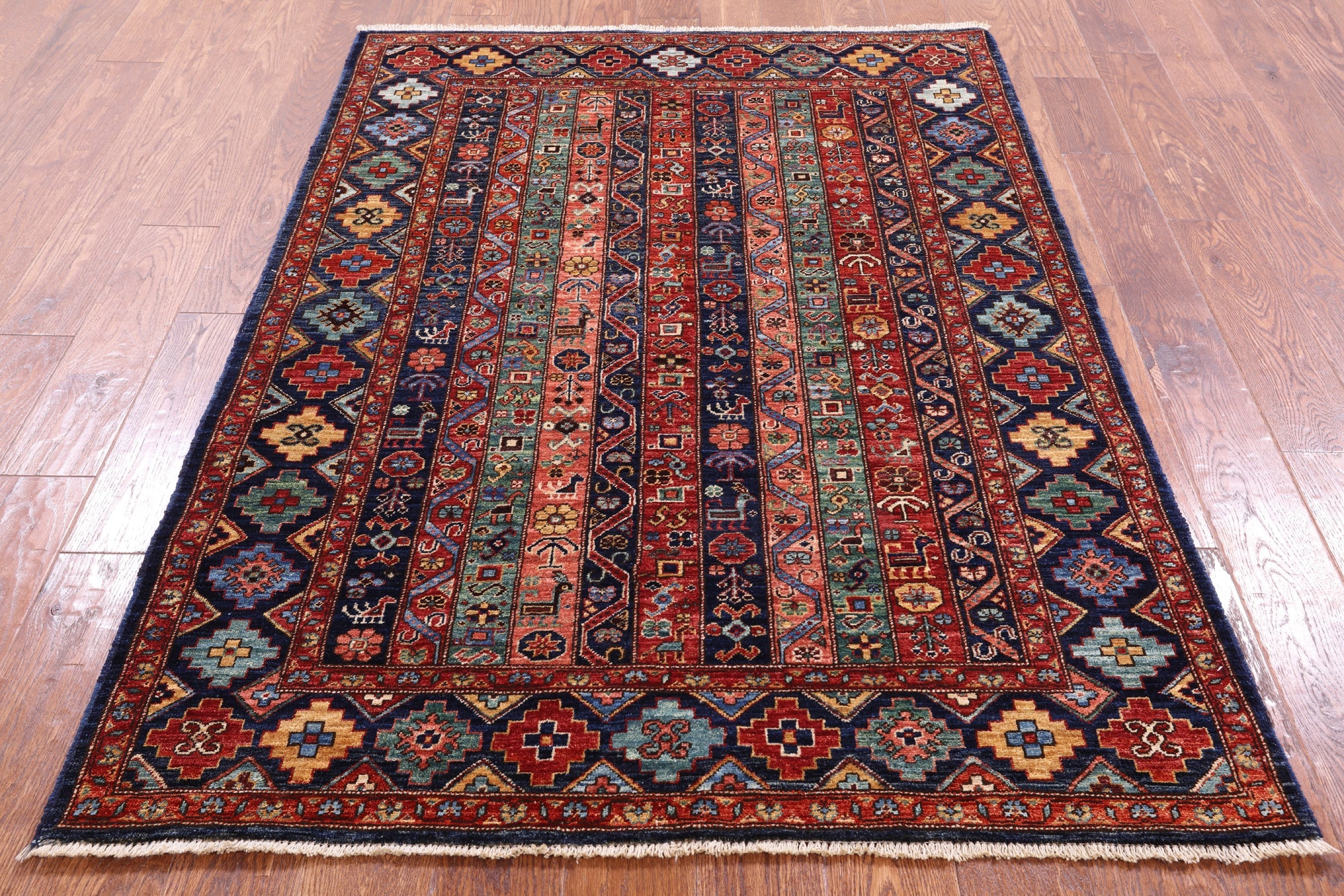 Persian Gabbeh Shall Hand Knotted Rug 4' 2" X 5' 10" - Q4996