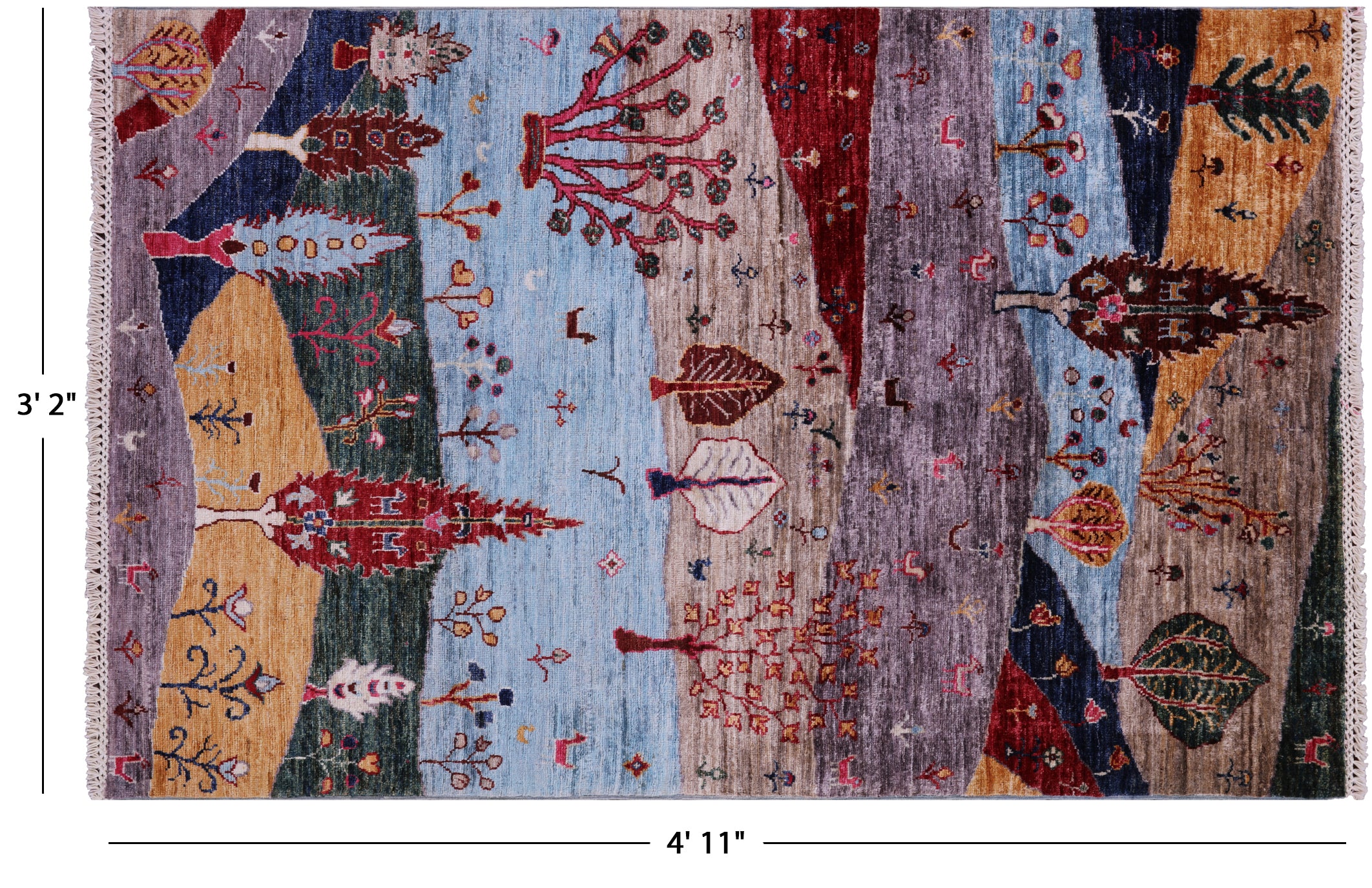 3' 2" X 4' 11" Persian Gabbeh Tribal Handmade Wool Rug - Q14241