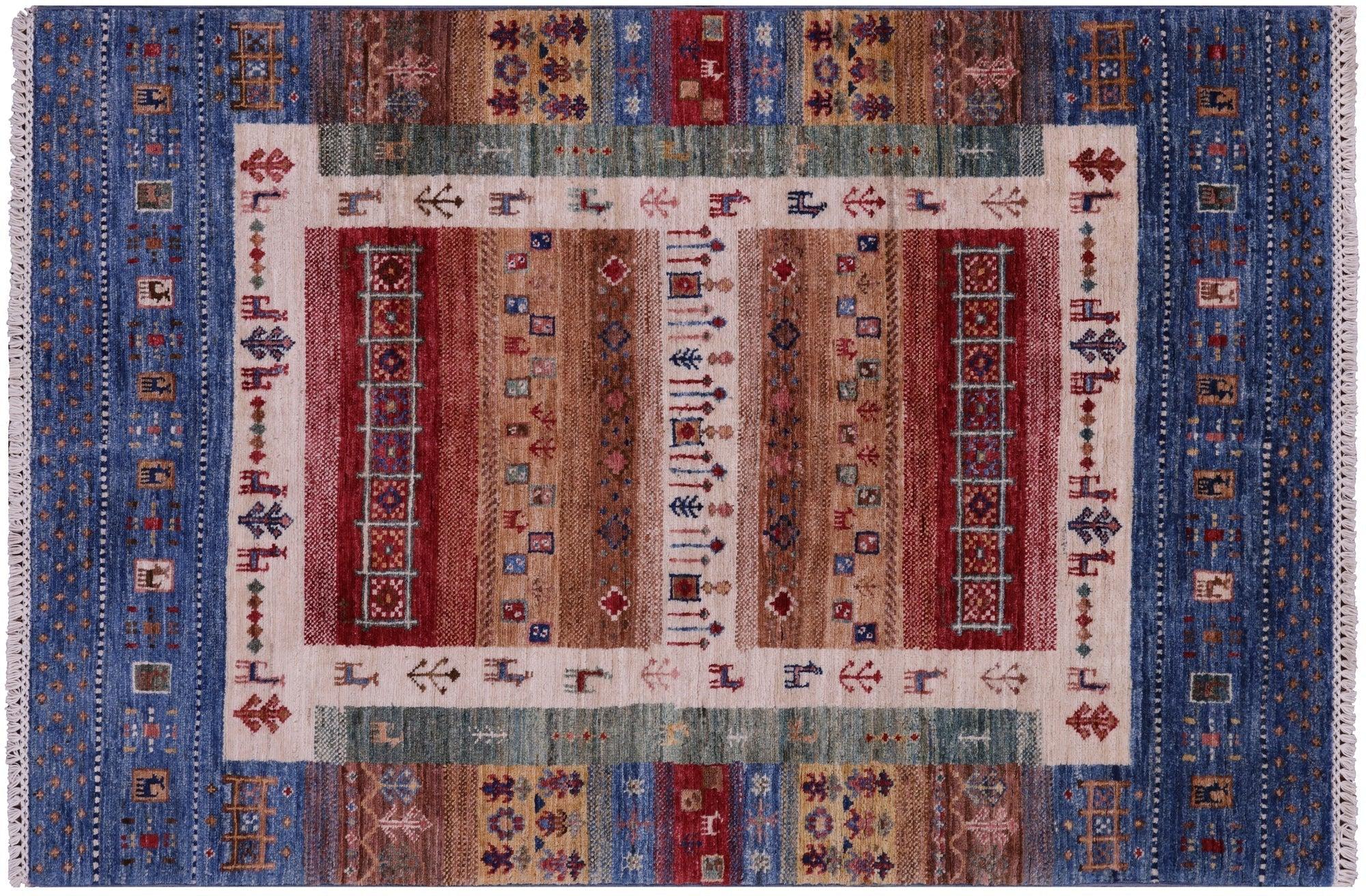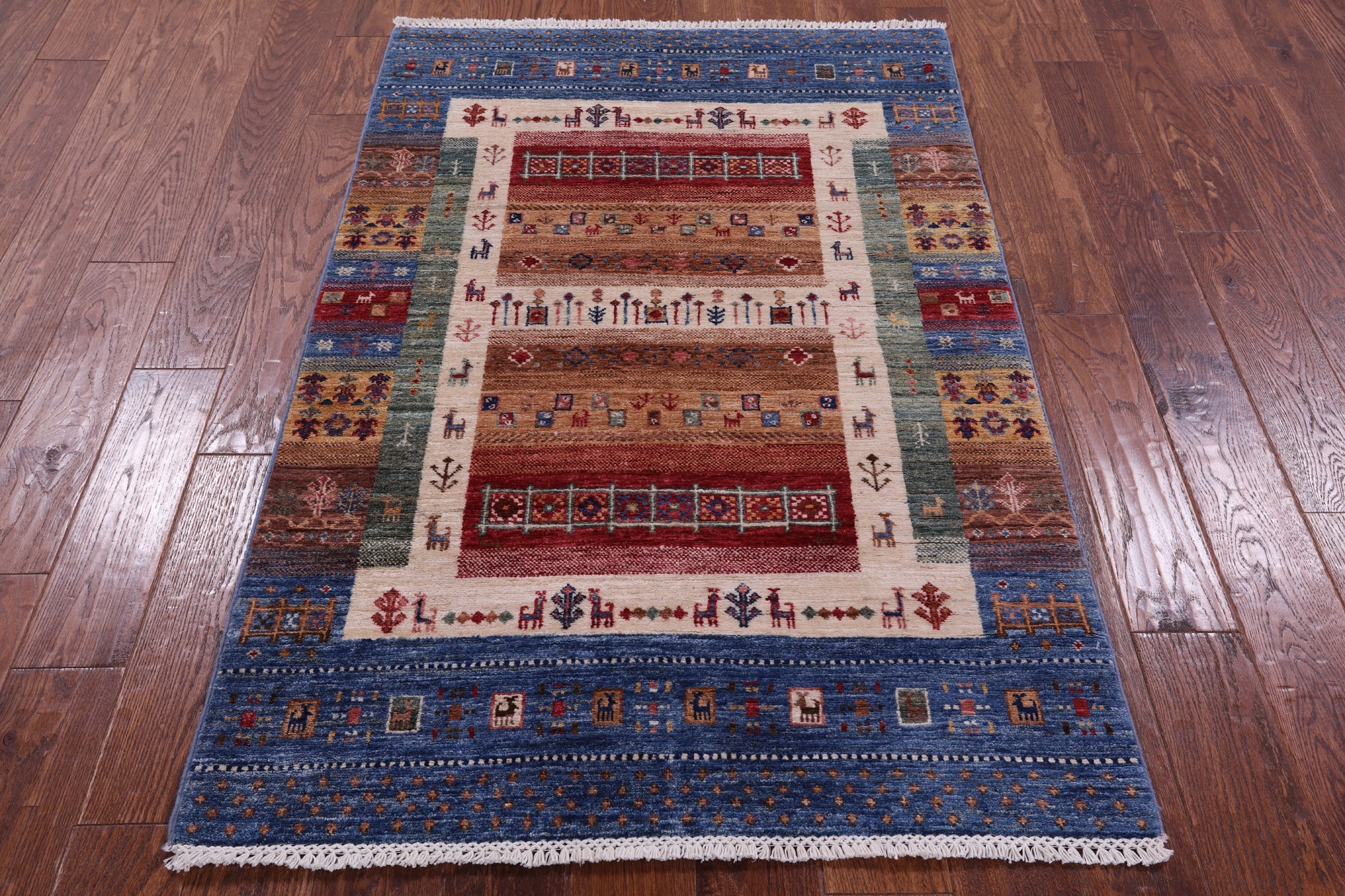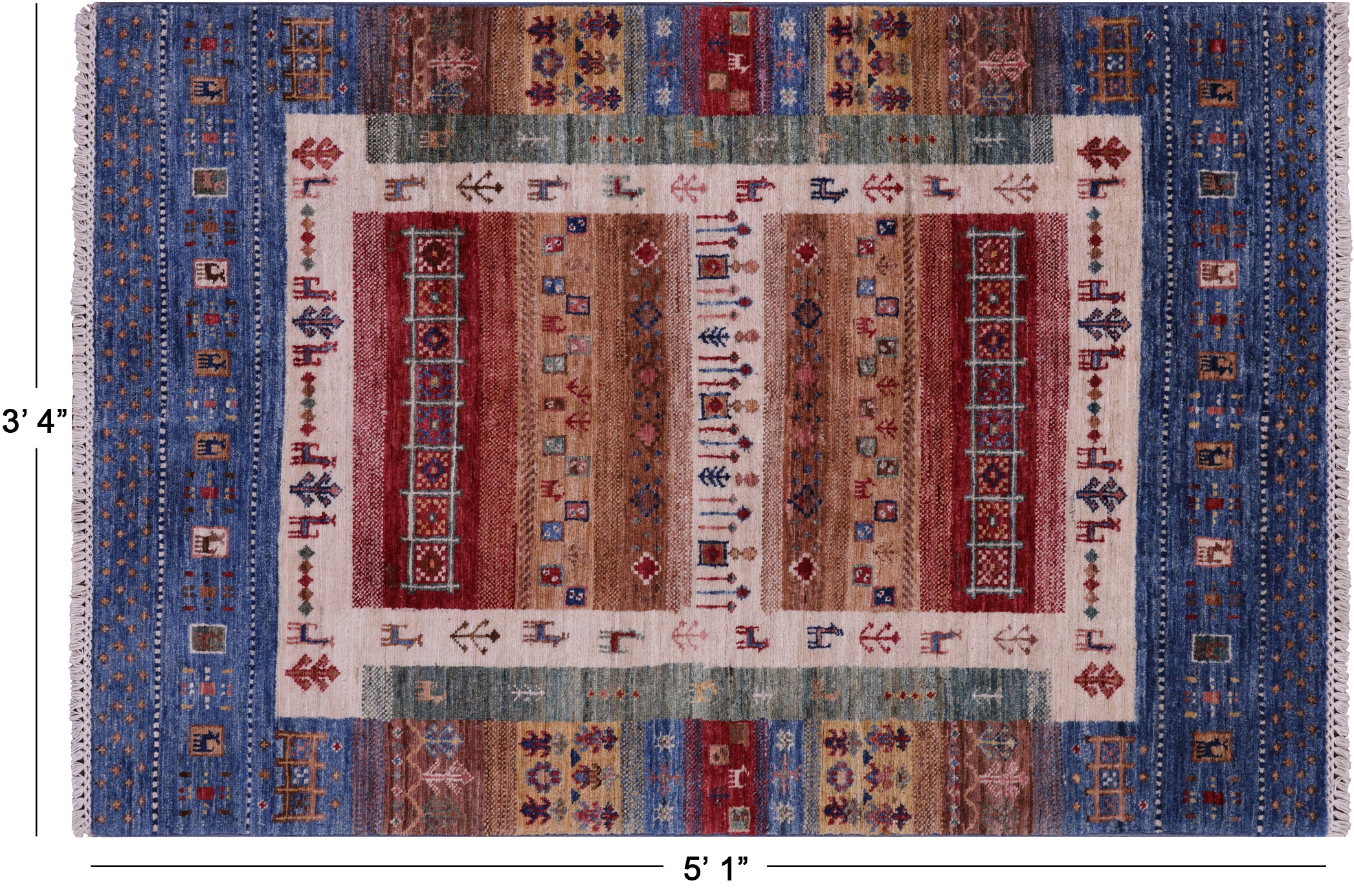 3' 4" X 5' 1" Persian Gabbeh Tribal Handmade Wool Rug - Q18592