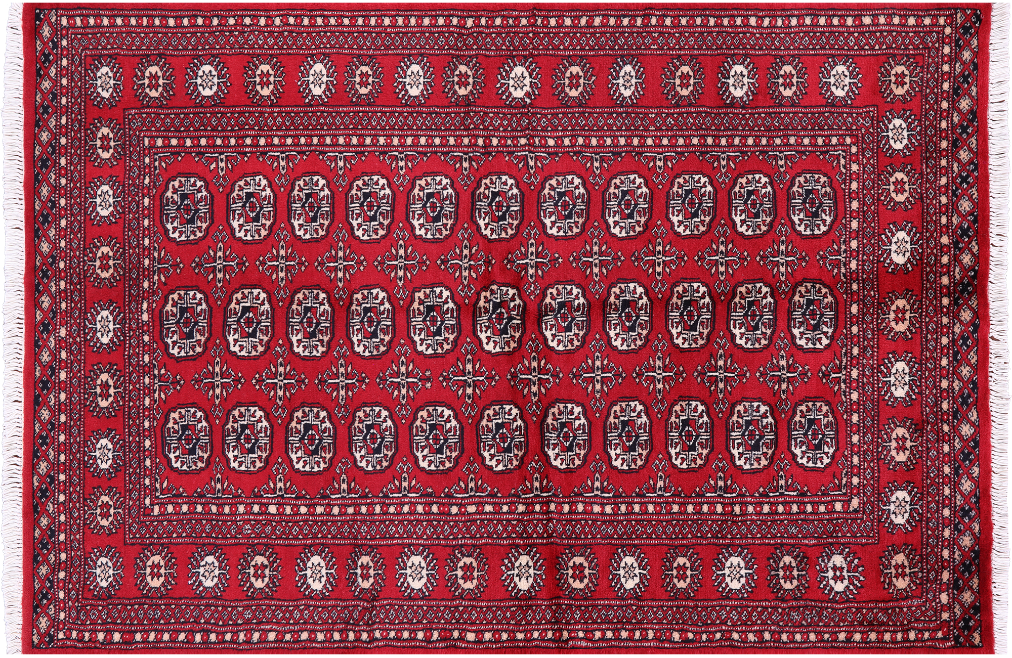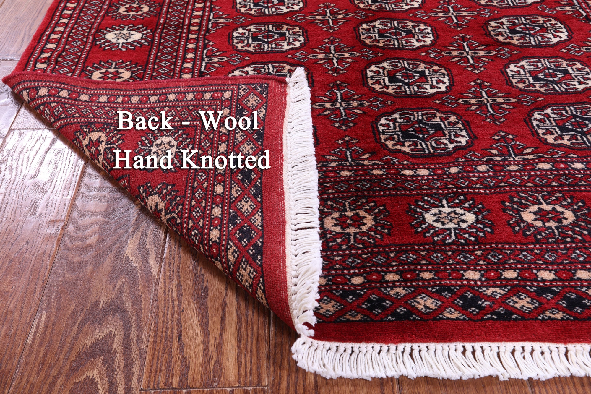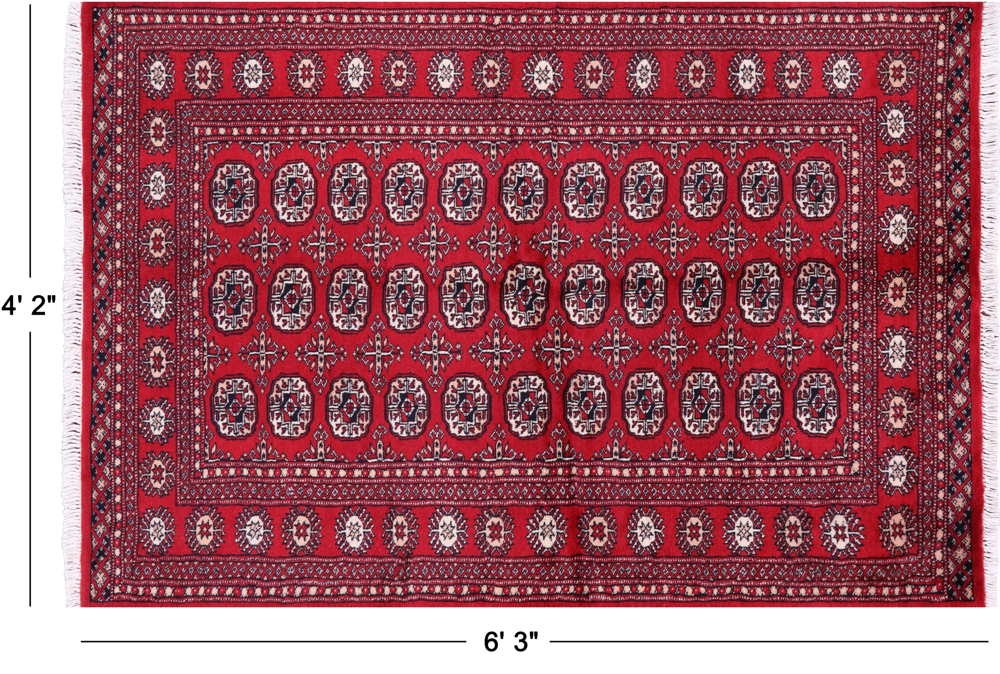 Red 4' 2" X 6' 3" Silky Bokhara Hand-Knotted Wool Rug - Q23800