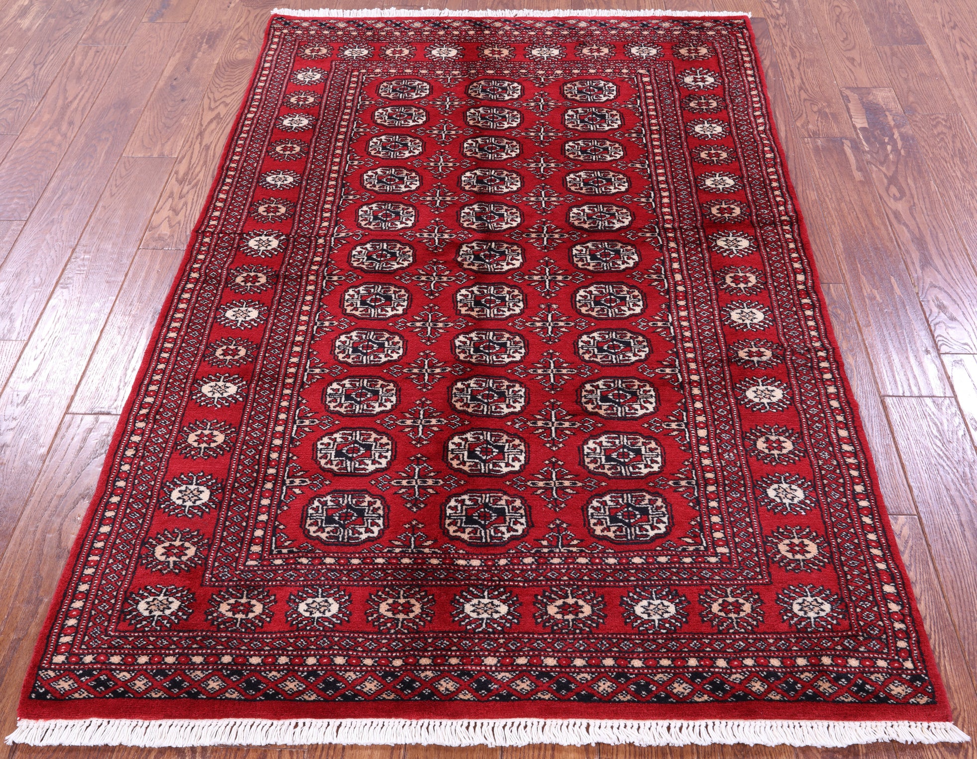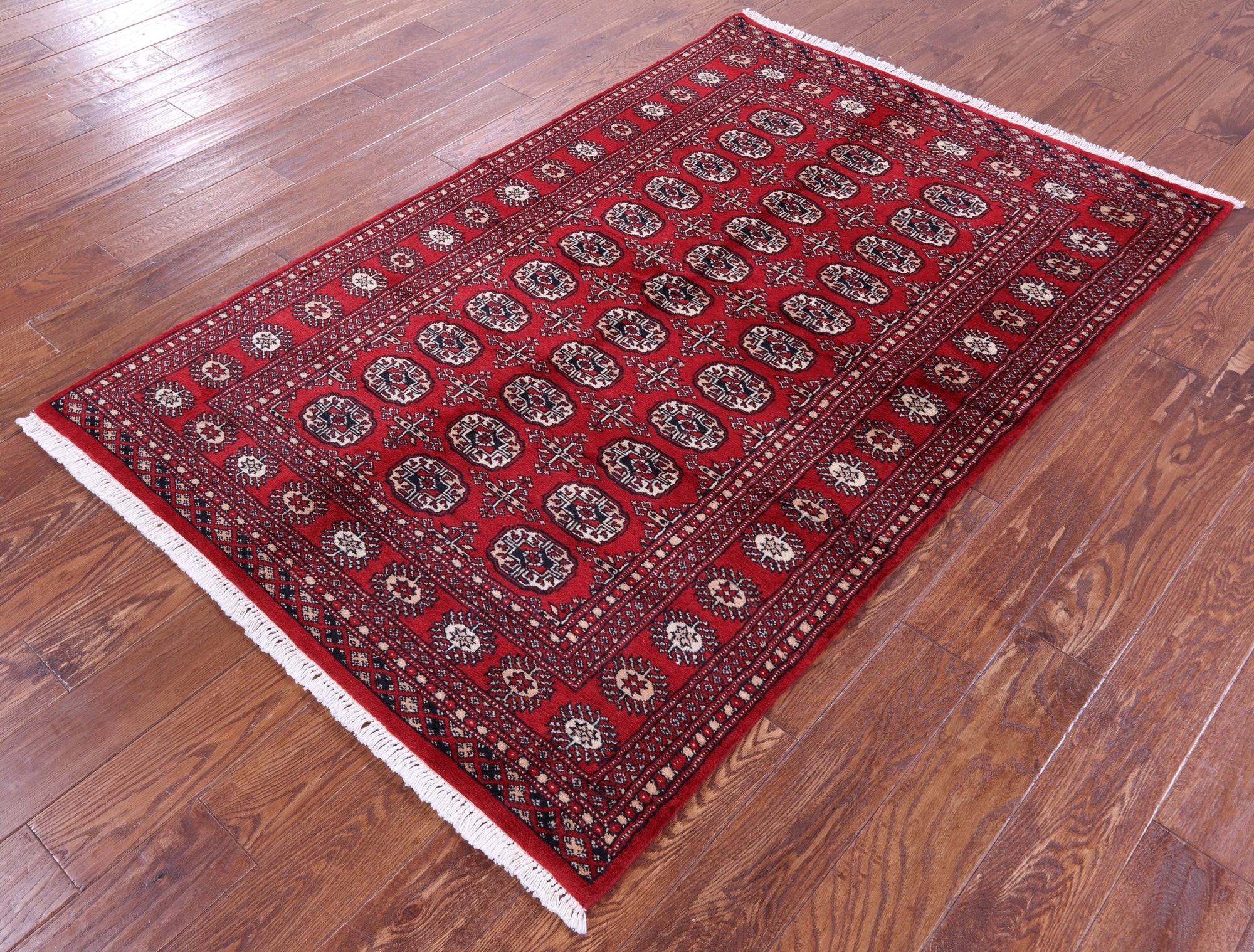 Bokharas are a type of handmade Pakistani rug; also known as Bukharas or Bokaras. Most are based on Turkmen prototypes called Tekkes. Pakistani Bokhara rugs are among the most popular handmade rugs in the world. They are popular for their soft, luxurious feel, heavy pile, attractive colors and appearance that consist of repeating octagonal figures called guls, usually on fields of burgundy red, gray blue, or sometimes green.