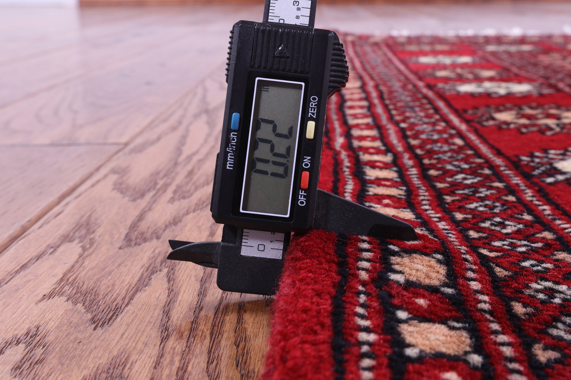 Red 4' 2" X 6' 3" Silky Bokhara Hand-Knotted Wool Rug - Q23800 is backordered and will ship as soon as it is back in stock.