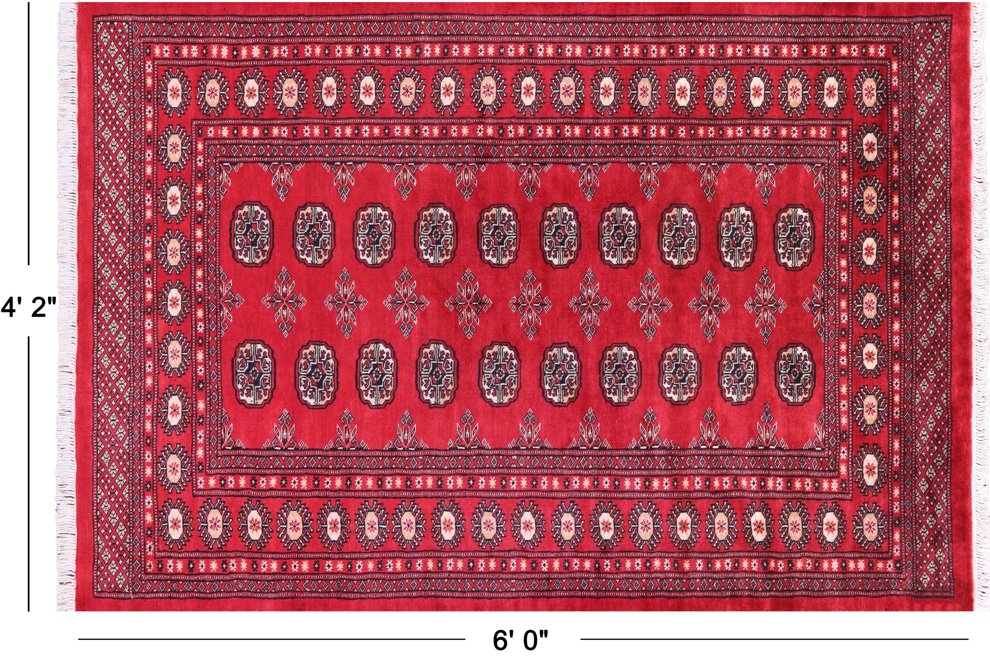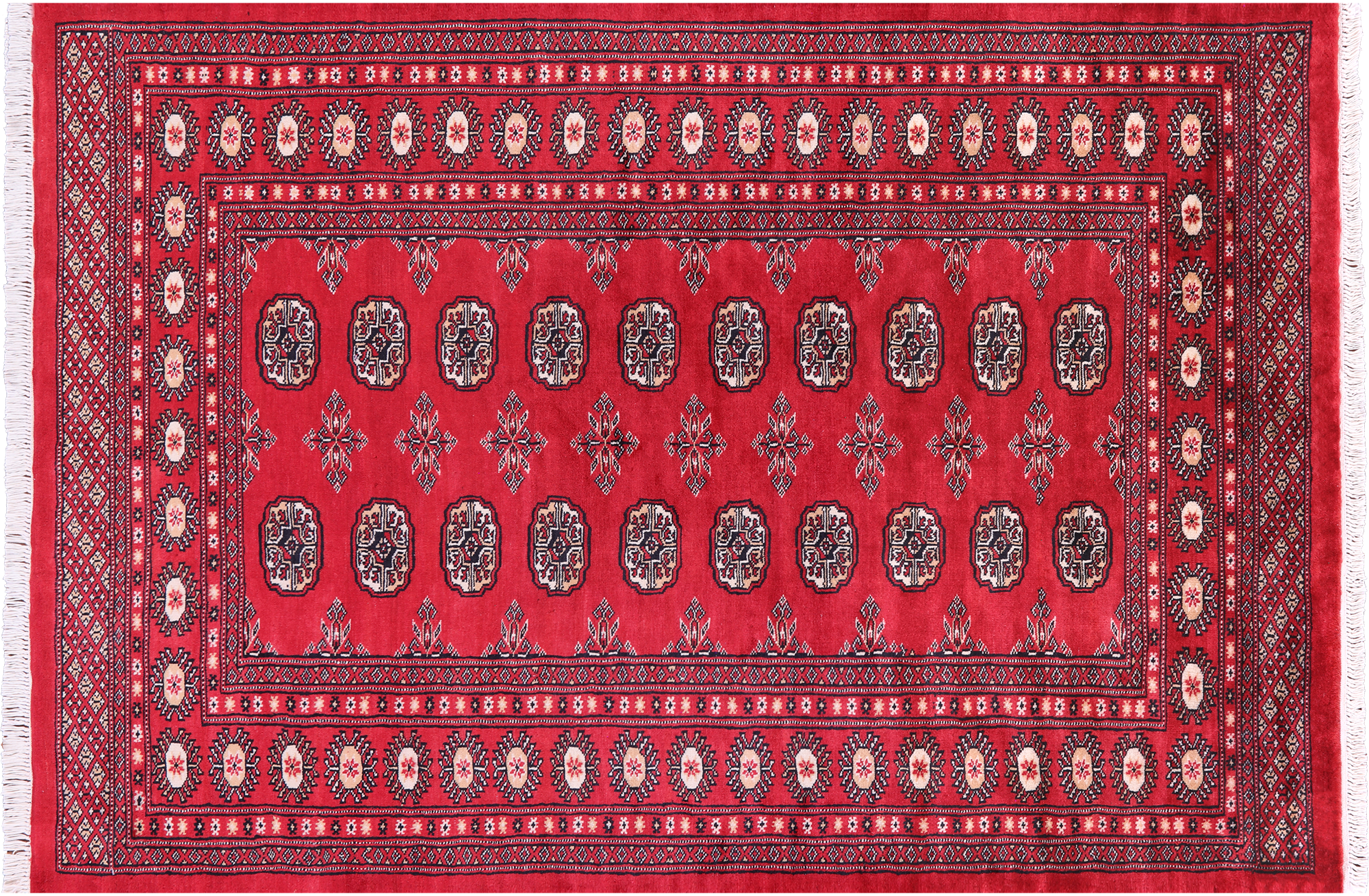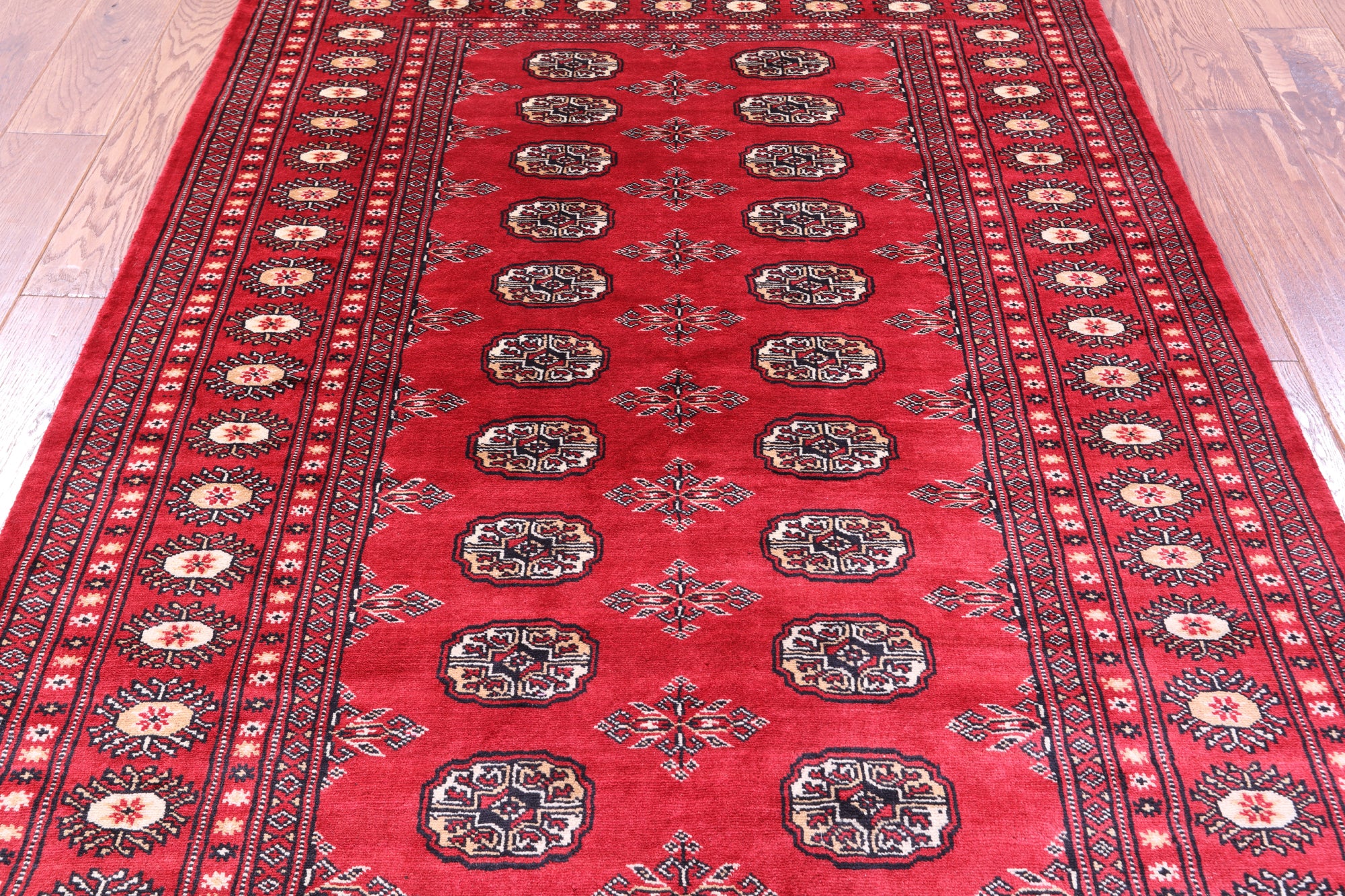 Bokharas are a type of handmade Pakistani rug; also known as Bukharas or Bokaras. Most are based on Turkmen prototypes called Tekkes. Pakistani Bokhara rugs are among the most popular handmade rugs in the world. They are popular for their soft, luxurious feel, heavy pile, attractive colors and appearance that consist of repeating octagonal figures called guls, usually on fields of burgundy red, gray blue, or sometimes green.