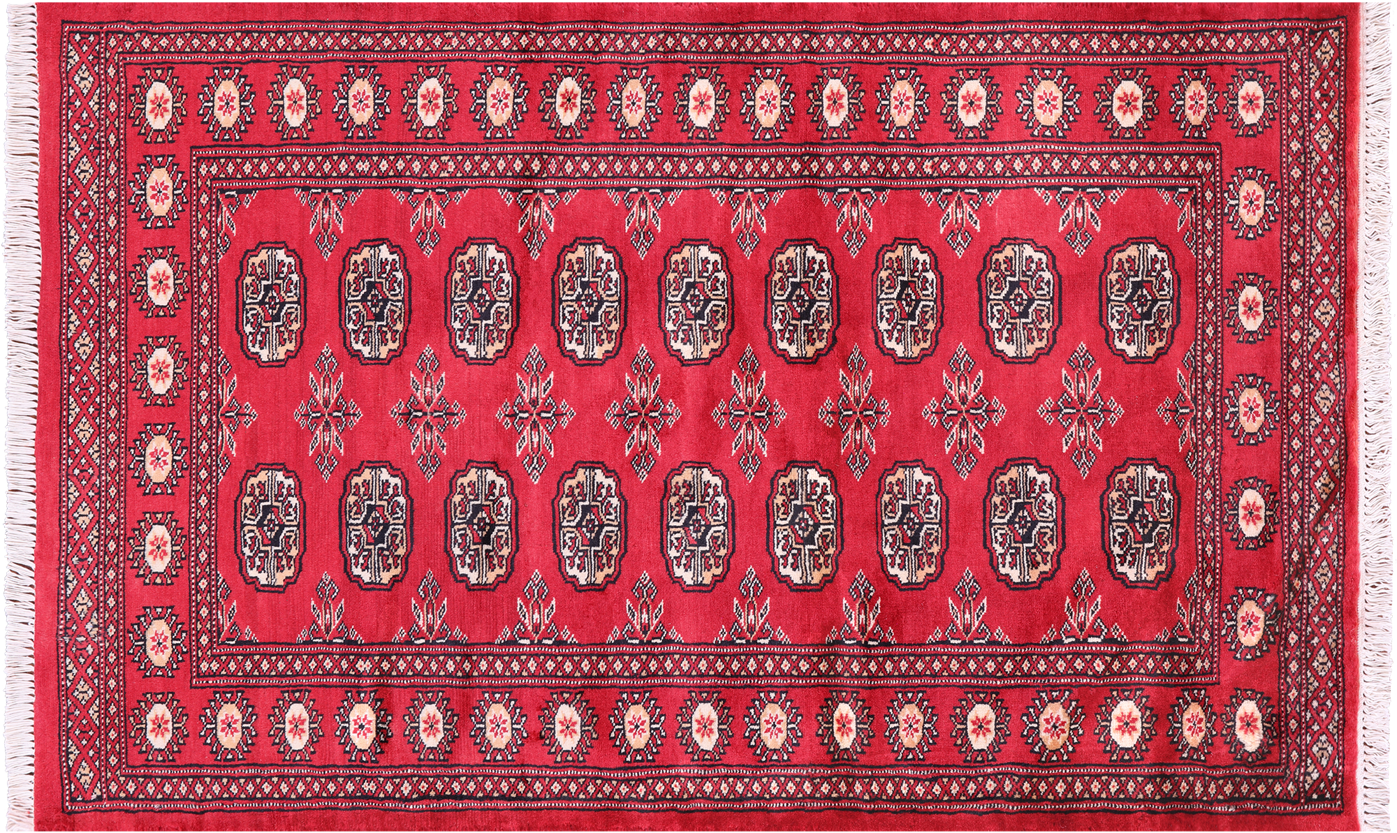 Red 3' 1" X 5' 0" Silky Bokhara Hand-Knotted Wool Rug - Q23827