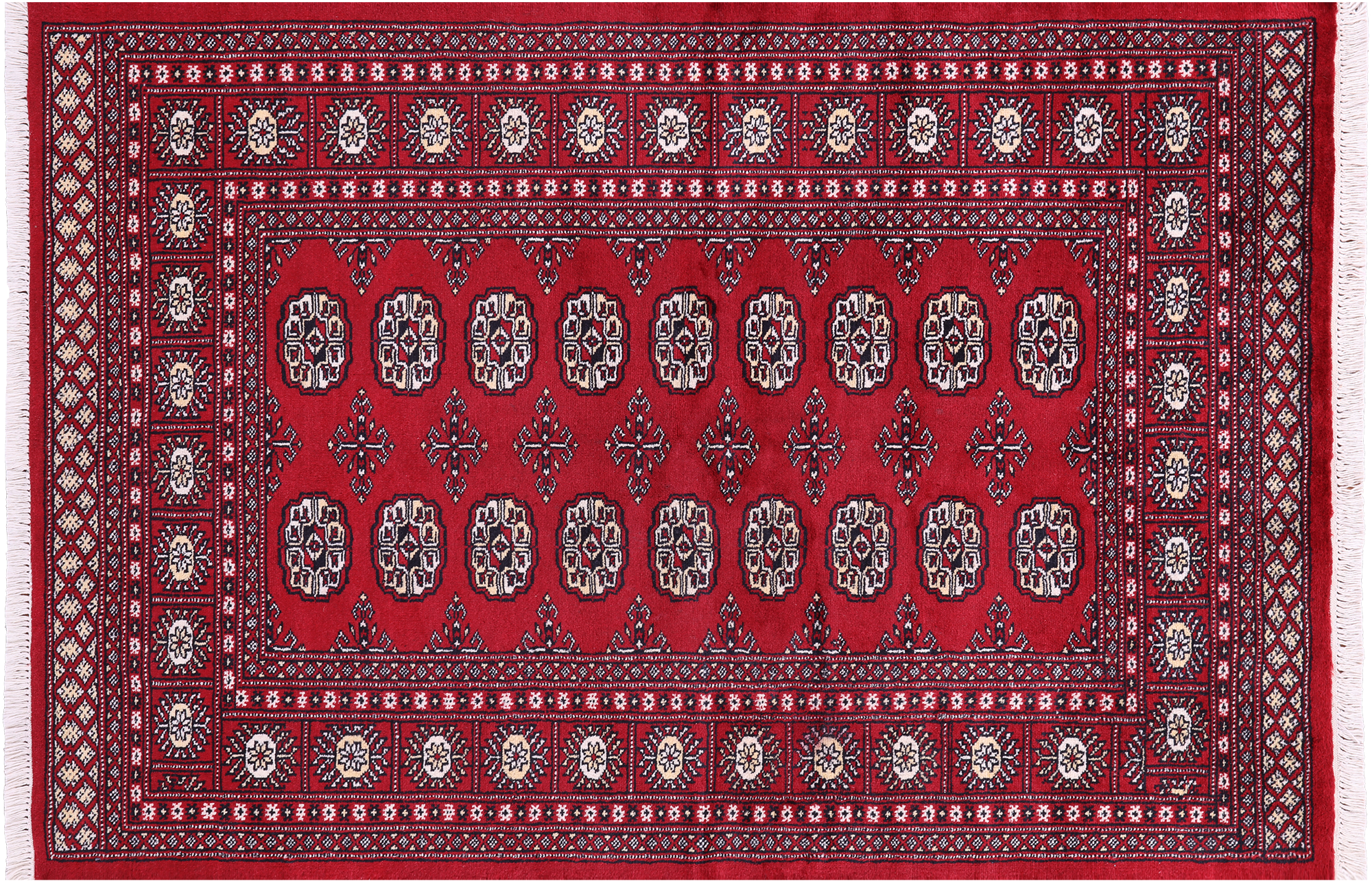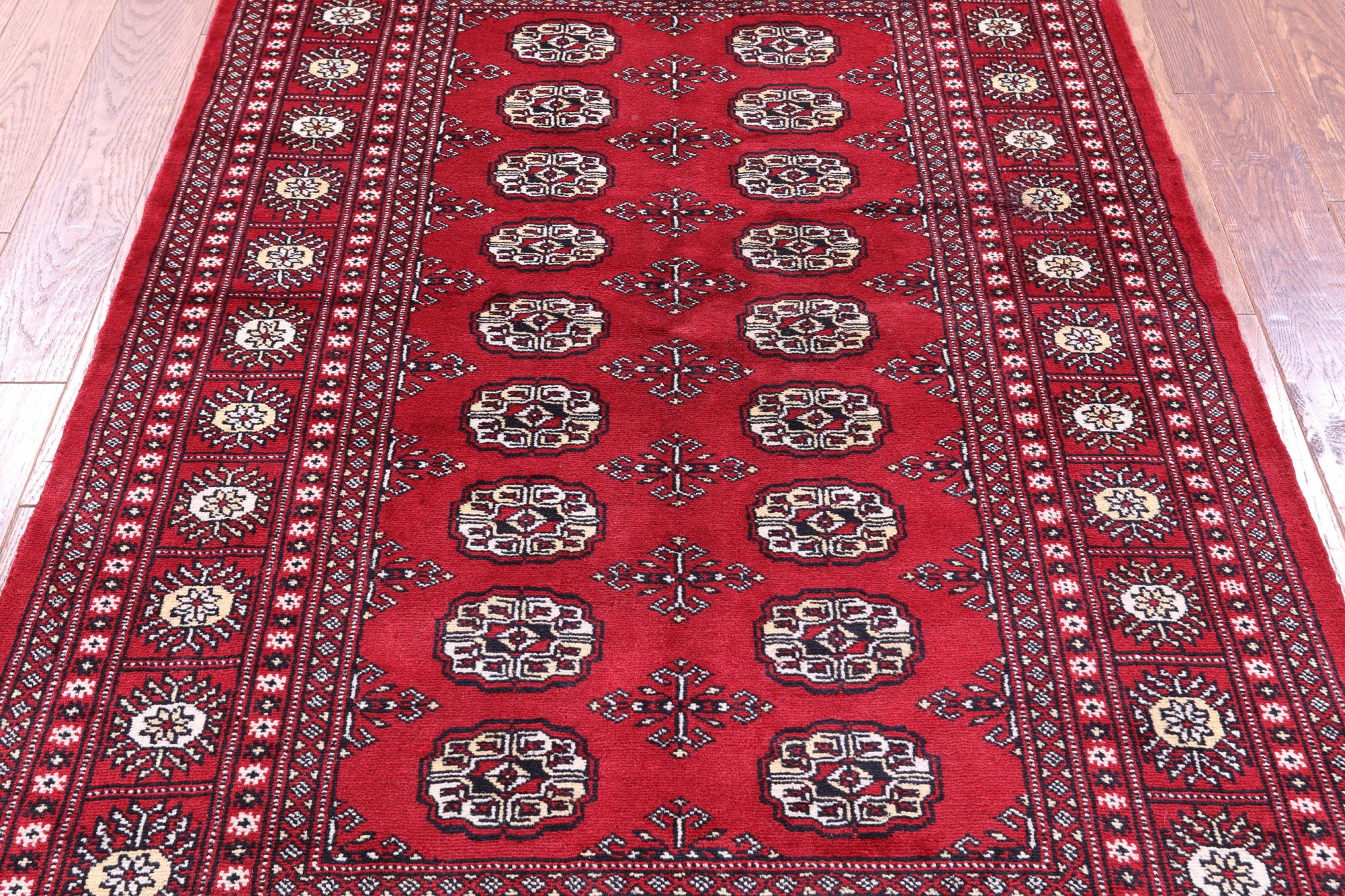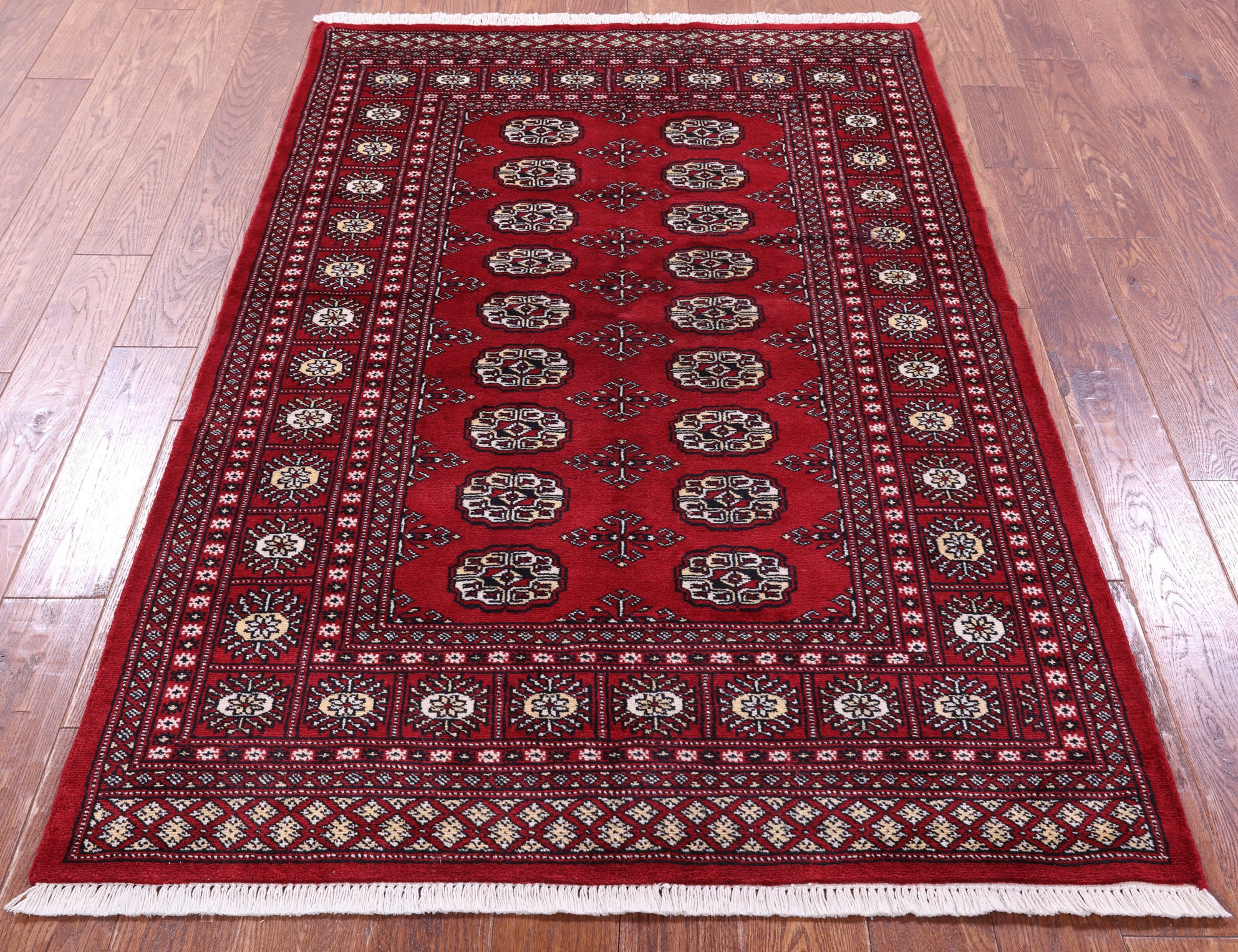 Bokharas are a type of handmade Pakistani rug; also known as Bukharas or Bokaras. Most are based on Turkmen prototypes called Tekkes. Pakistani Bokhara rugs are among the most popular handmade rugs in the world. They are popular for their soft, luxurious feel, heavy pile, attractive colors and appearance that consist of repeating octagonal figures called guls, usually on fields of burgundy red, gray blue, or sometimes green.
